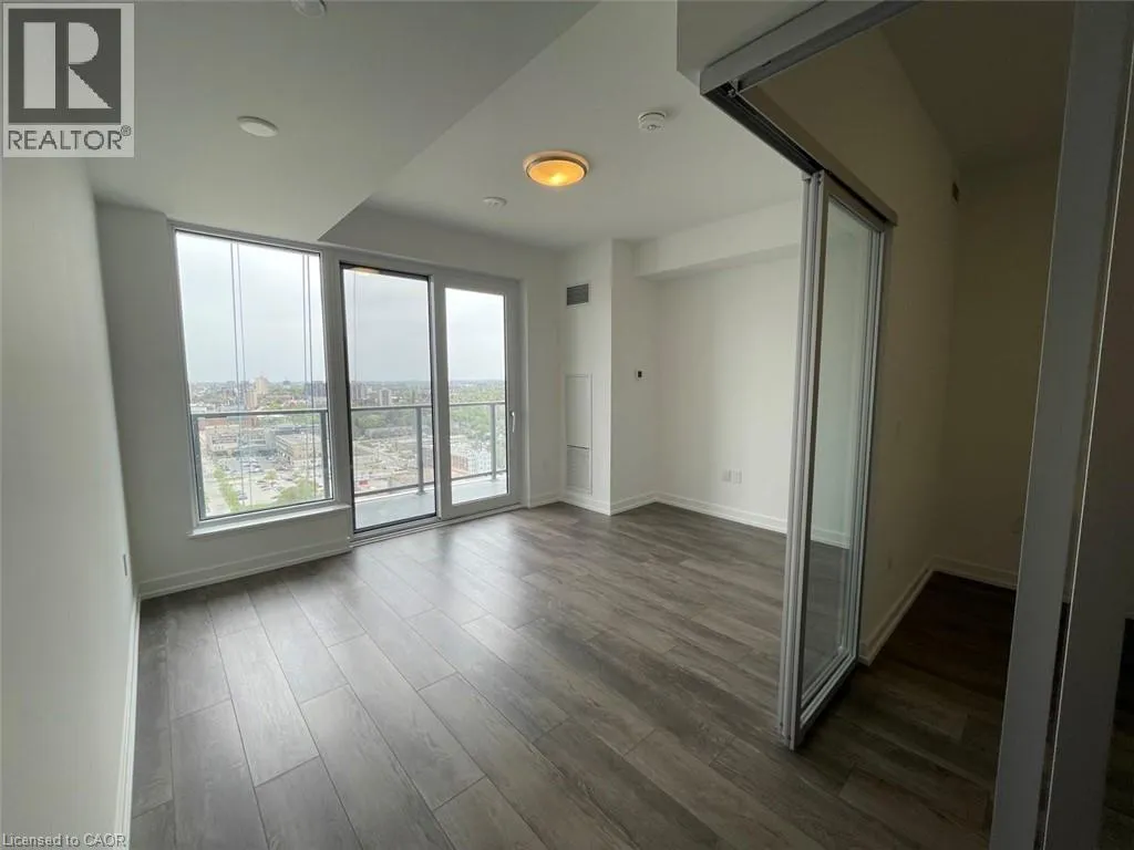 KING ST TO WELLINGTON ST S Let the sunshine in! This bright and well designed studio style unit is on the 18th floor facing west. Enjoy relaxing after work on your own private balcony and watching the sunsets! The studio floor plan includes a bedroom with corner glass doors, 1 bathroom, private laundry, an open concept living/kitchen/dining layout. The kitchen features quartz countertops, tiled backsplash, and stainless steel appliances. Located in the Midtown area of Kitchener, the Station Park towers are include amenities not seen anywhere else in the Region. Amenities include: Two-lane Bowling Alley with lounge, Premier Lounge Area with Bar, Pool Table and Foosball, Swim Spa & Hot Tub, Fitness Room with Gym Equipment, Yoga/Pilates Studio & Peloton Studio, Dog Washing Station, Landscaped Outdoor Terrace with Cabana Seating and BBQâs, 24/7 Concierge Desk for Resident Support and Security, Private bookable Dining Room with Kitchen Appliances. Located along the LRT line, and in walking distance to an LRT Station, the VIA Rail and GO station, downtown Kitchener businesses, Google offices, Midtown Hospital, and so much more! Book your showing today! (id:27476)