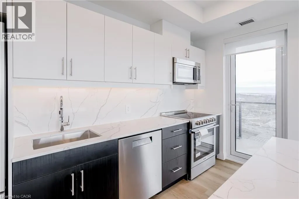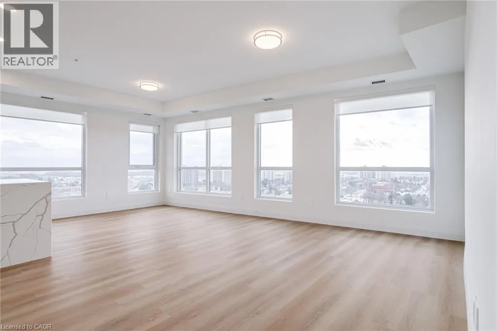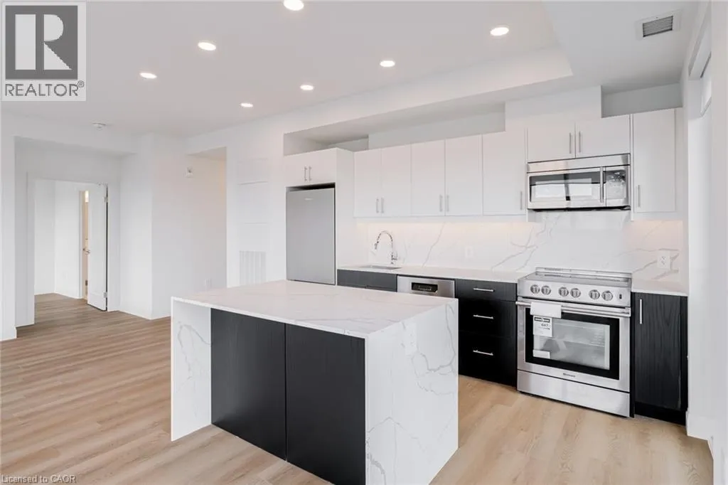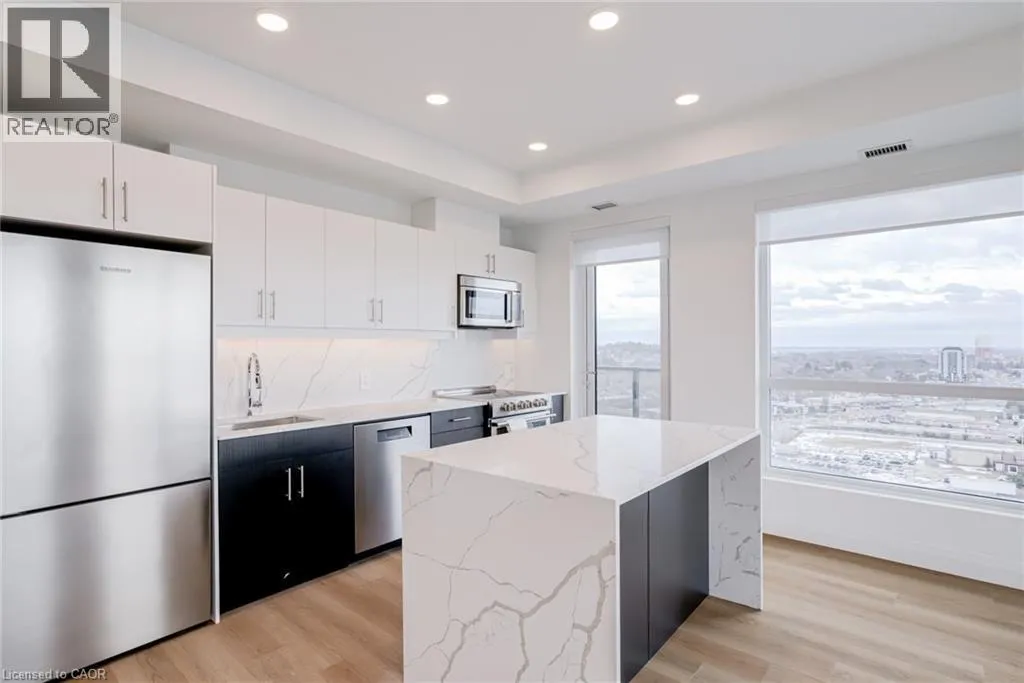TWO MONTHS FREE RENT ON A 14-MONTH LEASE + FREE STORAGE LOCKER + FREE PARKING FOR THE SAME TERM. DISCOVER WEBER YARDS â Kitchenerâs newest 15-storey condominium! Suite 1504 is a rare top-floor corner penthouse that truly stands out. This luxurious 2-bedroom, 2-bathroom suite is packed with upgrades and offers 1,129 sq. ft. of beautifully designed living space with an exceptional layout. With oversized windows and sweeping city views, the suite is flooded with natural light. The open-concept kitchen, dining, and living area is made for entertaining, featuring striking two-tone cabinetry (white uppers, dark lowers), sleek quartz countertops with matching backsplash, a stunning waterfall island, and premium upgraded Blomberg stainless steel appliances. Custom window coverings are also included. Enjoy the convenience of in-suite laundry and a private balcony for added outdoor living space. Centrally located in Waterloo Region, youâll enjoy quick access to Highway 7/8 and the 401, making commuting fast and convenient. Shopping is effortless with Fairview Park Mall just minutes away, and public transit is highly accessible with nearby bus stops. Everyday essentials are within walking distance, including Zehrs, Dollarama, Fit4Less Gym (24/7), Shoppers Drug Mart, Tim Hortons, FreshCo, and The Beer Store. Luxury building amenities include 24/7 concierge, a fitness studio, shared workspace, dog wash station, and an impressive party room complete with a full kitchen, dining area, and lounge. Tenant pays utilities. Excellent credit is required and a full application must be submitted. Book your private tour today! (id:27476)