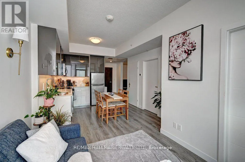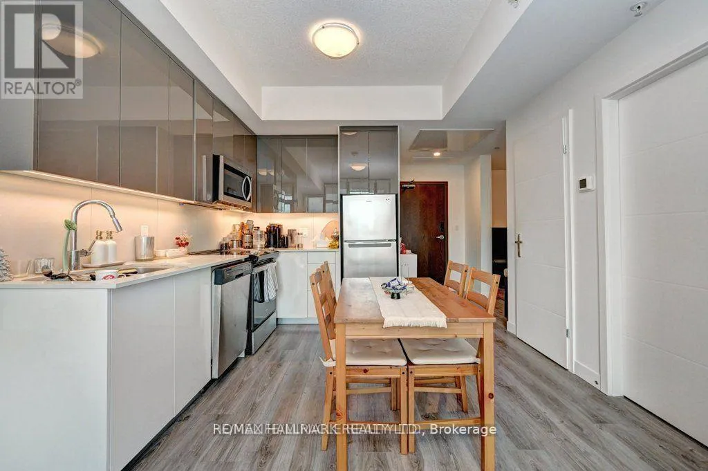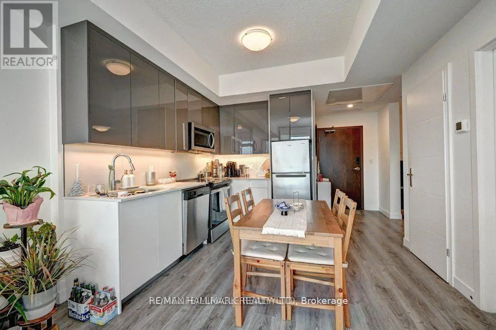 Frederick st & Duke St Modern 1-bedroom plus den, 2-bathroom suite at DTK Condos in the heart of Downtown Kitchener. This high-floor, open-concept unit features high ceilings, modern laminate flooring, and floor-to-ceiling windows offering unobstructed views. The kitchen is equipped with tall cabinetry, quartz countertops, a porcelain backsplash, and stainless steel appliances. A versatile den functions as a home office or second bedroom, complemented by two full bathrooms finished with porcelain tile. Integrated smart-home technology provides seamless control of unit features. Includes one underground parking space. Building amenities feature a 24-hour concierge, fitness centre, yoga studio, party room, and a rooftop terrace with barbecue areas. Situated with ION LRT and bus stops at the doorstep, providing rapid transit to the GO Station, University of Waterloo, Wilfrid Laurier University, and Conestoga College. Walking distance to the Kitchener Market, Victoria Park, and downtown dining. Tailored for professional couples or downsizers seeking a high-density urban core location. (id:27476)