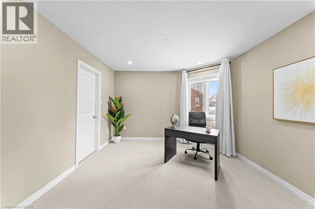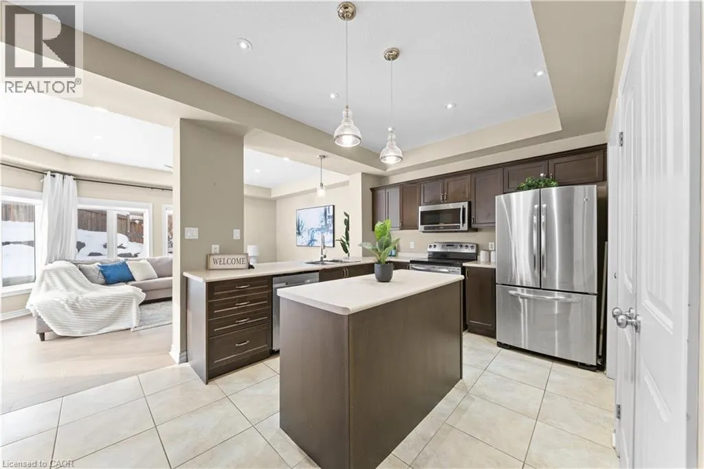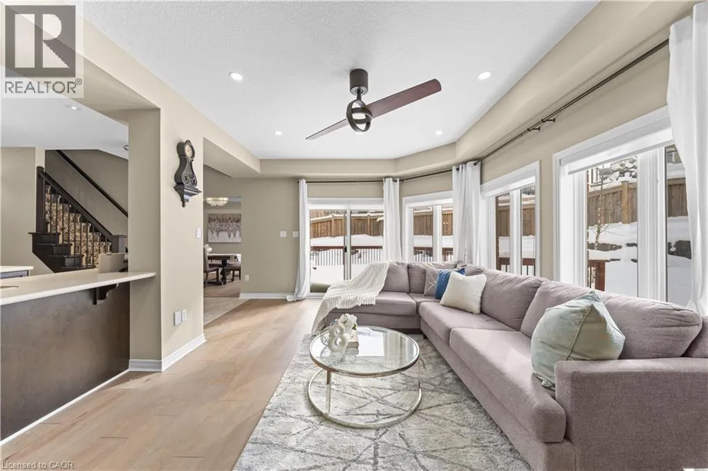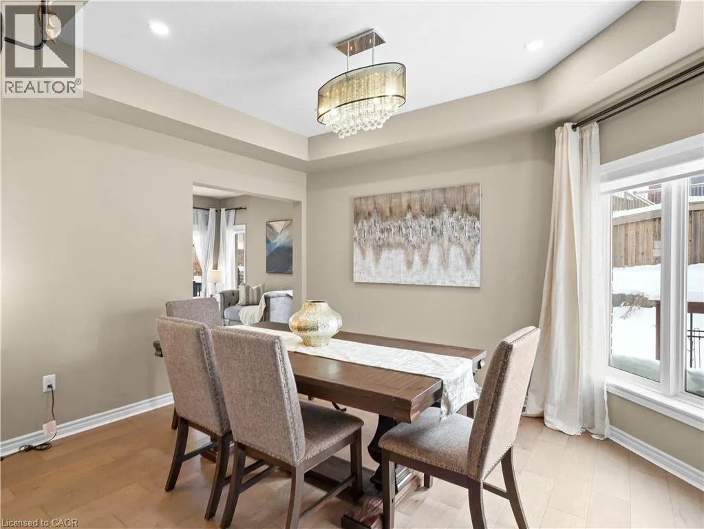 BLEAMS/ISAIAH/GRAVEL RIDGE TRAIL Welcome to this beautifully maintained east-facing home at 906 Audrey Place, Kitchener, offering over 2700 sq. ft. above ground ( as per Floor Plans) of thoughtfully designed living space in a family-friendly neighbourhood. The main floor features 9-ft ceilings and hardwood flooring throughout, with a bright, open layout including a living room, dining room, and family room, complemented by a modern kitchen with breakfast bar, large island and pantry overlooking the family area - perfect for entertaining and daily family life. The main level also includes a convenient laundry area and 2-piece powder room. Upstairs, the home offers four generously sized bedrooms, including a luxurious primary bedroom with 5-piece ensuite and his-and-her closets, while the remaining bedrooms are filled with sunlight and offer soothing views. The unfinished basement with a 3-piece rough-in provides potential for additional living space, a recreation area, or home office. Step outside to enjoy a deck and fully landscaped, low-maintenance backyard with a serene pond and fire pit area, ideal for relaxing or entertaining. Additional highlights include a beautifully maintained front yard with premium flowers and shrubs and a covered front porch with stamped concrete steps. Conveniently located near highly rated schools, shopping plazas, grocery stores, and restaurants, this home seamlessly combines comfort, style, energy efficiency, and functionality, making it an ideal choice for families seeking a move-in-ready property in a desirable Kitchener community. (id:27476)