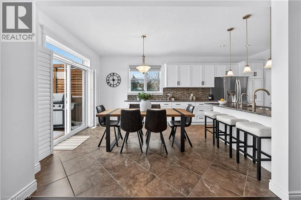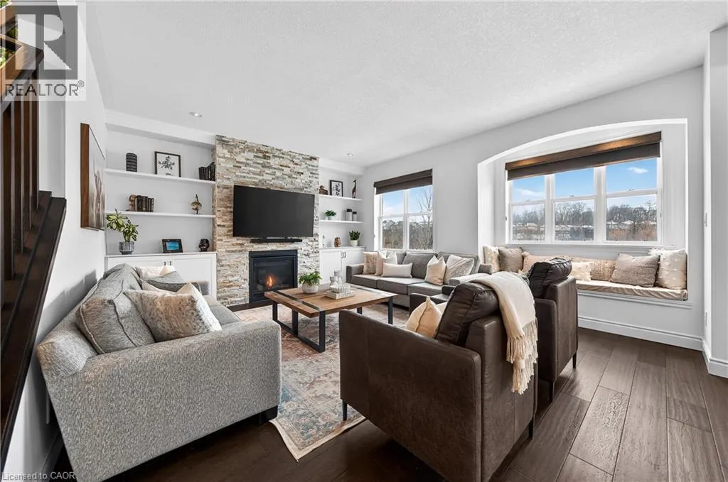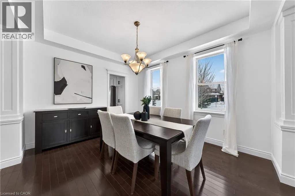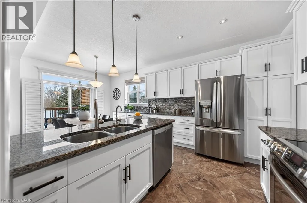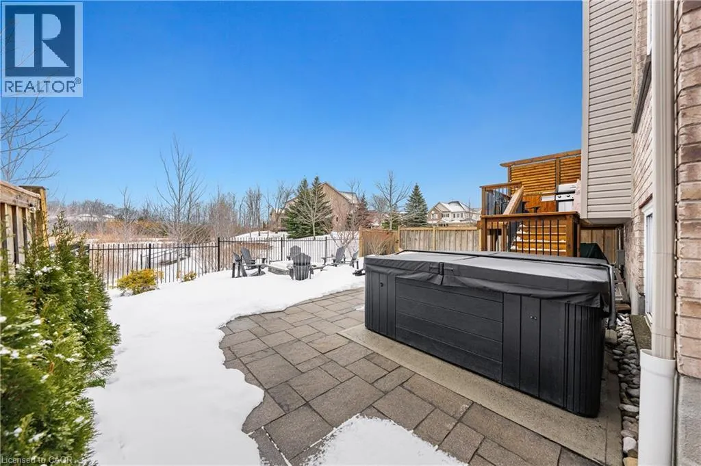 TREMAINE DRIVE TO JANINE STREET Welcome to 107 Janine Street, perfectly positioned in the heart of Edgewater Estates-one of Kitchenerâs most sought-after neighbourhoods. Backing onto a tranquil pond & protected greenbelt, with no rear neighbour & parkland along the right side, this beautifully updated custom-built executive home offers a rare blend of privacy, quiet luxury, & an exceptional natural setting. Offering 2,859 SF with 5-bedrms, & 3-bathrms, this exceptional home is thoughtfully designed for family living & entertaining. The bright main level features formal living & dining spaces that flow into a modern kitchen with granite counters, premium appliances, breakfast bar, abundant cabinetry, & dinette with walkout to the deck. The spacious great rm showcases custom built-ins, gas fireplace with stone surround, & expansive windows with window seat framing the serene views. Hardwood & tile flring run throughout the main level. A well-designed mudrm with oversized walk-in closet & 2-pc bath completes the main flr. Upstairs, the luxurious primary retreat features double-door entry, window seat, walk-in closet, & a spa-like 5-pc ensuite with dual sinks, lrg shower, & soaker tub. 4 additional bedrms & a 4-pc main bathrm completes the upper level. Freshly painted throughout, with hardwood flring in the upper hallway & new carpet in all bedrms. California shutters & custom window coverings throughout. The private backyard is a beautifully landscaped retreat with extensive patio areas, mature trees, perennial gardens, built-in firepit, hot tub, & uninterrupted private pond & greenbelt views. Double-car garage & interlocking driveway-parking for 4. The unfinished lower level is fully framed/roughed-in, easy to finish-incredible future potential. Prime location: steps from Chicopee Ski Hill, the Grand River, parks, trails, top-rated schools, shopping, & quick HWY access (Expressway & 401)-ideal for both commuters & families. Homes like this donât come along often-schedule your private viewing today! (id:27476)