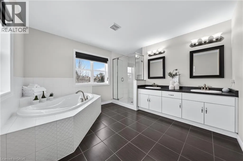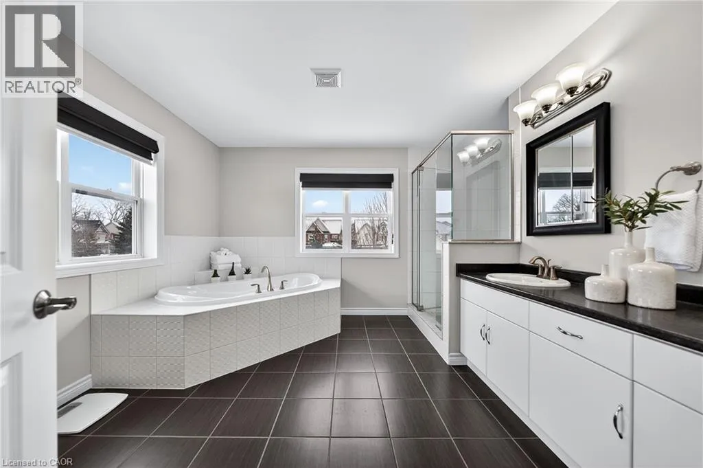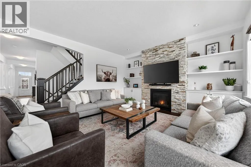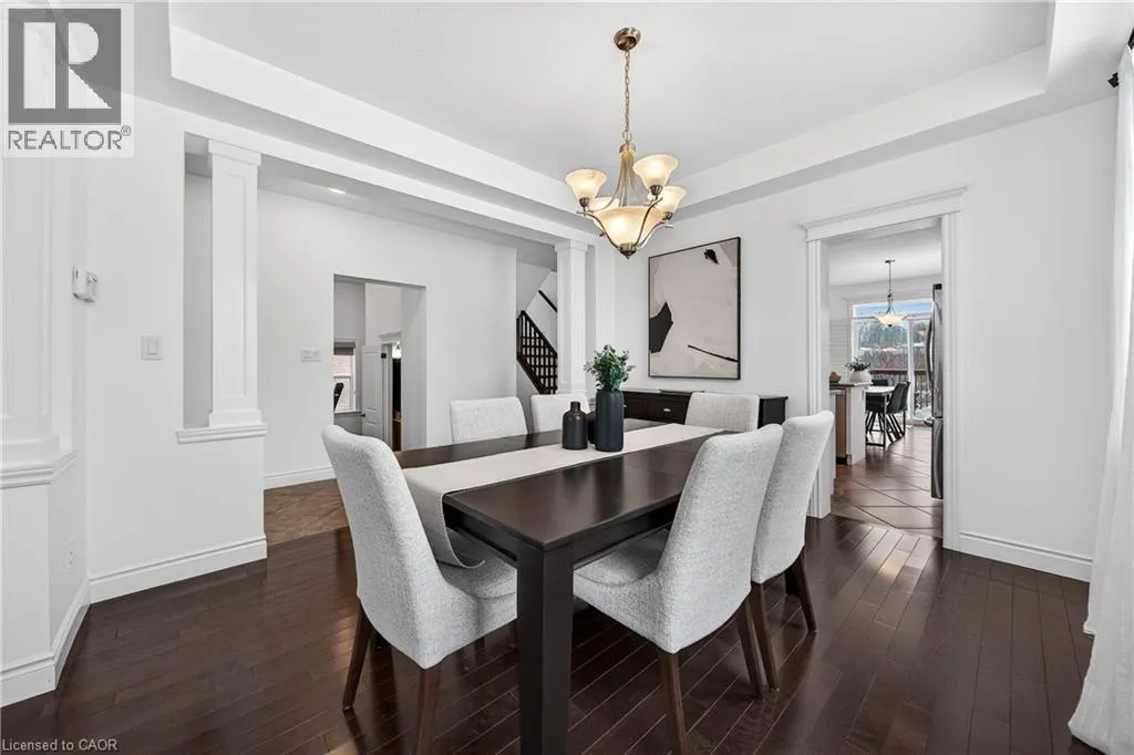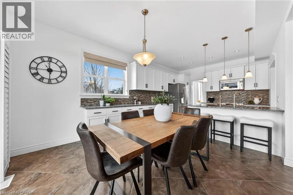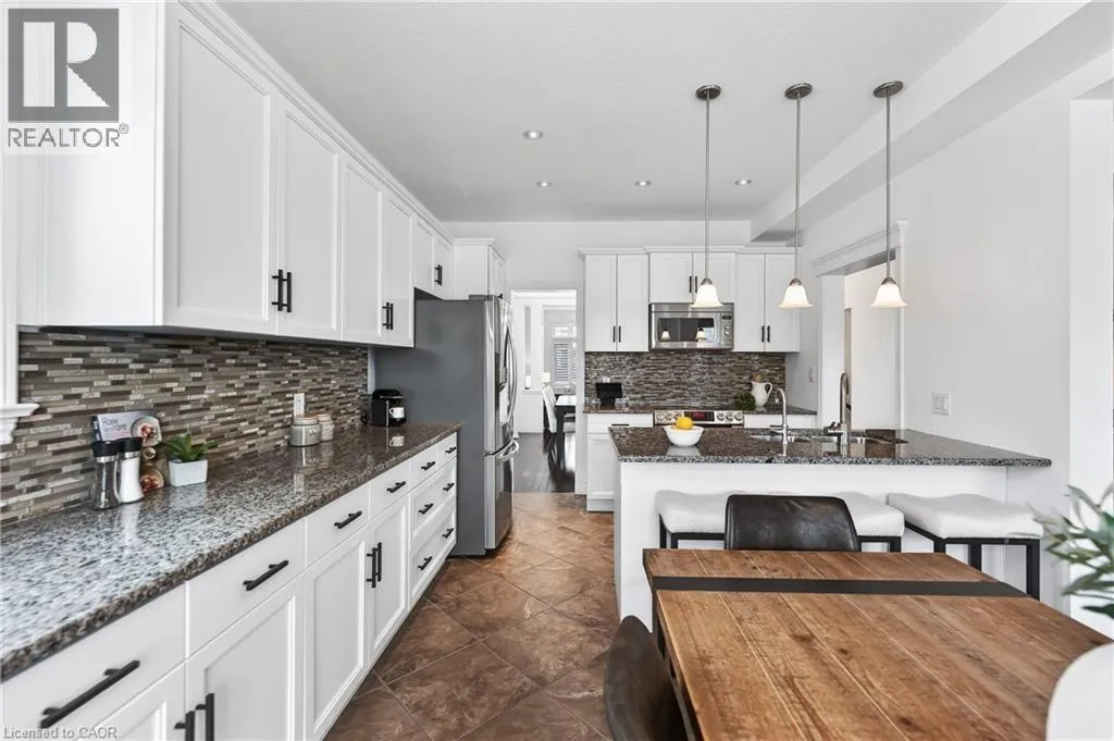 TREMAINE DRIVE TO JANINE STREET Welcome to 107 Janine Street, perfectly positioned in the heart of Edgewater Estates-one of Kitchenerâs most sought-after neighbourhoods. Backing onto a tranquil pond & protected greenbelt, with no rear neighbour & parkland along the right side, this beautifully updated custom-built executive home offers a rare blend of privacy, quiet luxury, & an exceptional natural setting. Offering 2,859 SF with 5-bedrms, & 3-bathrms, this exceptional home is thoughtfully designed for family living & entertaining. The bright main level features formal living & dining spaces that flow into a modern kitchen with granite counters, premium appliances, breakfast bar, abundant cabinetry, & dinette with walkout to the deck. The spacious great rm showcases custom built-ins, gas fireplace with stone surround, & expansive windows with window seat framing the serene views. Hardwood & tile flring run throughout the main level. A well-designed mudrm with oversized walk-in closet & 2-pc bath completes the main flr. Upstairs, the luxurious primary retreat features double-door entry, window seat, walk-in closet, & a spa-like 5-pc ensuite with dual sinks, lrg shower, & soaker tub. 4 additional bedrms & a 4-pc main bathrm completes the upper level. Freshly painted throughout, with hardwood flring in the upper hallway & new carpet in all bedrms. California shutters & custom window coverings throughout. The private backyard is a beautifully landscaped retreat with extensive patio areas, mature trees, perennial gardens, built-in firepit, hot tub, & uninterrupted private pond & greenbelt views. Double-car garage & interlocking driveway-parking for 4. The unfinished lower level is fully framed/roughed-in, easy to finish-incredible future potential. Prime location: steps from Chicopee Ski Hill, the Grand River, parks, trails, top-rated schools, shopping, & quick HWY access (Expressway & 401)-ideal for both commuters & families. Homes like this donât come along often-schedule your private viewing today! (id:27476)
