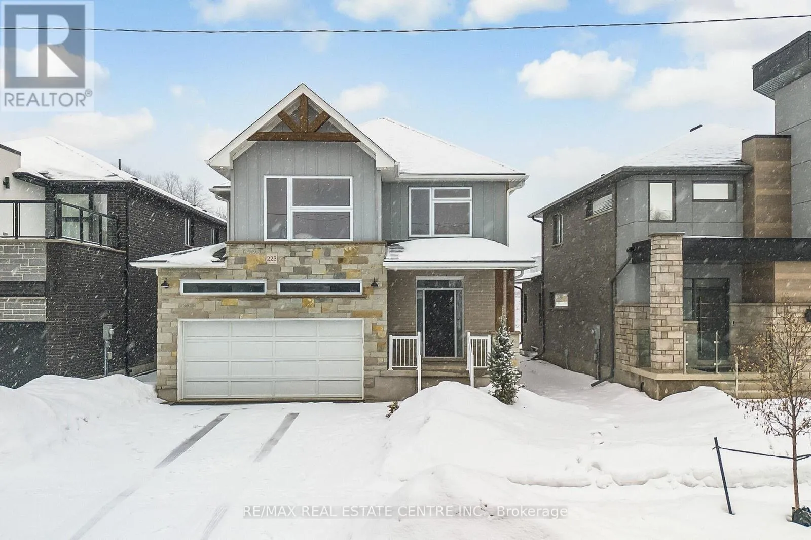 Victoria ,Lackner and Otterbein Welcome to 223 Otterbein Road, Kitchener - a beautifully upgraded 2-storey detached home in the desirable Grand River North community offering 2,279 sq. ft. above grade with 4 spacious bedrooms and 3 bathrooms. Nearly $100,000 in premium upgrades, this home looks brand new and boasts exceptional quality craftsmanship and high-end finishes throughout. The bright open-concept layout showcases hardwood flooring, a cozy gas fireplace, and a chef-inspired kitchen complete with GE Café built-in appliances, a stunning Silestone waterfall island in Eternal Calacatta Gold, a 33" Shia two-tone hood, custom cabinetry, stylish backsplash, reverse osmosis system connected to the sink and refrigerator, and a water softener. Elegant finishes continue upstairs with upgraded Silestone countertops in all bathrooms, natural oak stairs, and upgraded tile selections throughout. The exterior is beautifully finished in Melville Suck Brick and Hampshire Spring stone, the full unfinished basement offers endless future potential. Ideally located just minutes to Hwy 7/8, 401, top-rated schools, shopping, parks, and the Grand River trails - luxury, location, and lifestyle all in one. Book your private showing today! (id:27476)