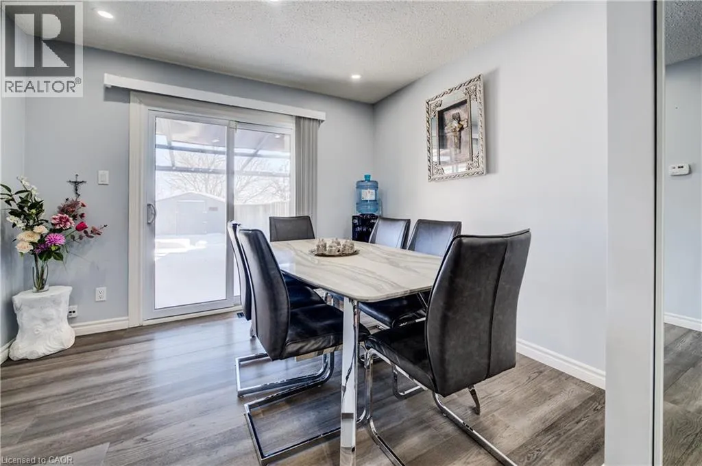 Erinbrook Dr. to Uxbridge Cres. Welcome to 52 Uxbridge Crescent, ideally located in one of Kitchenerâs most sought-after family-friendly neighbourhoods. Backing directly onto Lions Park and just steps from McLennan Park, this home offers exceptional access to scenic walking trails, green space, playgrounds, and sports fields. Surrounded by excellent schools, shopping, and a community centre, this prime location provides the perfect blend of convenience, recreation, and community living. This beautifully newly renovated three-bedroom, one-bath semi-detached home offers stylish, move-in-ready living. Step inside to a bright and inviting main level showcasing seamless engineered hardwood flooring and modern pot lighting throughout, creating a cohesive and contemporary space. The welcoming living room features a large picture window that fills the home with natural light and flows effortlessly into the spacious dining area, ideal for everyday living and entertaining. The updated kitchen features elegant quartz countertops, a stylish backsplash, and a window overlooking the private backyard, offering both functionality and charm. Upstairs, youâll find three generously sized bedrooms along with a beautifully updated modern four-piece bathroom with clean, contemporary finishes. The finished basement provides valuable additional living space with a versatile rec room featuring pot lights and consistent flooring, making it perfect for a kidsâ playroom, home gym, office, or cozy media space. Sliding glass doors from the dining room lead to a private, fully fenced backyard complete with a deck, ideal for outdoor entertaining or relaxing summer evenings. A single-car garage adds everyday convenience and additional storage to this beautifully updated move in ready home. (id:27476)