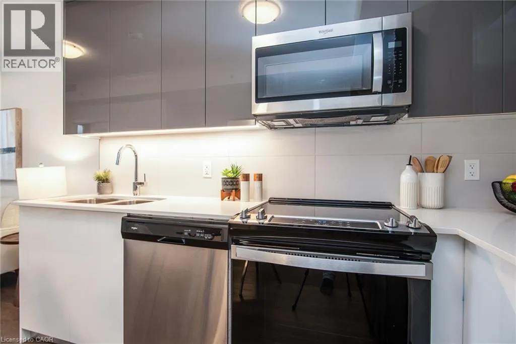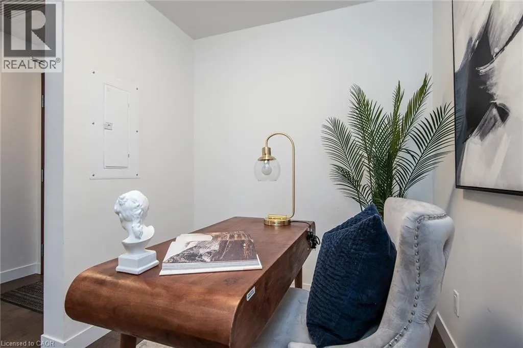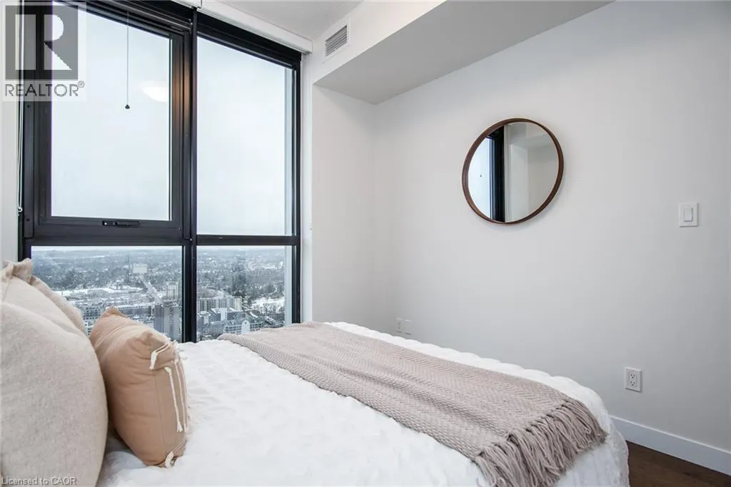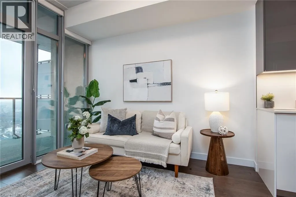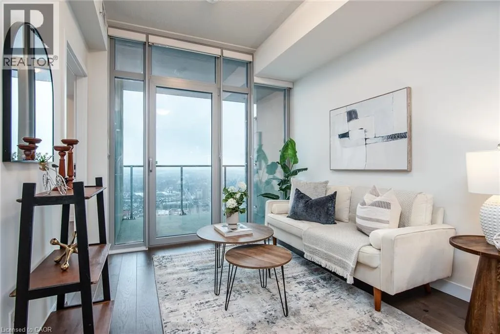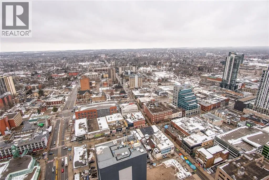WEBER ST E TO FREDERICK ST Perched on the 39th floor, this one-bedroom + den condo isn't just a home â it's a front-row seat to one of Kitchener's most dynamic downtown neighbourhoods. The vibrant streetscape below offers an ever-changing lineup of shops, cafés, and entertainment, while the lush greenery of Victoria Park unfolds in the distance like your own personal painting. Now, let's head inside where the magic really lives, west-facing, soaring floor-to-ceiling windows flood the space with golden afternoon light and frame sweeping views of the cityscape that honestly never get old. The open-concept layout flows effortlessly from the living area into a functional kitchen, creating a space that feels far larger than you'd expect. The den adds welcome versatility â home office, reading nook, guest space â you decide. The primary bedroom offers a peaceful retreat high above the city hum, complemented by a well-appointed bathroom and convenient half-bath for guests. In-suite laundry keeps everything practical. Step onto the balcony, breathe in the fresh air, and watch the world move below. Building perks include concierge hotel style service, a fitness centre, outdoor patio, party room and a secure underground parking space, blending convenience with peace of mind. This is downtown living elevated âliterally. (id:27476)