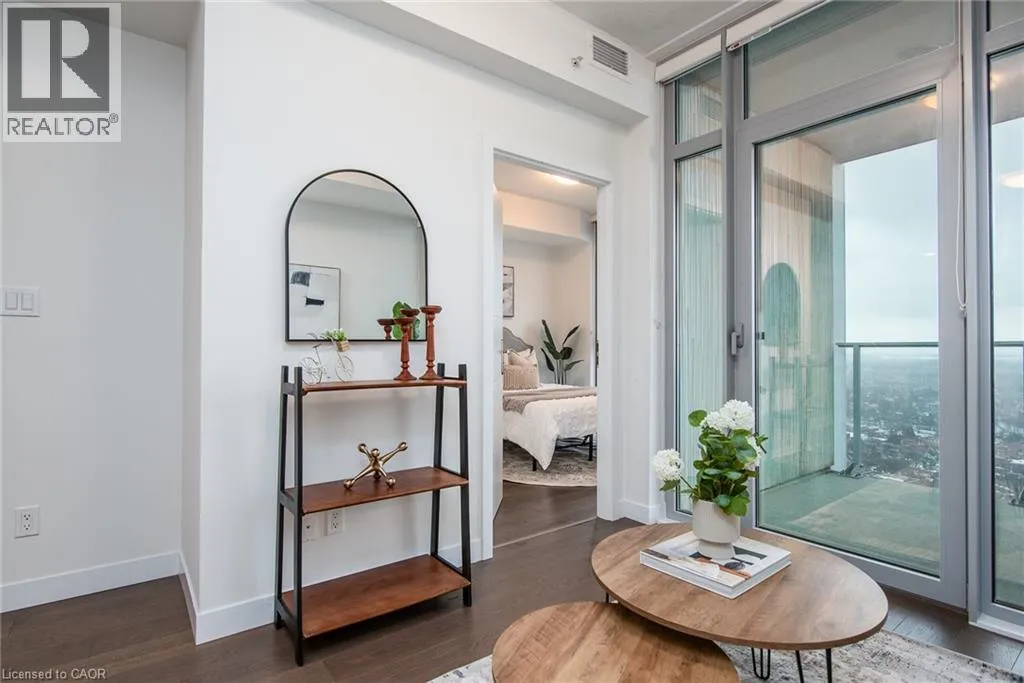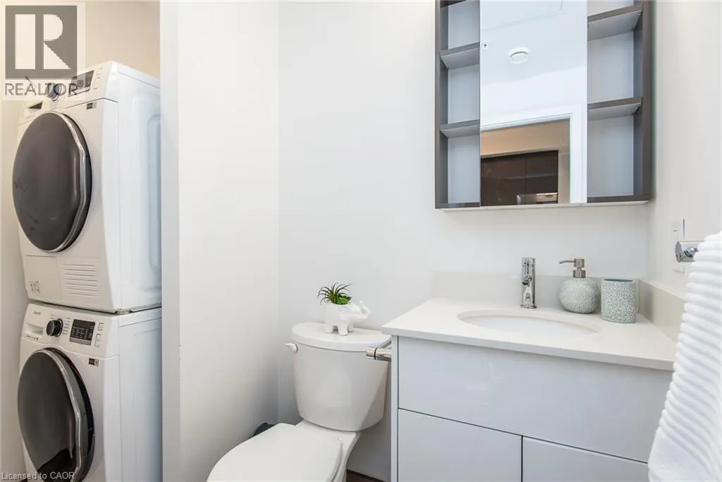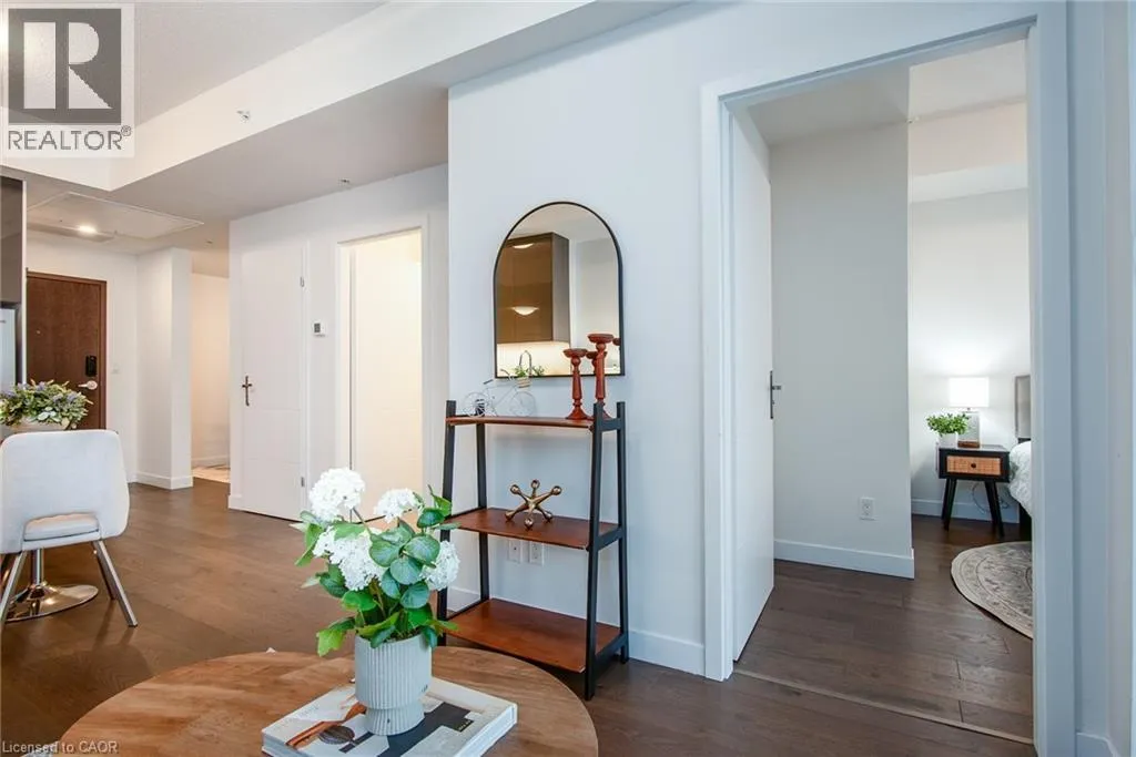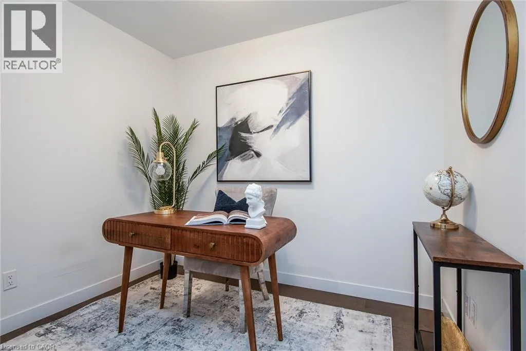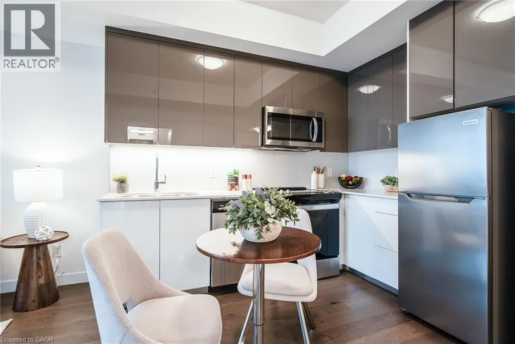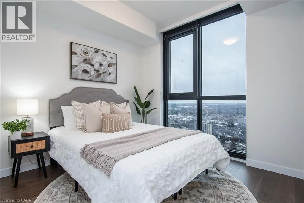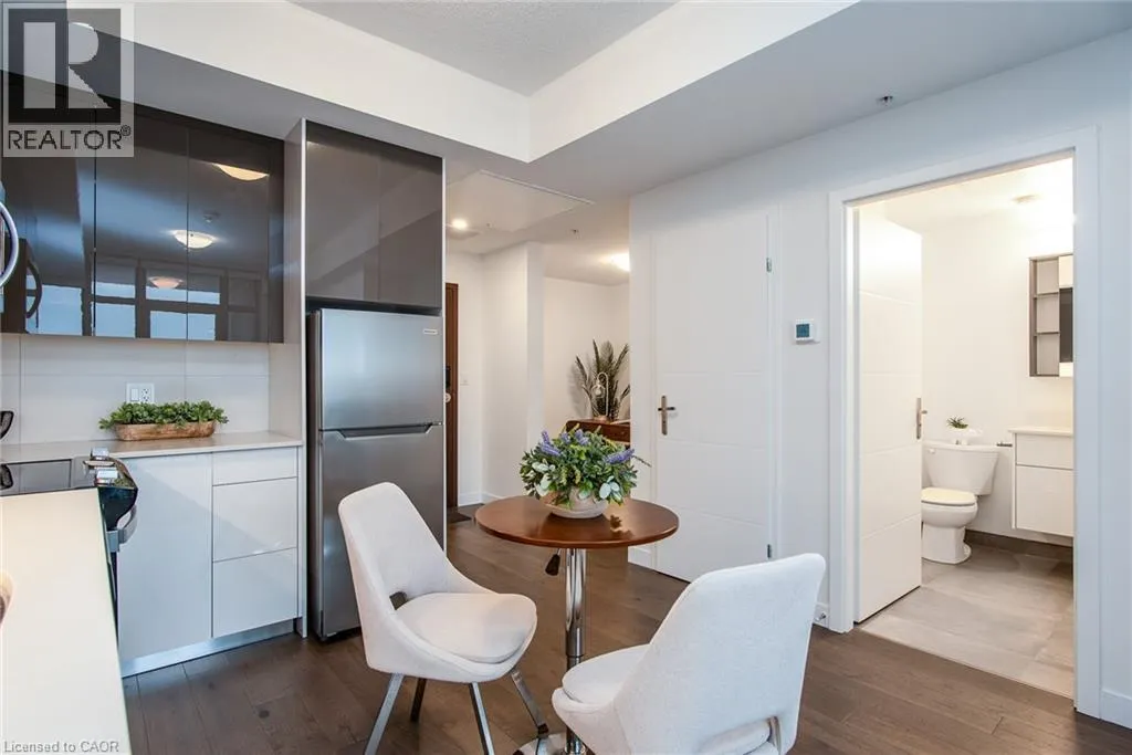 WEBER ST E TO FREDERICK ST Perched on the 39th floor, this one-bedroom + den condo isn't just a home â it's a front-row seat to one of Kitchener's most dynamic downtown neighbourhoods. The vibrant streetscape below offers an ever-changing lineup of shops, cafés, and entertainment, while the lush greenery of Victoria Park unfolds in the distance like your own personal painting. Now, let's head inside where the magic really lives, west-facing, soaring floor-to-ceiling windows flood the space with golden afternoon light and frame sweeping views of the cityscape that honestly never get old. The open-concept layout flows effortlessly from the living area into a functional kitchen, creating a space that feels far larger than you'd expect. The den adds welcome versatility â home office, reading nook, guest space â you decide. The primary bedroom offers a peaceful retreat high above the city hum, complemented by a well-appointed bathroom and convenient half-bath for guests. In-suite laundry keeps everything practical. Step onto the balcony, breathe in the fresh air, and watch the world move below. Building perks include concierge hotel style service, a fitness centre, outdoor patio, party room and a secure underground parking space, blending convenience with peace of mind. This is downtown living elevated âliterally. (id:27476)