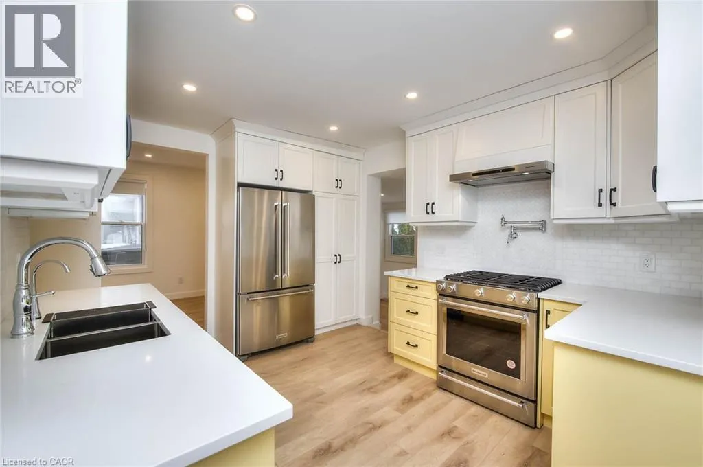 Corner of Union and Esson Welcome to your new home in the heart of Belmont Village! Backing onto the scenic Iron Horse Trail, this beautifully renovated property offerstwo spacious bedrooms, two full modern bathrooms, and a versatile loft, perfect for a home office, guest room, or creative space. Extensiverenovations were completed in 2023, including all new wiring, plumbing, insulation, central AC, appliances, and windows. Essentially, itâs abrand-new home on the inside, with a stylish, contemporary design and thoughtful upgrades throughout. The inviting living room sets a warmand welcoming tone, while the kitchen is a chefâs dream, featuring sleek cabinetry, ample counter space, and top-of-the-line stainless steelappliances. The primary suite boasts a luxurious ensuite bathroom, while the second bedroom and full bath provide comfort and convenience forfamily or guests. Upstairs, the loft adds flexibility to suit your lifestyle. Step outside to your private patio and enjoy peaceful views of the IronHorse Trail, ideal for your morning coffee or evening glass of wine. Located just steps from the shops, cafés, and restaurants of Belmont Village,and a short walk to Uptown Waterloo, this home blends urban living with natural surroundings. Additional highlights include new blindsthroughout, a reverse osmosis water treatment system, parking for two vehicles, and abundant storage in the basement. Donât miss your chanceto own this exceptional, fully renovated home in one of the regionâs most sought-after communities! (id:27476)