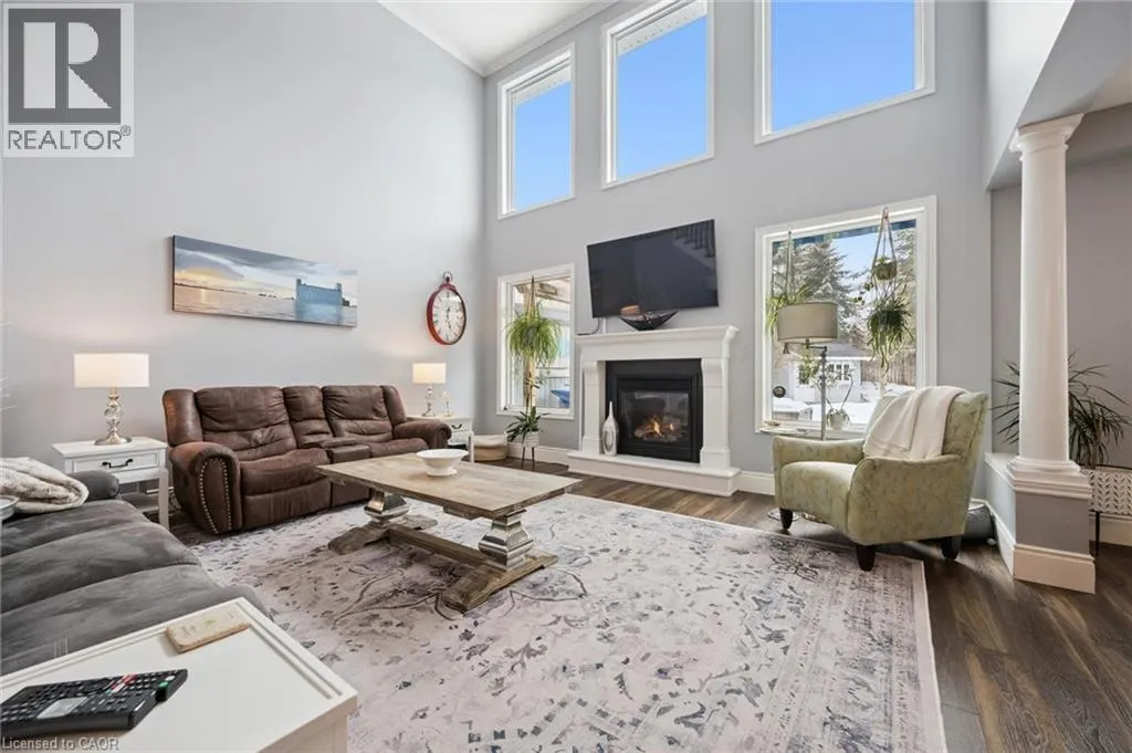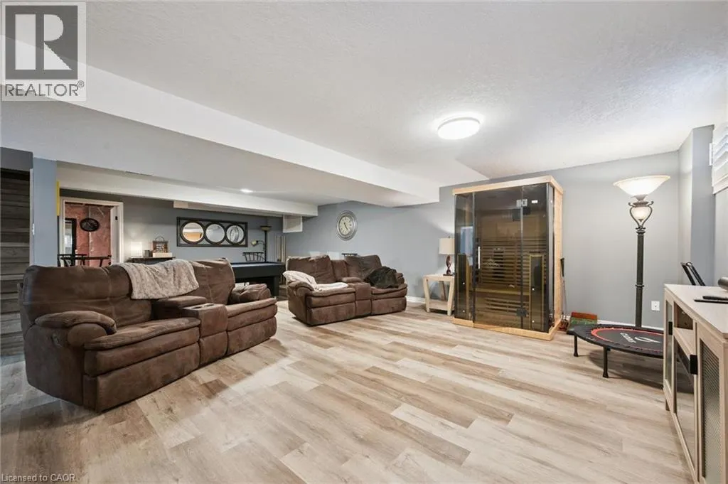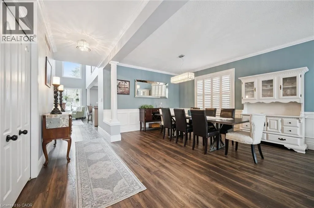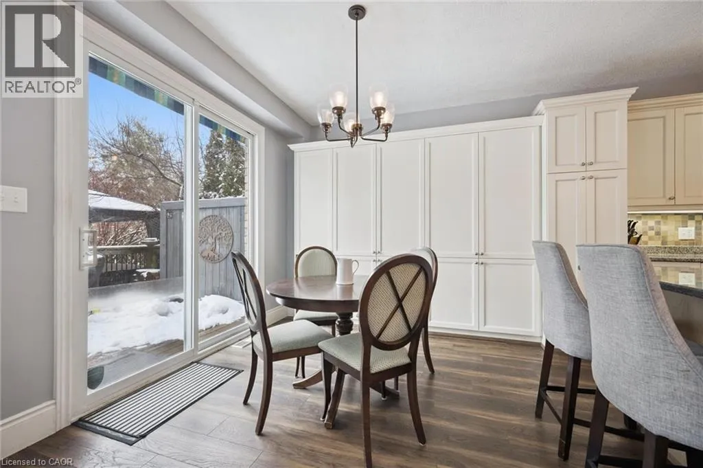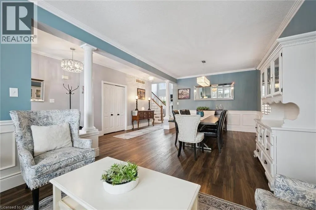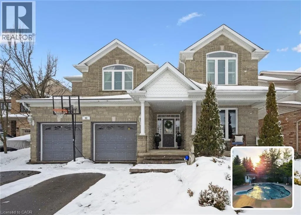 FROM DOON MILLS DRIVE, TURN ON PINE VALLEY DRIVE TO FISCHER COURT ORIGINAL OWNER. METICULOUSLY MAINTAINED. RARE FULL STONE EXTERIOR. QUIET COURT LOCATION. INGROUND POOL. TURNKEY & READY TO MAKE LIFELONG MEMORIES. Welcome to this stunning 3,000+ sqft. estate, situated on an exclusive, quiet court where neighbours stay for decades. The grand main level impresses with soaring double-height ceilings and massive windows that drench the living area in natural light. This floor plan is designed for modern living, featuring a dedicated main floor den-perfect for a home executive-and a convenient main floor laundry room for effortless daily living. Host elegant dinners in the formal dining room featuring upgraded wainscotting, or prepare gourmet meals in the chefâs kitchen complete with granite counters and extended cabinetry. The private backyard oasis is designed for the ultimate host, featuring a saltwater in-ground pool, hot tub, and cozy fire pit area. The upper level offers four spacious bedrooms, including a primary suite with a walk-in closet and 5-piece ensuite, while a second bedroom also features its own walk-in closet. This home is complete with elegant California shutters throughout, a partially finished basement offering additional flexible space, and parking for six cars with no sidewalk to maintain. Located just 5 minutes from the 401, trails, and top-tier schools, this home is truly ready for your next chapter. (id:27476)
