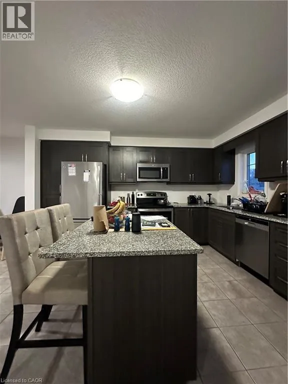 Blems- Eliza Beautifully finished from top to bottom, this 3 bedroom, 2.5 bathroom townhouse is move in ready. The main floor offers a bright open layout with large windows and plenty of natural light. The kitchen features stainless steel appliances, granite countertops, tiled flooring, and an oversized island that anchors the space perfectly. Thereâs a generous dining area and a spacious great room with a walkout to an oversized deck, ideal for summer BBQs and entertaining. Upstairs, youâll find three well sized bedrooms. The primary suite includes a walk in closet and a private ensuite. Central air and a garage door opener with remotes are already in place for added comfort and convenience. The ground level entry opens into a finished flex space that works well as a home office, sitting area, or bonus room. The second level balcony offers open views and another great spot to relax. Located just minutes from the highway, public transit, top rated schools, everyday amenities, and The Boardwalk, this home checks all the boxes for lifestyle and convenience. Seeking AAA tenants. (id:27476)
