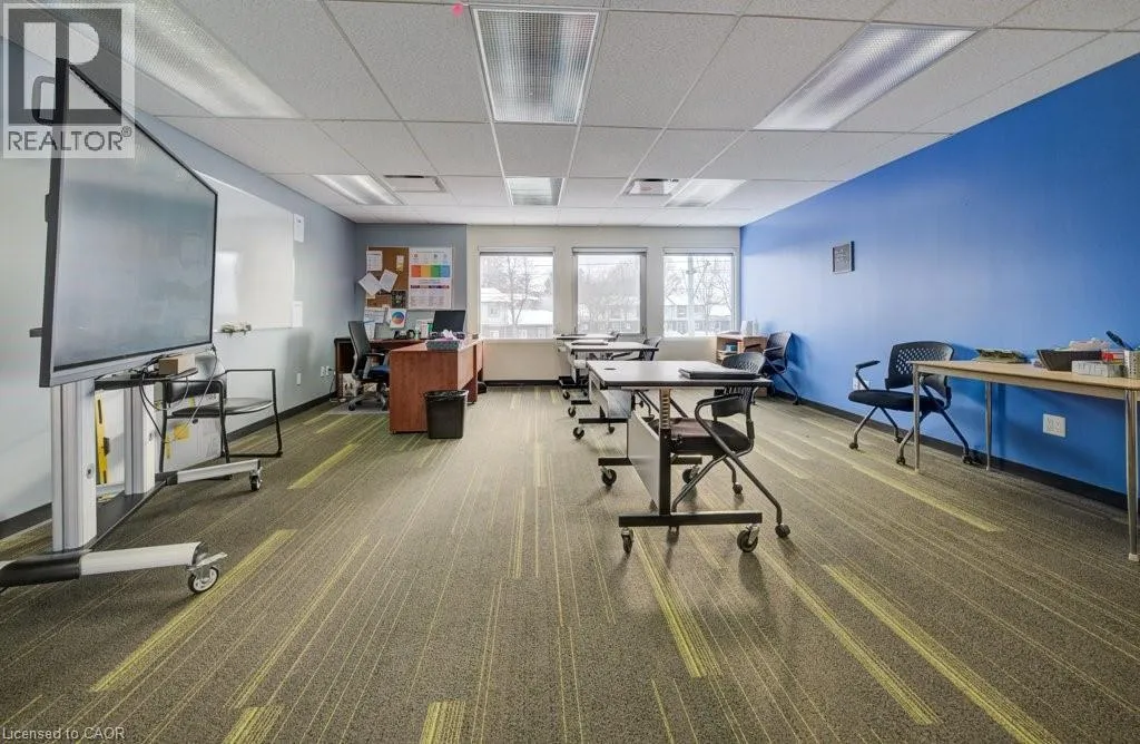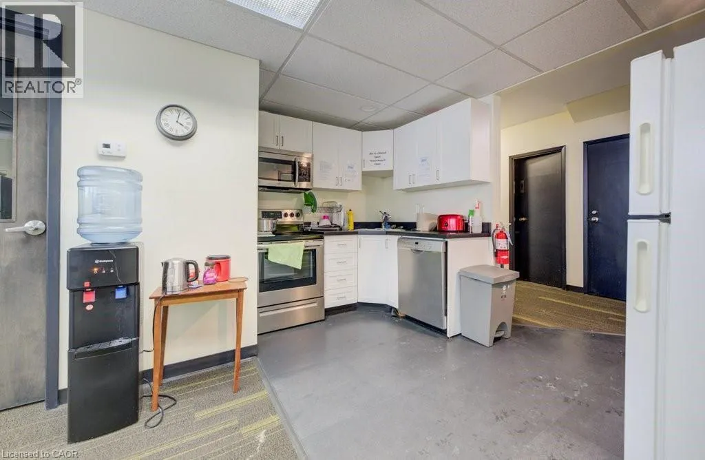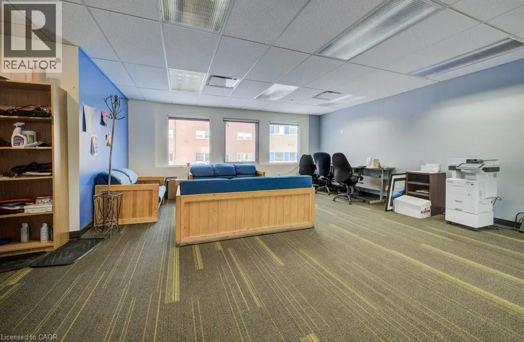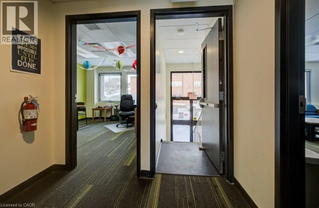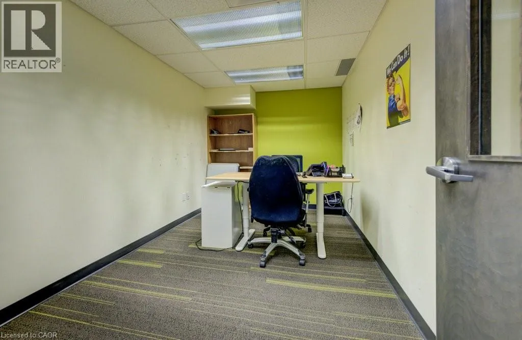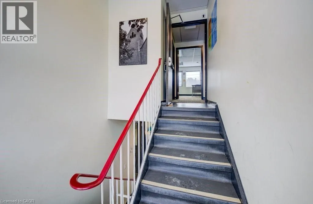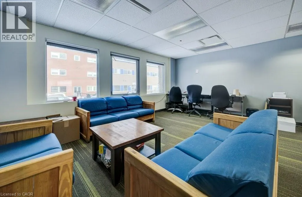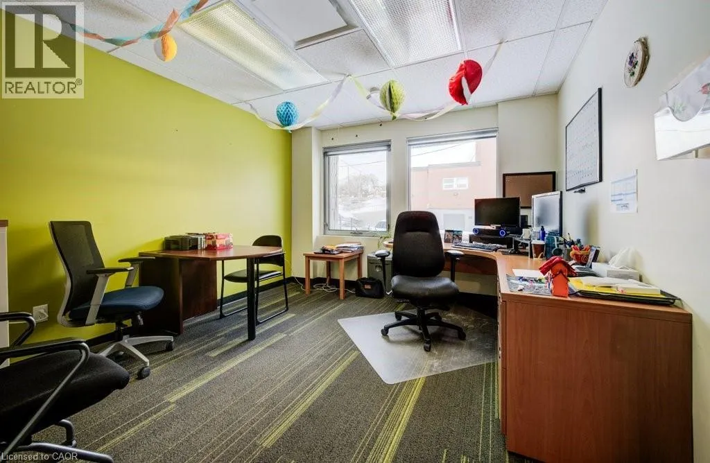 NW on King Street East Left onto Pandora Ave. South and Left onto Stirling Ln Spacious Layout: 2,679 total sq. ft. featuring a professional configuration of 7 private offices and a generous 208 sq. ft. staff area for meetings or breaks. Modern Kitchenette: A dedicated 39 sq. ft. kitchenette on-site, perfect for daily staff use. Dedicated Parking: Rare downtown convenience with 5 designated on-site parking spots included. Option to park in adjoining parking lot. Unbeatable Location: Situated on Charles Street East, just steps from the ION LRT and major transit hubs. Accessibility: Centrally located near the Innovation District, Market Square, and local amenities including restaurants and retail. (id:27476)