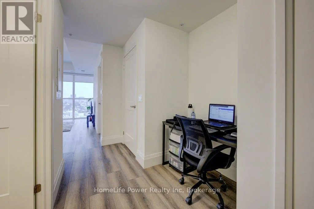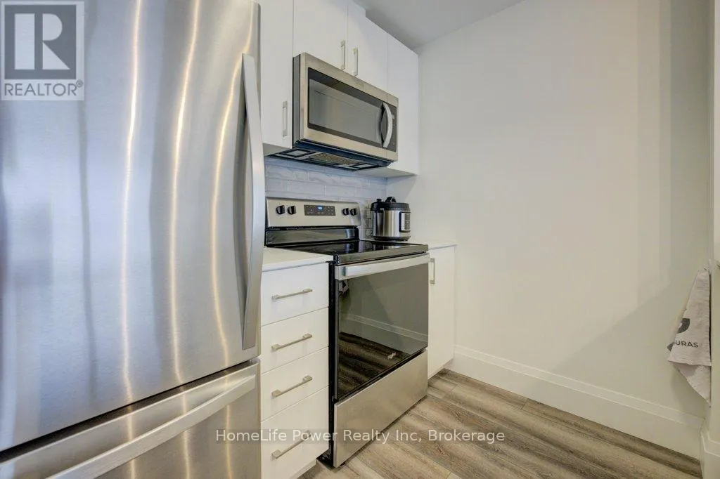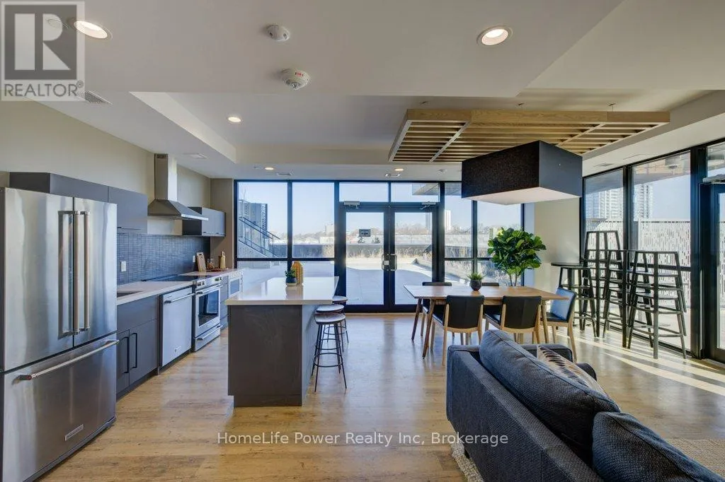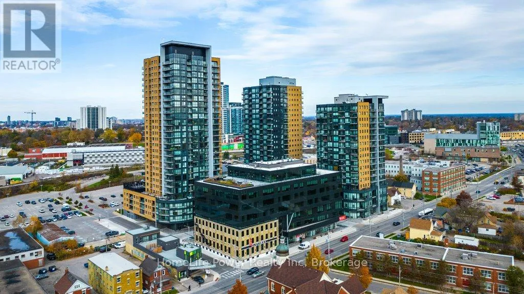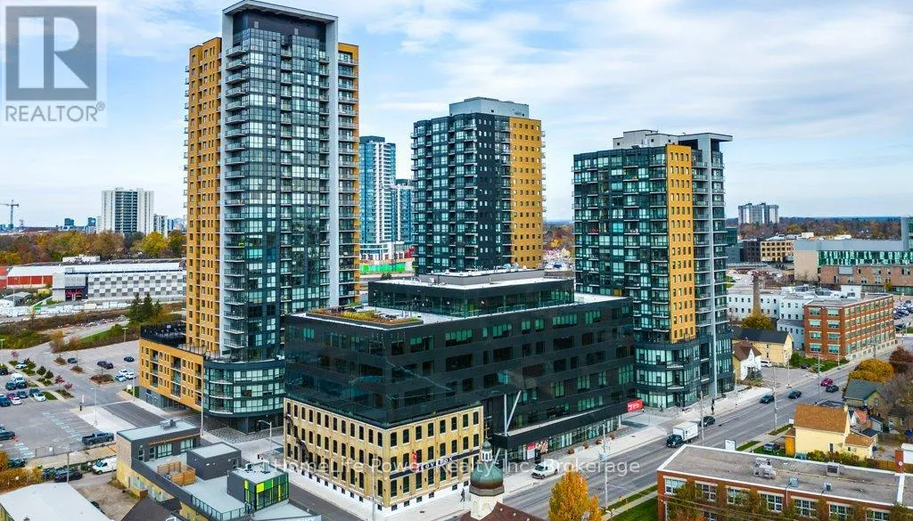 Cross Streets: Victoria Street South. ** Directions: Located at the corner of Garment Street and Bramm Street. 1 PARKING SPACE INCLUDED IN PURCHASE PRICEExperience elevated urban living at Garment Street Condos - Tower 3, ideally located in the heart of downtown Kitchener. This stylish 1-bedroom suite showcases a sleek, modern design with floor-to-ceiling windows that fill the space with natural light.Featuring over $11,000 in upgrades, the unit offers premium finishes throughout, including a frameless glass shower, white Silestone countertops, classic subway tile backsplash, upgraded cabinetry, upgraded lighting package, and durable luxury vinyl plank flooring. With 540 sq. ft. of thoughtfully designed interior space plus a 47 sq. ft. private walk-out balcony, you'll enjoy beautiful downtown views and seamless indoor-outdoor living. An underground parking space is included for added convenience. Enjoy an unbeatable location steps to Google, the University of Waterloo School of Pharmacy, McMaster Medical School, the LRT, GO Train, and all the shops, restaurants, and amenities of downtown Kitchener. Residents have access to exceptional building amenities, including a fully equipped gym, co-working space, party room with full kitchen, media room, and landscaped rooftop terrace. Outdoor features include a pool, yoga space, basketball court, dog park, and BBQ lounge - perfect for relaxing and entertaining while taking in the city skyline. (id:27476)