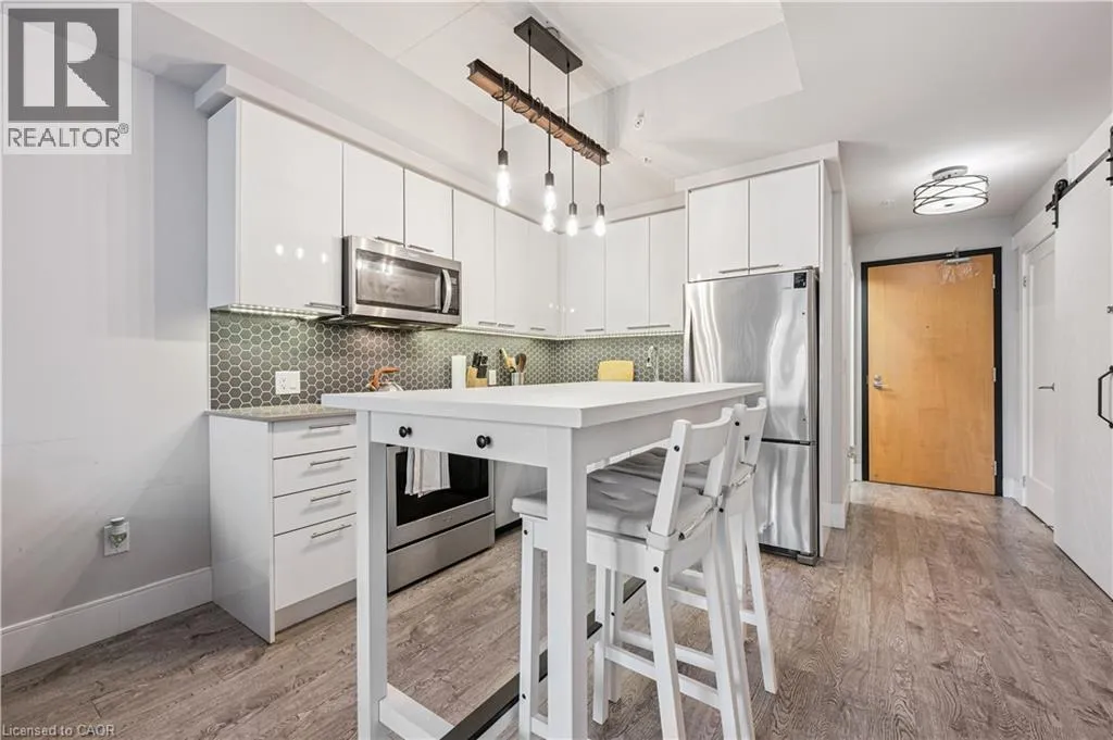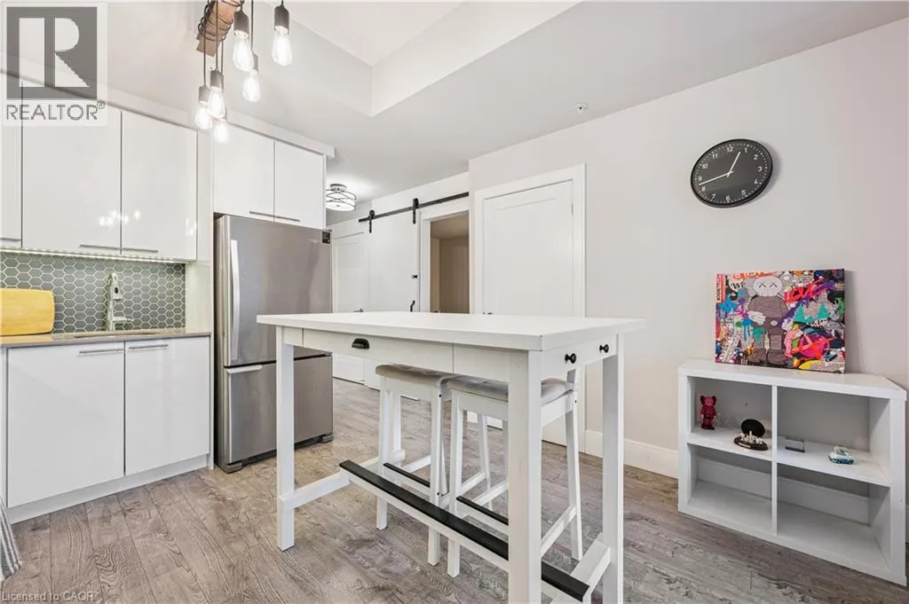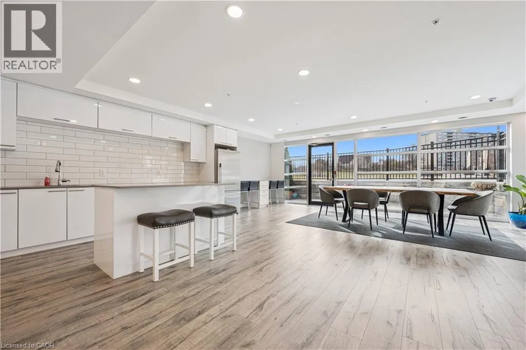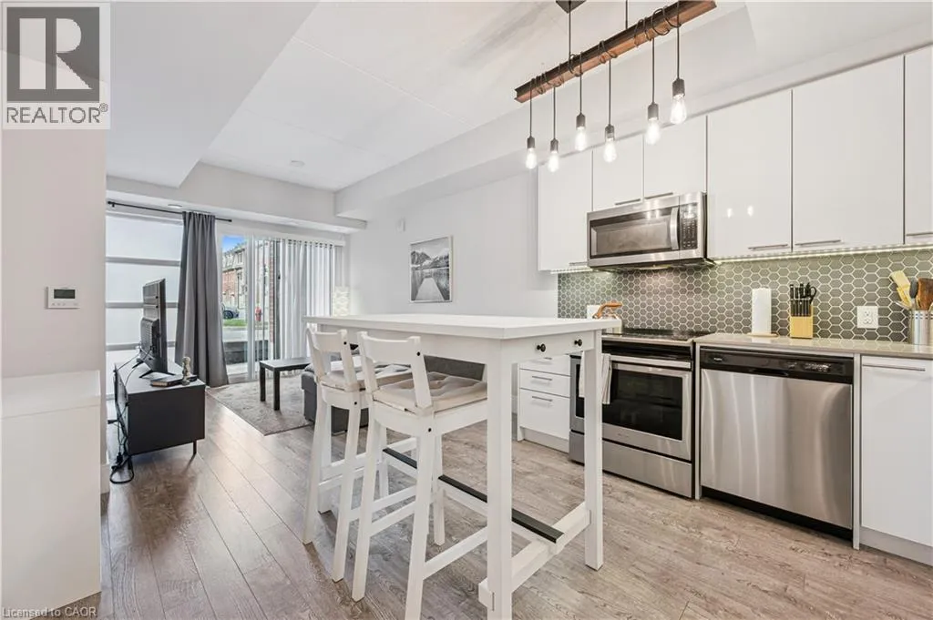 Lancaster to Louisa to St. Leger Welcome to 15 Prince Albert Blvd Unit 104âa stylish and modern 1 Bedroom + Den condo offering EXCEPTIONAL COMFORT, AND CONVENIENCE. Located on the main floor, this unit provides easy access along with an open concept, CONTEMPORARY LIVING SPACE youâll love coming home to. Inside, enjoy 2 full bathrooms, including a 3-piece ensuite with a sleek glass shower enclosure, plus a separate 4-piece second bathroomâPERFECT FOR GUESTS OR A ROOMMATE. The spacious den features a barn door enclosure and a full closet, making it ideal as an office or guest space. The MODERN KITCHEN IS DESIGNED TO IMPRESS, featuring white cabinetry, a grey tile backsplash, quartz countertops, and stainless appliances. In-suite laundry adds everyday convenience. ENJOY YOUR OWN PRIVATE PATIO, PERFECT FOR RELAXING. The building offers a FITNESS CENTRE AND PARTY ROOM RIGHT OUTSIDE YOUR DOOR on the main floor. With GEOTHERMAL HEATING AND COOLING, each unit is separately metered for ENERGY-EFFICIENT, COST-EFFECTIVE LIVING. 1 underground parking spot and a storage locker are included. Enjoy a PRIME LOCATION steps from parks, the Google office, UWâs School of Pharmacy, and the lively amenities of Downtown Kitchener and a short commute to Uptown Waterloo along with the VIA Rail train station nearby for easy commuting. Move-in ready and beautifully appointed, Unit 104 is the perfect blend of style, function, and location. Donât miss your chance to make it yours! (id:27476)