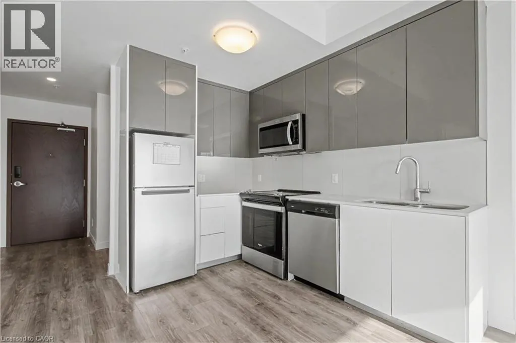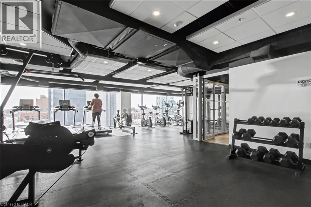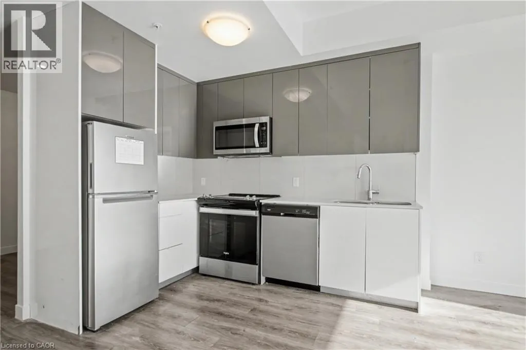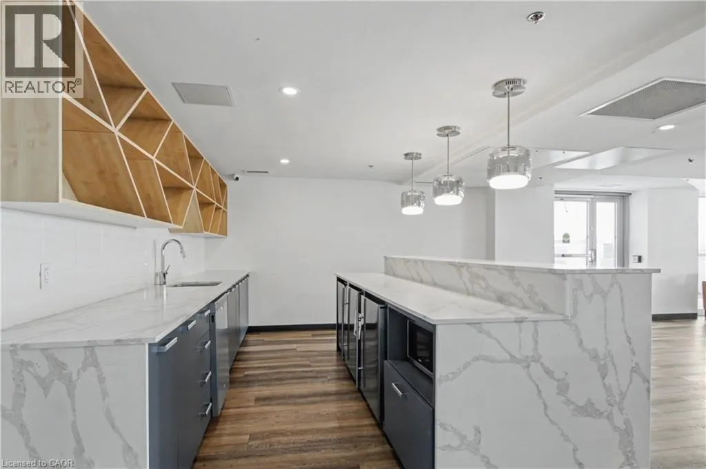 Welcome to elevated urban living at DTK Condos in the heart of Kitchener. This rarely offered 1 Bedroom + Den, 2 full bathroom layout delivers exceptional flexibility and functionâan ideal opportunity for professionals, couples, or investors seeking something beyond the typical downtown condo configuration. The thoughtfully designed open-concept floor plan is bright and modern, featuring contemporary finishes and large windows that flood the space with natural light. The spacious den easily functions as a home office, guest area, or creative studio, while the second full bathroom adds everyday convenience and enhanced hosting capabilityâan uncommon and highly desirable feature in a one-bedroom suite. Step outside and enjoy unbeatable walkability. Youâre just steps to the Frederick Station ION LRT stop, along with restaurants, cafés, shopping, entertainment venues, and the trails and green space of Victoria Park. Residents enjoy a full suite of modern building amenities designed to complement an active urban lifestyle, including concierge service, a fully equipped fitness centre, stylish party and lounge spaces, and an impressive rooftop terrace with panoramic city views. Experience connected downtown living at its finest. (id:27476)