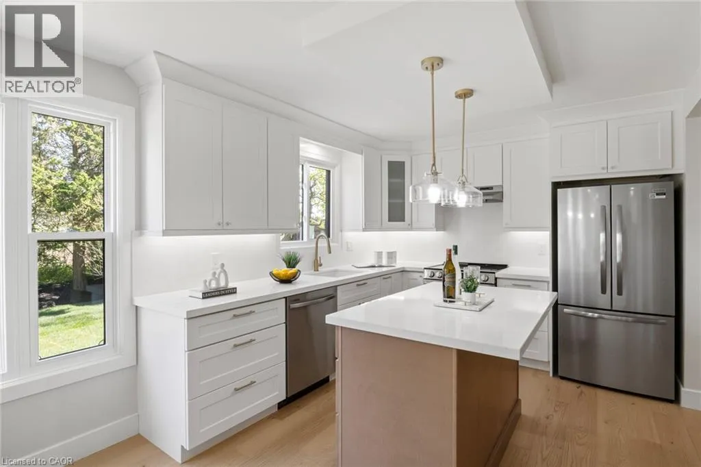 Thaler Ave Welcome to 92 Scenic Wood Crescent â This FULLY RENOVATED 4 Bed,3 Bath home offers space, function, and upgrades throughout. Some of the updates include new Roof, Windows, High Efficiency Furnace, A/C Heat Pump, Tankless water heater, Stainless appliances, Washer-Dryer, Kitchen, SS Appliances,Quartz counters,Linear fireplace, Bathrooms, Engineered hardwood floors, Deck and all new paint and fixtures. From the moment you step inside this beautiful bright home, the 16-foot vaulted ceiling in the foyer creates and open concept layout an impressive sense of scale and light. The main floor offers multiple living and dining areas, giving you flexibility for everyday living, hosting, or creating dedicated spaces for work and relaxation. The layout flows comfortably, with generous principal rooms designed to accommodate both family life and entertaining. Step outside to a newly built deck overlooking a private, fully treed rear yard with no neighbours behind. Mature trees frame the property line, creating a peaceful backdrop and added privacy. The exterior has been professionally landscaped for clean curb appeal and easy maintenance. Positioned beside schools and parks, 5 mins to the 401 or Fairview Park Mall, this is a move-in-ready opportunity in a family-friendly setting where convenience meets comfort. (id:27476)