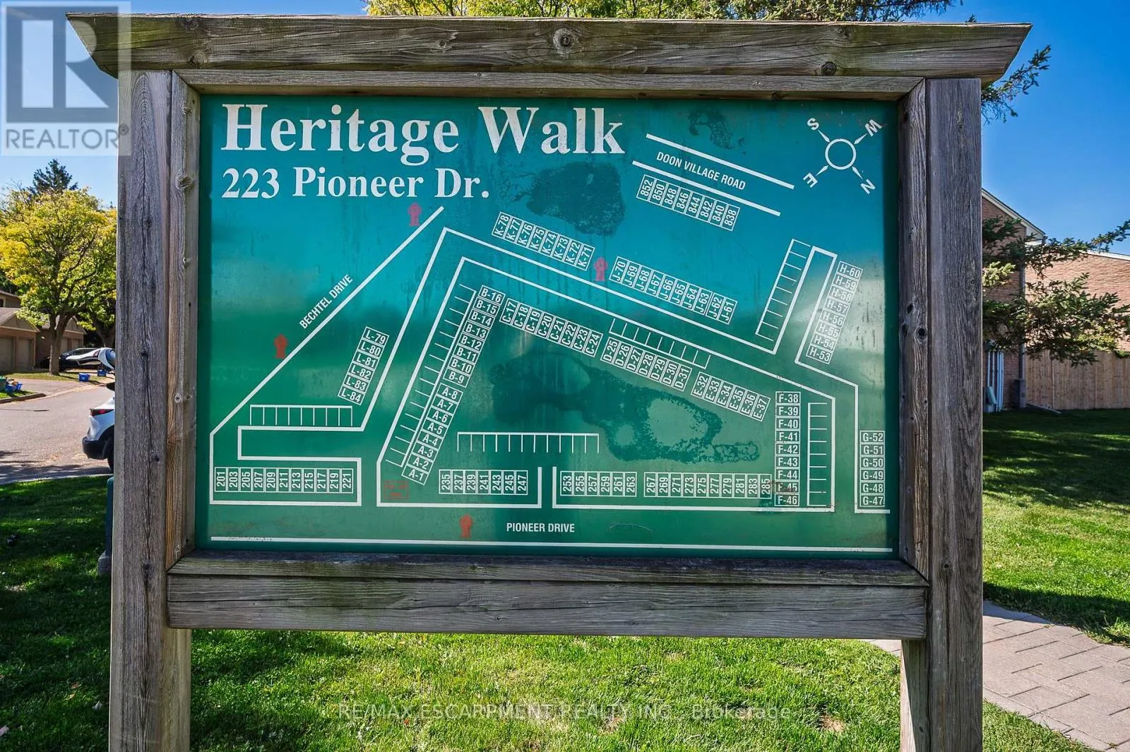 Cross Streets: Pioneer Dr & Bechtel Dr. ** Directions: From Highway 401, take exit 275 for Homer Watson Boulevard and head north toward Kitchener. Continue for about 4 km, then turn left onto Pioneer Drive. Welcome to this charming 2-storey townhouse located in the desirable Doon neighbourhood, a community appreciated for its natural surroundings, convenient amenities, and easy access to everything Kitchener offers. This inviting home features a thoughtful layout that suits first-time buyers, downsizers, and investors, with a warm, comfortable feel from the moment you step inside. The main floor offers an open L-shaped living and dining area that flows into a well-designed kitchen, updated in 2017 with modern cabinetry, refreshed countertops, and newer appliances. Laminate flooring throughout the level provides a clean, cohesive foundation for everyday living. Upstairs, the primary bedroom, upper hallway, and main staircase were all updated with new carpeting in 2024, adding a fresh and comfortable touch to the second level. Two additional bedrooms offer flexible space for family, guests, or a dedicated home office, while a well-appointed 4-piece bathroom completes the upper floor. The finished basement extends your living space with a cozy, versatile area ideal for a family room, play zone, or creative retreat, complemented by a convenient 2-piece bathroom. Outdoors, a spacious private deck creates a lovely setting for morning coffee or evening unwinding, framed by a small garden and backing onto a peaceful hillside with no homes directly behind-offering a sense of privacy and connection to nature. A private garage and driveway with parking for two vehicles add everyday convenience. Condo fees include water, landscaping, exterior maintenance, and garbage removal, making ownership simple and low-maintenance. With schools, parks, scenic trails, recreation centres, shopping, and major highways all nearby, this location blends comfort, accessibility, and lifestyle with ease. Come experience the charm and warmth of this wonderful home in person. (id:27476)