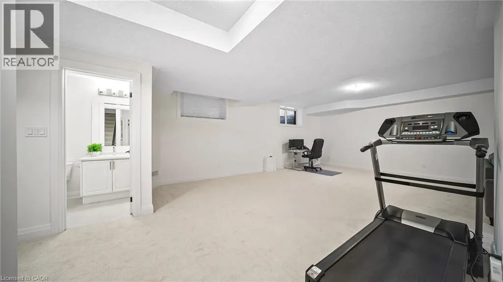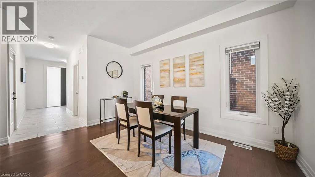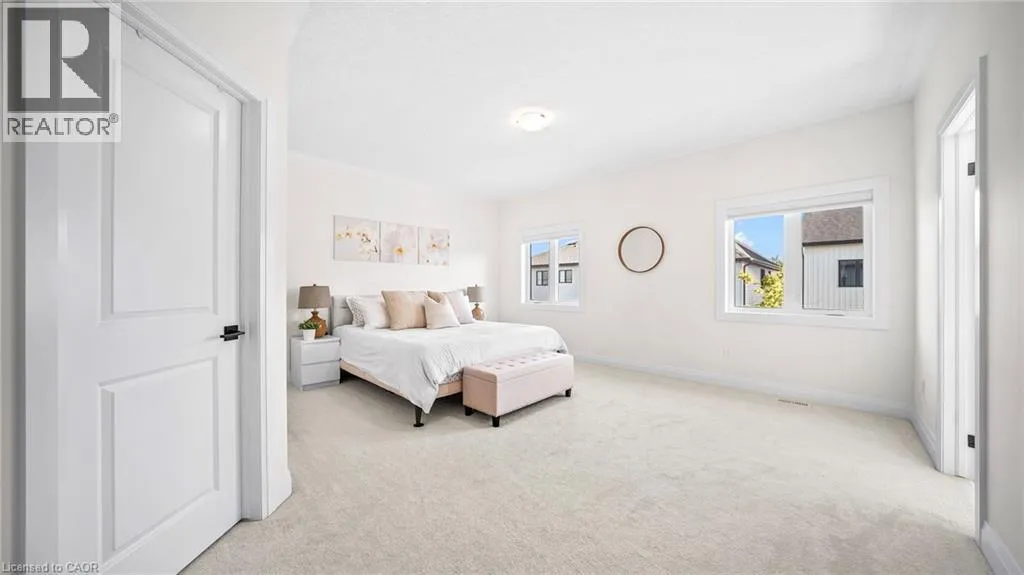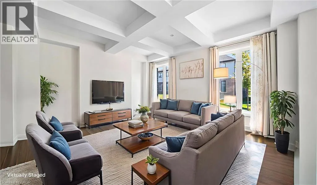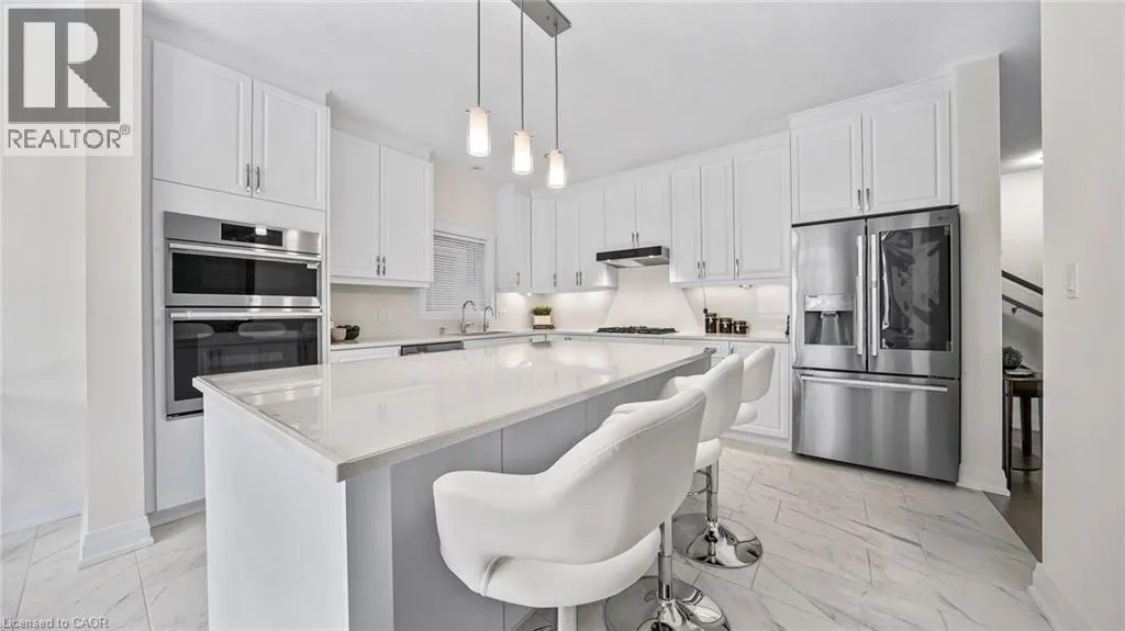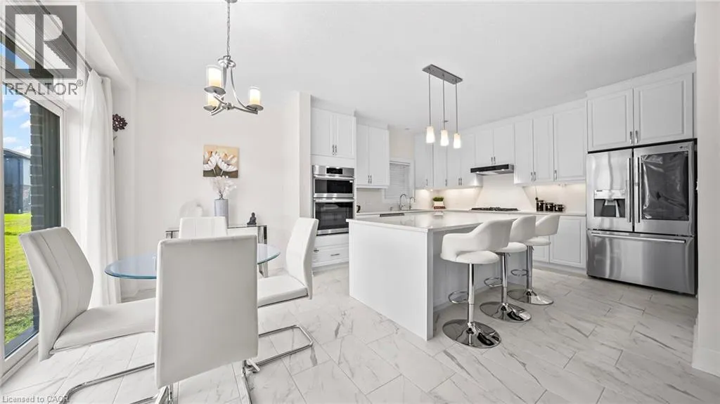 New Dundee and Dodge Discover elevated contemporary living in this nearly new Net Zero Ready home, ideally situated in the highly sought-after Harvest Park community. Offering 4 bedrooms and 3.5 bathrooms, this thoughtfully customized home showcases over $150,000 in premium upgrades, seamlessly blending sophisticated design with sustainable efficiency. The main level features a sun-filled open-concept layout anchored by a chef's kitchen complete with high-end appliances, custom ceiling-height cabinetry, and effortless flow into the dining area and great room-ideal for both everyday living and entertaining. A dramatic waffle ceiling adds architectural interest, while a powder room and convenient main-floor laundry complete the space. The main ensuite has a walk-in closet and a spa-inspired ensuite with expansive feature window. Impressive 9-foot ceilings enhance the sense of openness throughout, extending into the professionally finished basement. Upstairs, you'll find four generously sized bedrooms plus a versatile family room that can easily function as a fifth bedroom or home office. The primary suite offers a private retreat with a walk-in closet and a spa-inspired ensuite. The finished lower level expands the living space with a spacious recreation area, full bathroom, and two storage rooms. With rough-ins for a kitchen, sink, and laundry, the basement presents excellent potential for a home theatre, in-law suite, or future secondary unit. Comprehensive soundproofing-including the garage ceiling-ensures exceptional peace and comfort. Set against the serene backdrop of open green space, yet just minutes to Highway 401 and the conveniences of South Kitchener, this Harvest Park home delivers the perfect balance of tranquility and accessibility. (id:27476)