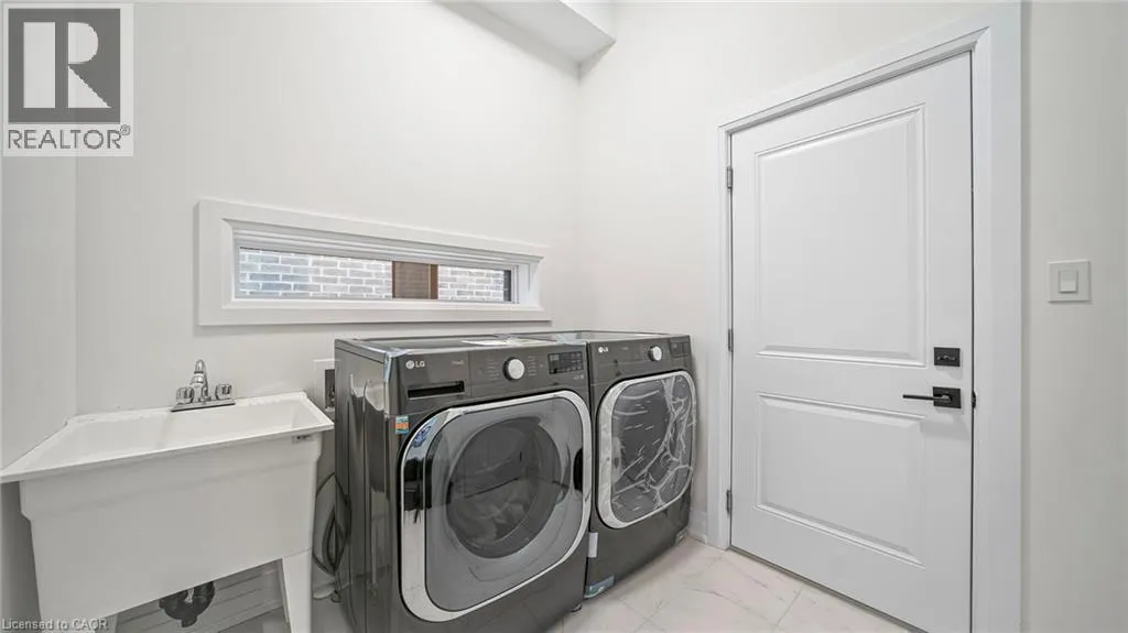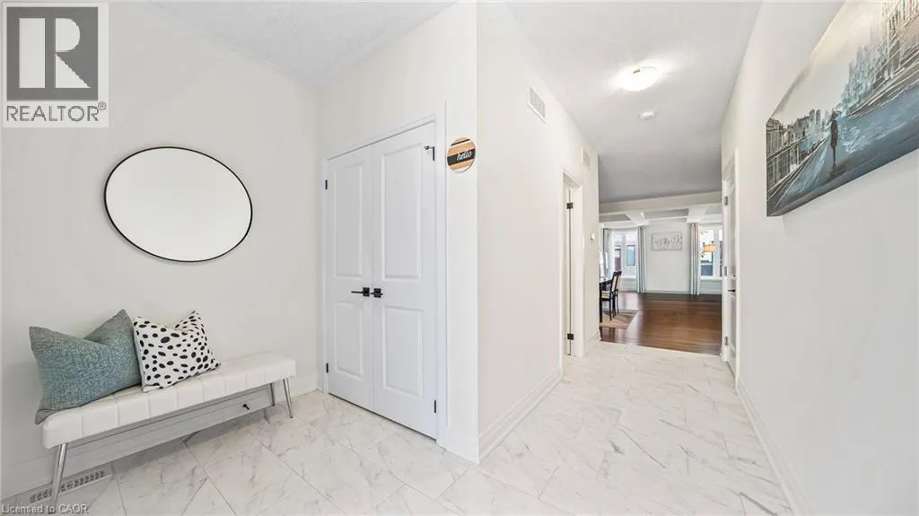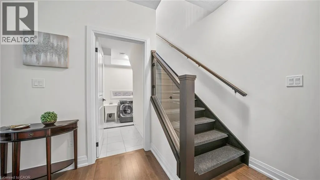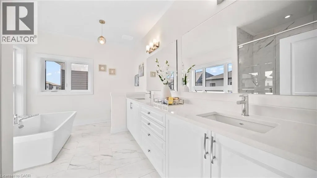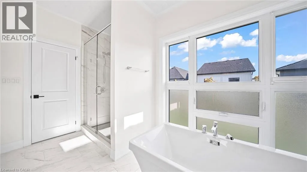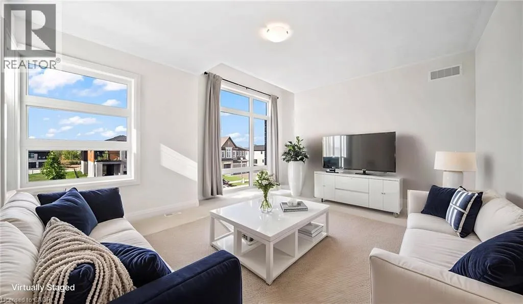 New Dundee and Dodge Discover elevated contemporary living in this nearly new Net Zero Ready home, ideally situated in the highly sought-after Harvest Park community. Offering 4 bedrooms and 3.5 bathrooms, this thoughtfully customized home showcases over $150,000 in premium upgrades, seamlessly blending sophisticated design with sustainable efficiency. The main level features a sun-filled open-concept layout anchored by a chef's kitchen complete with high-end appliances, custom ceiling-height cabinetry, and effortless flow into the dining area and great room-ideal for both everyday living and entertaining. A dramatic waffle ceiling adds architectural interest, while a powder room and convenient main-floor laundry complete the space. The main ensuite has a walk-in closet and a spa-inspired ensuite with expansive feature window. Impressive 9-foot ceilings enhance the sense of openness throughout, extending into the professionally finished basement. Upstairs, you'll find four generously sized bedrooms plus a versatile family room that can easily function as a fifth bedroom or home office. The primary suite offers a private retreat with a walk-in closet and a spa-inspired ensuite. The finished lower level expands the living space with a spacious recreation area, full bathroom, and two storage rooms. With rough-ins for a kitchen, sink, and laundry, the basement presents excellent potential for a home theatre, in-law suite, or future secondary unit. Comprehensive soundproofing-including the garage ceiling-ensures exceptional peace and comfort. Set against the serene backdrop of open green space, yet just minutes to Highway 401 and the conveniences of South Kitchener, this Harvest Park home delivers the perfect balance of tranquility and accessibility. (id:27476)