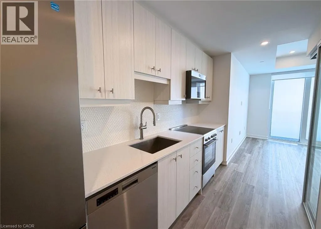 King St. W. to Wellington This bright and modern 1-bedroom condo on the 18th floor of Station Park offers beautiful views and a comfortable layout thatâs perfect for anyone wanting simple, stylish living in the heart of Kitchener. The unit features a clean 4-piece bathroom, a good-sized bedroom, in-suite laundry, a well-designed kitchen with upgraded cabinets, and an open living area filled with natural light. You have your own private balcony and it also comes with 1 parking spot and a locker space. Living at Union Towers in Station Park means enjoying some of the best amenities in the region, including a bowling alley, swim spa and hot tub, fitness center, Peloton and yoga studios, pet spa, outdoor terrace with cabanas and BBQs, games lounge, and private dining room. The building also has a concierge and smart parcel lockers for easy deliveries. Station Park is right in the Innovation District, steps from Google, the LRT, GO Transit, downtown restaurants, cafés, parks, and everyday shopping, making it an ideal place for professionals who want convenience, comfort, and a great community feel. Donât miss out and book your showing today! (id:27476)