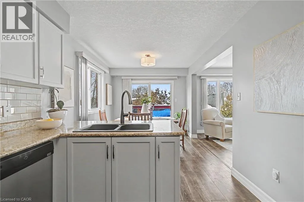 This home truly has everything youâve been looking for. Situated on a quiet courtside location, it offers privacy and peace of mind â no through traffic and no worries about people parking in front of your home. The only cars passing by belong to neighbours who live on the court. The paved stone driveway is generously sized to accommodate 4 cars, plus an additional parking space, making parking effortless for family and guests. Bright from morning to evening, this east-facing home welcomes beautiful morning light at the front and warm afternoon sunshine in the backyard. Large windows throughout flood the space with natural light, creating an airy and inviting atmosphere. Carpet-free with laminate flooring throughout, this home is both stylish and low maintenance. The main floor features a spacious kitchen and dining room combination, perfect for gathering and entertaining. From the dining area, step out onto your deck â an ideal spot to enjoy your morning coffee or unwind while taking in the sunset views. Upstairs, the bedrooms are impressively sized â each large enough to comfortably fit a king-sized bed. The primary suite is especially spacious and includes the added convenience of its own ensuite. The cozy walk-out basement is perfect for movie nights and family time, complete with a 2-piece rough-in for future possibilities. Step outside and discover the true showstopper â an incredible backyard that feels like a private cottage retreat. With a charming log cabin shed and firepit, this space is made for magical summer nights and unforgettable gatherings. Located within five minutes of highway access, Fairview Park Mall, restaurants, schools, and public transit, convenience is at your doorstep. Updates include: Roof (2019), Garage Door, Stove & Furnace (2020), Pergola (2024), Water Softener (2025). (id:27476)