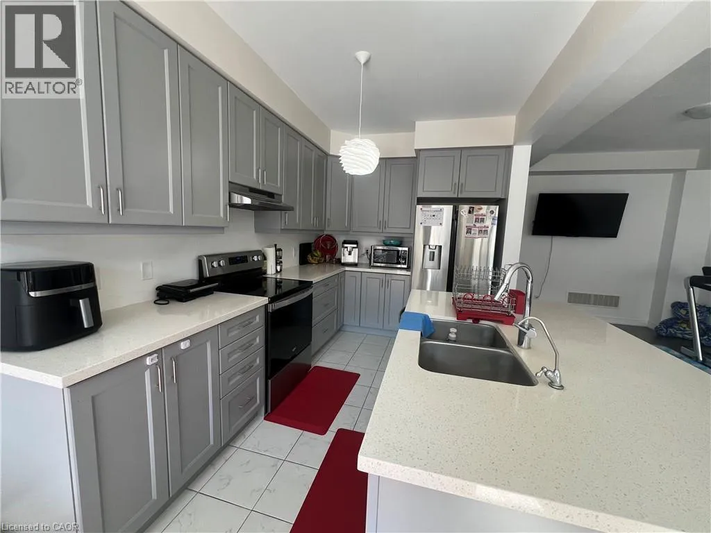 Welcome to 21 Stonehill Avenue, a stunning 3-bedroom, 3.5-bathroom home in one of Kitchenerâs most sought-after neighborhoods. This modern property features a bright, open-concept main floor with a powder room, garage access, and a spacious kitchen equipped with quartz countertops, a large island, and stainless steel appliances. The airy living and dining area is filled with natural light, with sliding doors leading to a well-sized, fully fenced backyard â perfect for relaxing or entertaining.The upper level offers three generous bedrooms and two full bathrooms, including a private primary ensuite with a separate shower. A standout feature is the professionally finished basement with rare 9-foot ceilings and a full bathroom â ideal for additional living space.Located just minutes from Highway 401, top schools, and parks, this home offers the perfect blend of luxury and convenience. Donât miss your chance to lease this exceptional property! (id:27476)