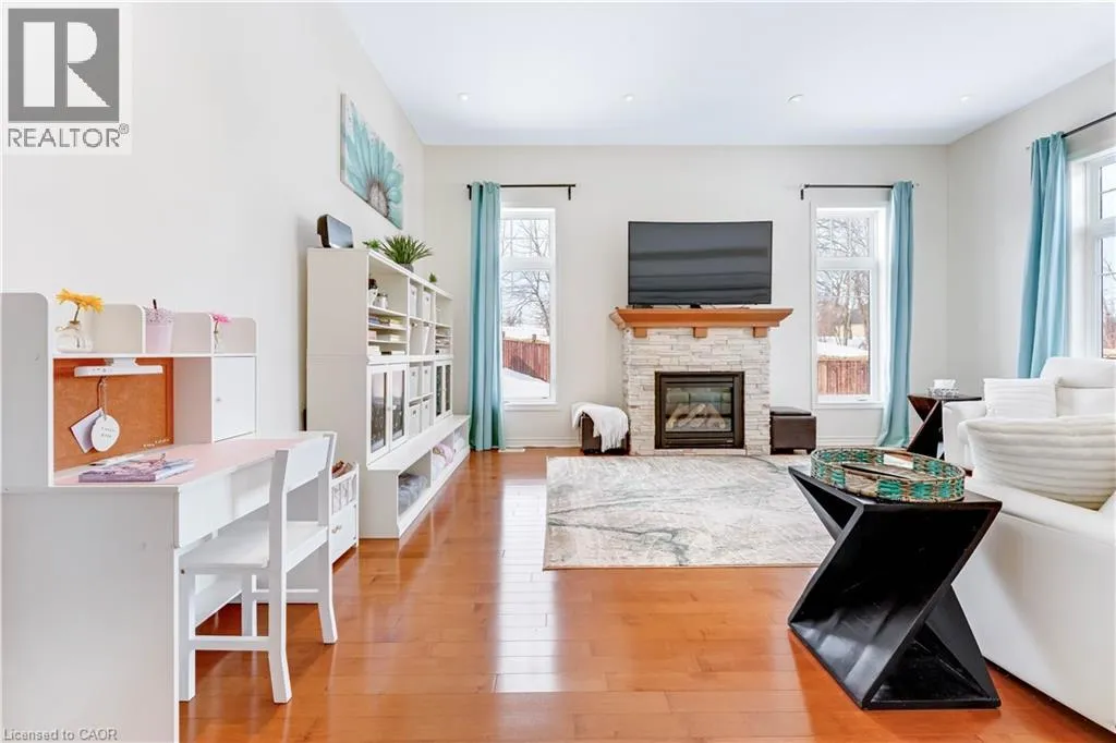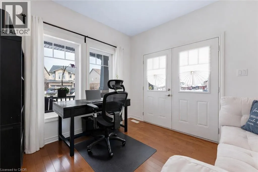 Bleams Road To Eliza Ave Welcome to 127 Eliza Ave, Kitchener, a beautifully upgraded home nestled in the highly desirable Eby Estates community. Offering an impressive over 3000 sqft of finished living space, this property sits on a premium 55 x 151 ft corner lot, delivering stunning views, The lush landscaping, beautiful, covered porch, oversized corner presence and sought-after 4-car parking (2-car garage, 2-car driveway) create a grand first impression. Stepping into the breathtaking foyer with soaring ceilings and closets on both sides feels both luxurious and welcoming. The living room features 11 ft ceilings, oversized windows overlooking the backyard and a cozy gas fireplace, truly the heart of the home. The chefâs kitchen boasts granite countertops, stainless steel appliances including a wine fridge, stylish backsplash, pantry, and a large center island with an additional sink. A bright dining area sits just off the kitchen, where family memories are made. A spacious main floor den with its own private entrance is ideal for a home office or guest suite. The main and upper floors are carpet-free with premium flooring throughout. Upstairs offers three generously sized bedrooms, including an oversized primary bedroom with large windows, a customized walk-in closet and a spa-inspired 4pc ensuite. An additional bathroom and convenient upper-level laundry complete the second floor. The builder finished basement offers a 3pc bathroom and an expansive Rec room that can be customized into an additional bedroom, home gym, home theatre and playroom with plenty of remaining space. Step outside in the fully fenced backyard oasis with interlocking stone patio, just perfect for all summer fun activities or hosting BBQs, gatherings or simply enjoying the views. Ideally located just minutes from top-rated schools, parks, Sunrise Plaza and quick access to Highway 7/8, this home has it all! Book your private showing today and make it yours! (id:27476)