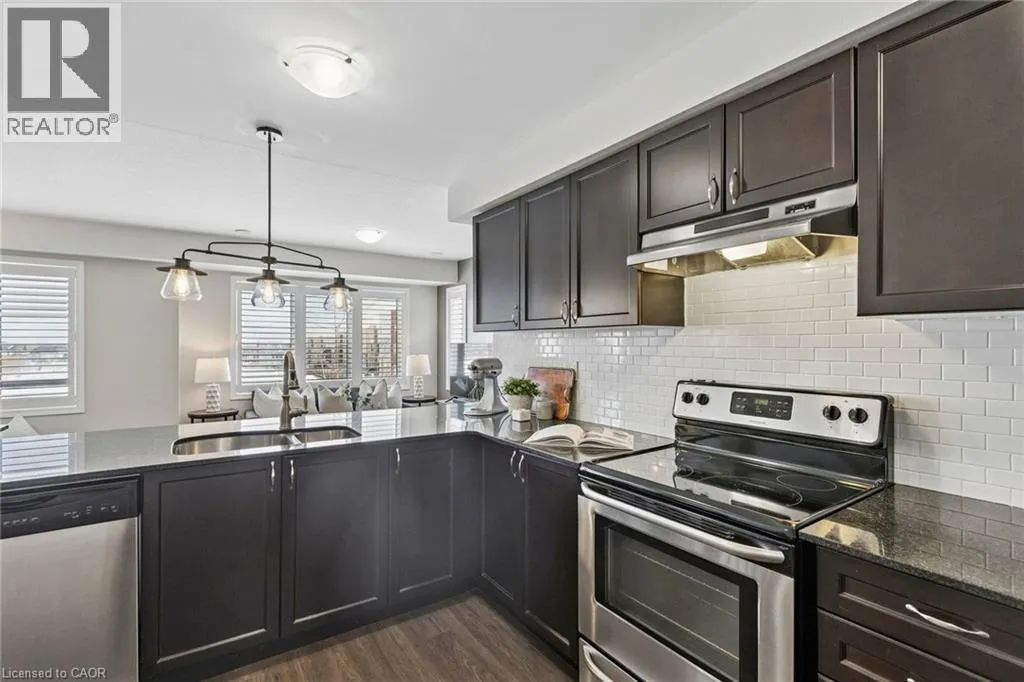 Fischer-Hallman Road & Seabrook Drive ATTENTION FIRST-TIME BUYERS, DOWNSIZERS AND CITY DWELLERS and feast your eyes on this beautiful, move-in ready 2 bedroom CORNER UNIT townhome! Located in Kitchenerâs WILDFLOWERS neighbourhood, a highly sought-after family-friendly neighbourhood that is close to all your shopping favourites, great schools, parks including the RBJ Schlegel Park, and also offering quick access to HWY 401, this home should be on your MUST-SEE list! LOW CONDO FEES make this home even more attractive! Once inside you'll be captivated by the main floor open-concept layout, bright and airy and filled with lots of natural light with lots of windows and bonus California shutters included to provide privacy and comfort. Step inside the spacious kitchen, with large island, perfect for making your daily meals featuring granite countertops, tiled backsplash, stainless steel appliances, double-stainless steel sink, and a huge breakfast bar. It will definitely be the gathering place when friends and family come to visit. Walk over to the spacious dinette that leads out to the terrace where you can enjoy summer mornings with coffee or evenings with a cocktail. Entertaining and daily living is easy with a convenient powder room on the main floor. The second floor features a beautiful primary bedroom with a walk-out Juliette balcony and spacious ensuite bathroom and closet. The second bedroom also offers its own ensuite bathroom, perfect for overnight guests or can be used as an office, exercise or craft room. Stacked washer and dryer for laundry on the second floor for added convenience lots of additional closet space for storage. And a single-car garage space for you to park your car or for more storage complete this home. This home is move-in ready. Book your private showing today! NOTE: This is NOT a stacked townhome. There is no one living above or below. (id:27476)