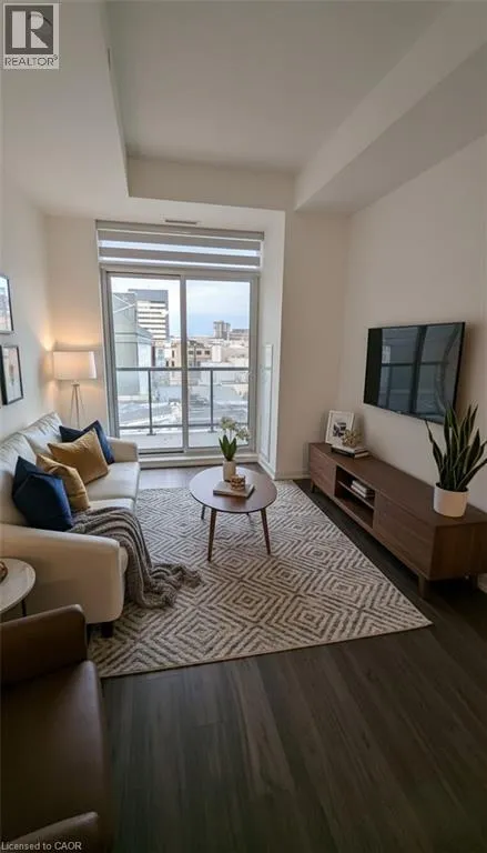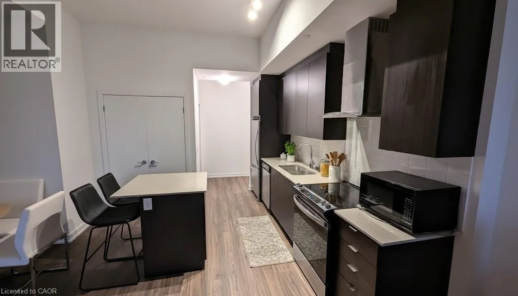 Young and Duke Welcome to Yonge Condos â the epitome of modern urban living in the heart of Downtown Kitchener! Perfectly positioned between LRT stops in both directions, this vibrant location offers unbeatable walkability to restaurants, cafés, parks, trails, shopping, and leading tech employers such as Google. Unit #413 offers 839 sq. ft. of bright, well-designed living space and includes over $10,000 in upgraded finishes. This suite features high ceilings, an open-concept layout, a private balcony, 1 BEDROOM plus a HUGE DEN âlarge enough to function as a office, or flex space, a modern bathroom, and in-suite laundry. The unit comes equipped with all five appliances, one underground parking space, and a bike locker. Enjoy an impressive selection of amenities including a concierge, pet spa, self-serve car wash, rooftop running track, state-of-the-art fitness zone with spin room, party room with sunbathing terrace, firepit and shared BBQ area, plus a landscaped ground-level courtyard with bike racks and an on-site restaurant. Experience stylish living with unmatched convenience at Yonge Condos! (id:27476)