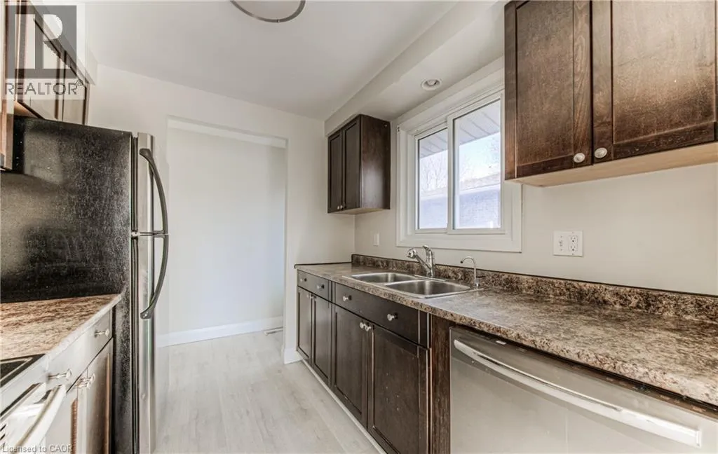 Take ON-401 W to Homer Watson Blvd in Kitchener. Take the Homer Watson Boulevard S exit from Hwy 8 W/ON-7/ON-8 W; Take Ottawa St S to Strasburg Rd. Presented with style and care - WELCOME HOME to this beautifully renovated upper main floor in desirable Alpine Village! Enjoy living in this updated, spacious unit. This renovated 3 bedroom, 1 bathroom apartment includes in-suite laundry! Natural light abounds through this mid-century-modern bungalow - accentuating carefully chosen flooring, countertops, wall colours and stainless steel appliances! Entertain to your heart's content from this galley style kitchen to an open and airy living room space! A perfect to gather friends and family. Closet space, easy access in-suite laundry and crisp finishes with updates completed in March 2025. Parking is available and dedicated to this unit. Enjoy all that this area has to offer - close to the LRT & public transit, with restaurants, grocery store and shopping. All measurements as per i-Guide - book your viewing soon! (id:27476)