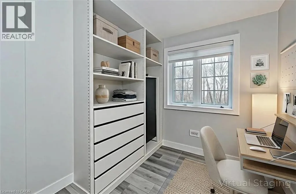 Welcome to this stunning 2-bedroom, 1.5-bathroom stacked townhouse for lease in the highly desirable Huron Park community! Offering stylish updates and modern finishes throughout, this home combines comfort and functionality in every detail. The contemporary kitchen features sleek quartz countertops, updated appliances, and ample storage, including a spacious pantry. The open-concept living area flows seamlessly to one of two private balconies, perfect for enjoying your own outdoor retreat. Luxury vinyl plank flooring adds warmth throughout, and the updated powder room showcases clean, modern fixtures. Upstairs, youâll find two bright bedrooms overlooking mature trees, a beautifully renovated main bath with a walk-in glass shower, and the convenience of upper-level laundry. Additional features include upgraded interior doors and trim, custom blinds, a water softener, on-demand water heater, and a high-efficiency furnace for year-round comfort. With a large storage closet and an assigned parking space just steps from the entrance, this home checks all the boxes. Located in a family-friendly neighbourhood close to schools, parks, Longos shopping centre, and amenities at the RBJ Schlegal Park. Schedule your viewing today! (id:27476)
