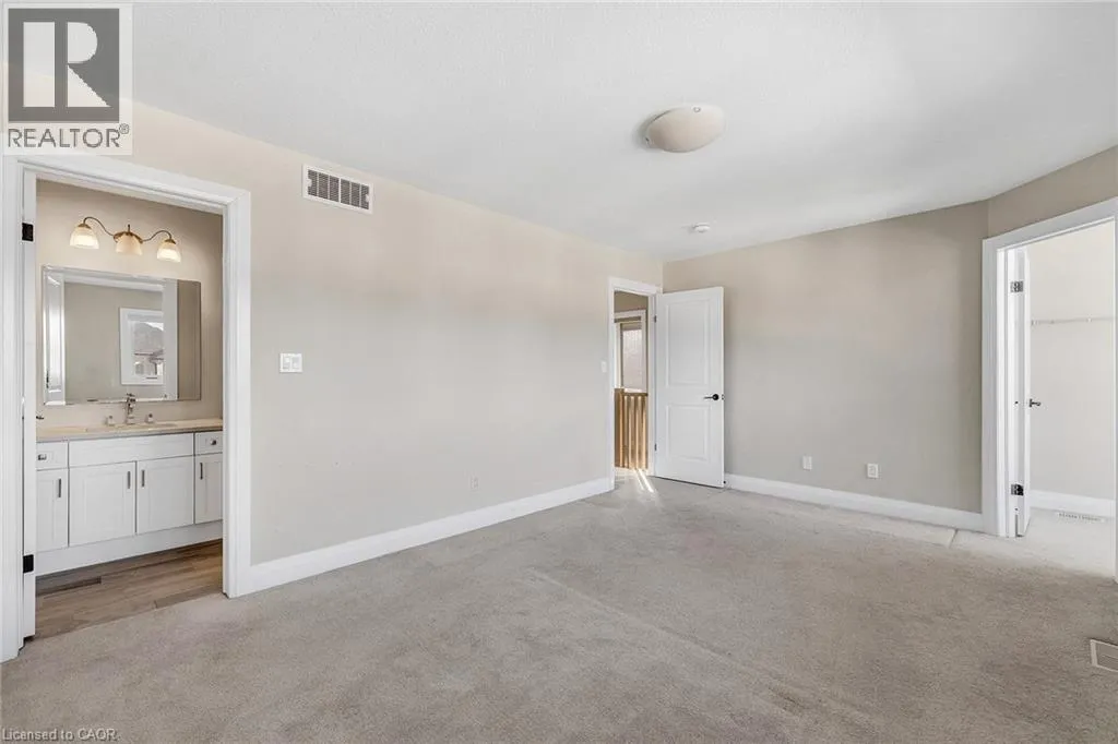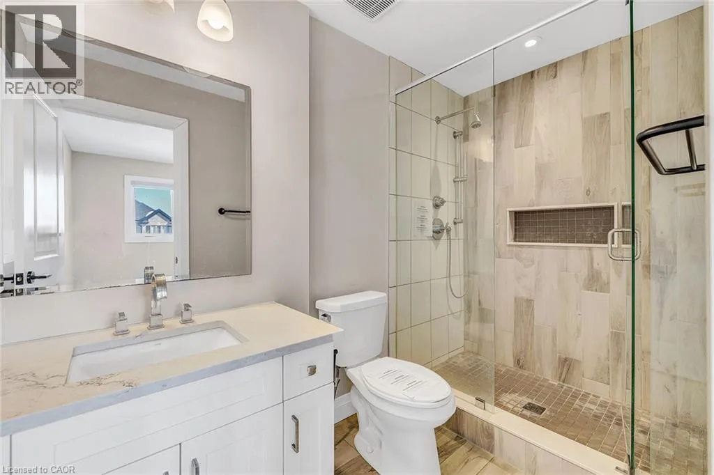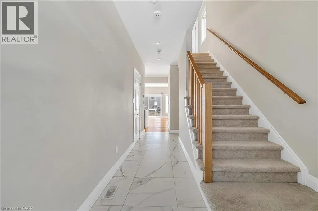 From Homer Watson Blvd turn at the light onto Doon South Dr. Take first right at the roundabout onto Doon Mills Dr. Turn left onto Appleridge Dr. Left onto Forest Creek Dr. Take first right onto Pondcliffe Dr. House on left halfway down the street. Experience modern elegance at 47 Pondcliffe Drive, a meticulously maintained 2-storey detached home in the highly sought-after Doon South neighborhood. Completed in 2020, this Ridgeview home features a bright open-concept layout with 9' ceilings, engineered hardwood floors, and a chefâs kitchen boasting custom cabinetry, quartz countertops, and a walk-in pantry. The spacious living area flows through oversized 8' patio doors to a fully fenced and sodded backyard. Upstairs, enjoy three sun-filled bedrooms and the convenience of second-floor laundry. The primary suite offers a spa-inspired ensuite with a glass walk-in shower and rainfall head. Modern essentials include central A/C, a water softener, and a triple-wide stamped concrete and paver stone driveway. Ideally located just minutes from Hwy 401, top-rated schools, and scenic trails, this property offers luxury and comfort in one perfect package. (id:27476)