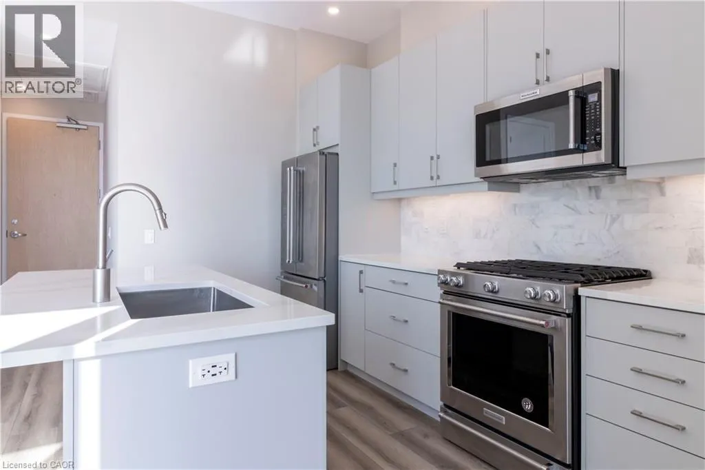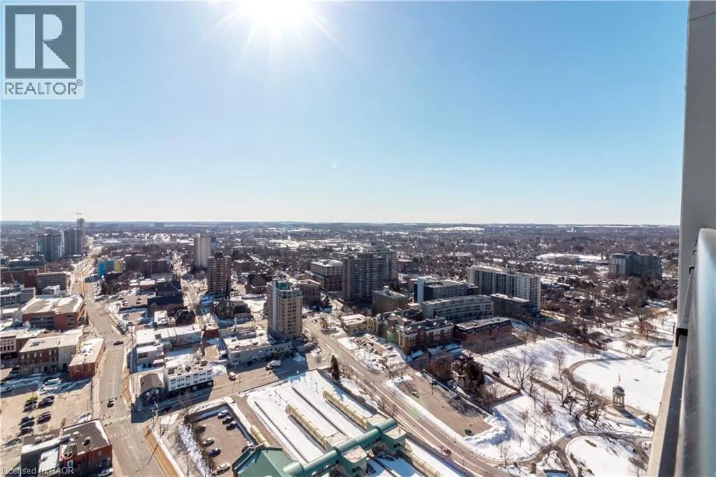 Soaring 10 foot ceilings and unparalleled breathtaking views of Victoria Park are just a couple reasons to call this true Penthouse Suite at Charlie West home. A premier condo experience, the Scott McGillivray Collection Suite 3103 is a carpet free 2 bed/2 bath and offers luxurious finishes, quartz kitchen counters/island, marble backsplash, gas range, upgraded lighting, and floor to ceiling windows. Charlie West is an upscale, 31 story, modern glass design condominium developed by Momentum, and loaded with amenities such as a fitness/yoga centre, entertainment room, social lounge, outdoor terrace, pet run, and a concierge. There is a parking license included for underground secure parking. Situated in the heart of downtown Kitchener, you'll be immersed in a vibrant community filled with local eateries, trendy boutiques, Victoria Park, School of Pharmacy, Innovation District, and steps to the Google headquarters. Charlie Westâs central location provides easy access to public transportation including the LRT and upcoming transit hub, making your daily commute a breeze anywhere in Waterloo Region or Toronto. Call today for your private showing. (id:27476)