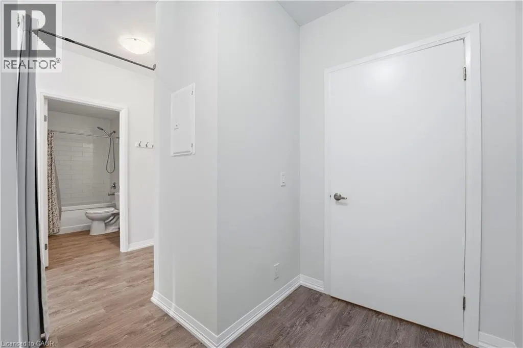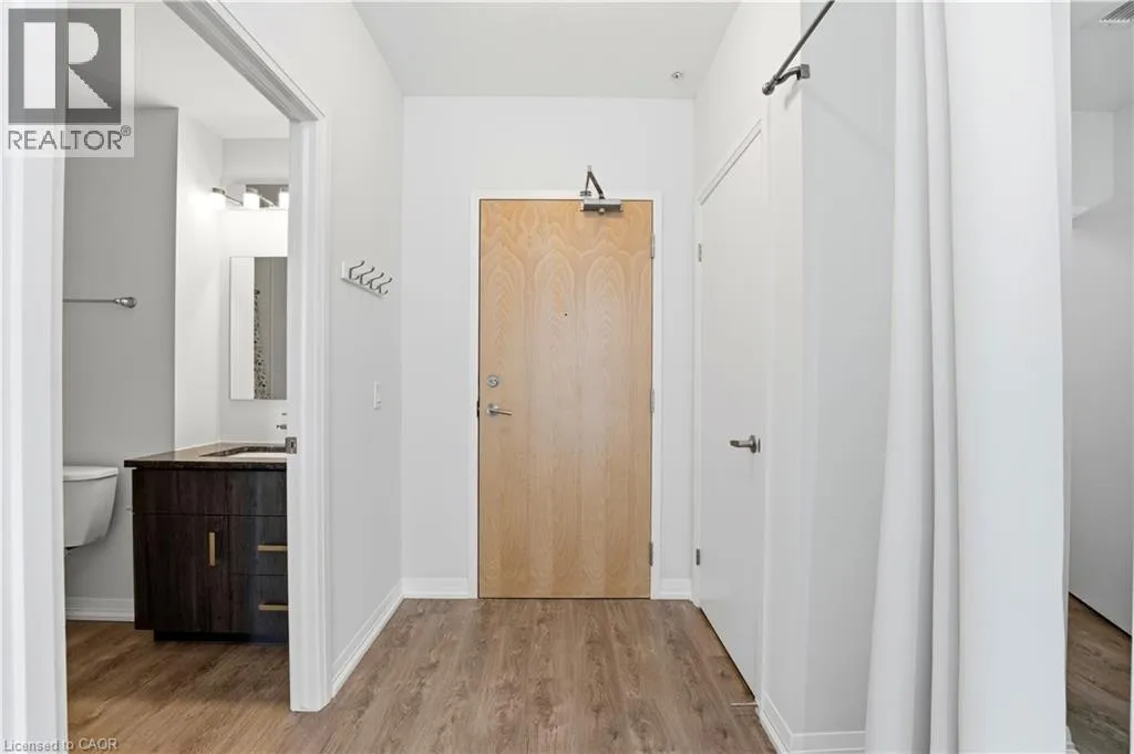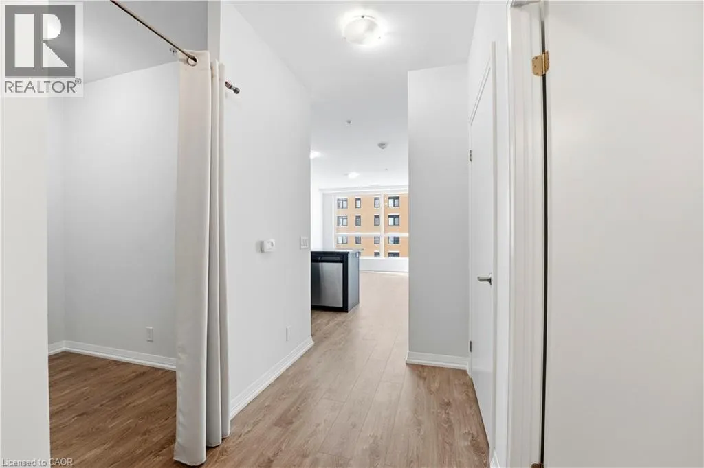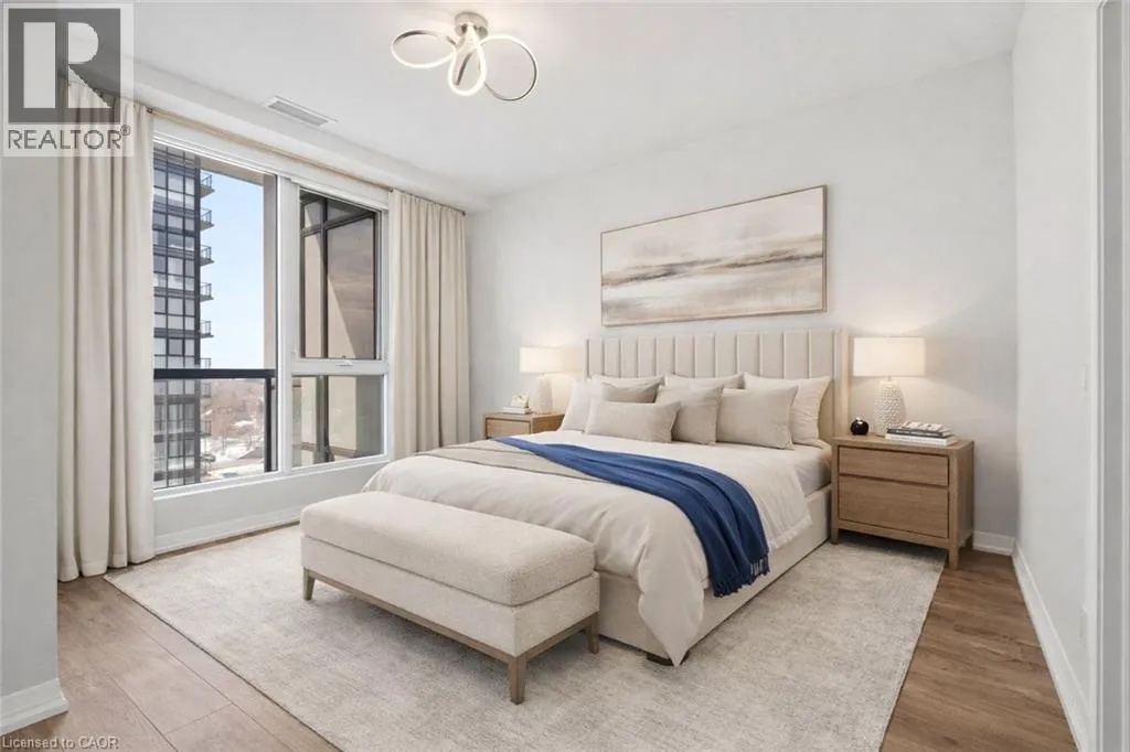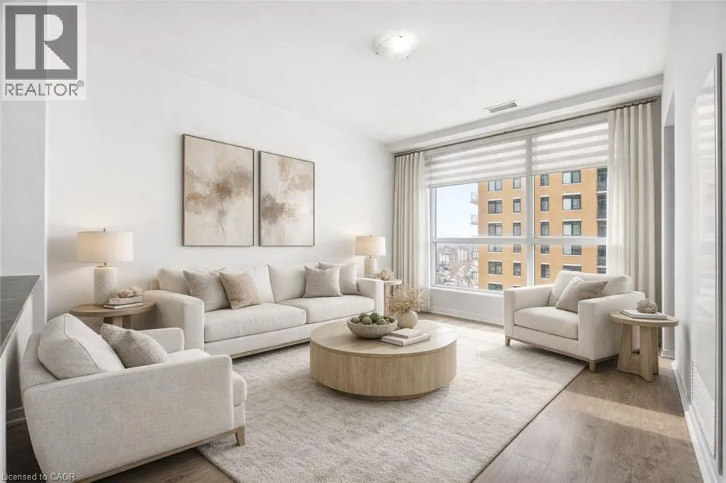 King Street & Victoria St Perched high above the vibrant Kitchener skyline, this ONE-BED + DEN condo at 104 Garment St, Unit 1206 offers an exceptional opportunity in Downtown Kitchenerâs most sought-after addresses. BRIGHT OPEN-CONCEPT LAYOUT enhanced by PREMIUM FLOORING AND FRESHLY PAINTED neutral tones. The contemporary kitchen offers GENEROUS GRANITE COUNTERTOPS, STAINLESS STEEL APPLIANCES, A TASTEFUL TILE BACKSPLASH, & a breakfast bar that overlooks the main living area. The spacious living room is flooded with natural light from IMPRESSIVE FLOOR-TO-CEILING WINDOWS and offers direct access to a private balcony overlooking the terrace below. The PRIMARY BEDROOM IS BOTH COMFORTABLE AND FUNCTIONAL, featuring a large walk-in closet and a GENEROUS WINDOW FRAMING ELEVATED CITY VIEWS. A versatile den provides the perfect space for a home office, reading nook, or guest area, also offering a full 4-piece bathroom, convenient in-suite laundry, and additional storage. Residents of this highly desirable building enjoy an impressive array of PREMIUM AMENITIES INCLUDING A ROOFTOP TERRACE with stunning city views, a fully equipped fitness centre, private theatre room, party room, and a stylish media loungeâperfectly suited for todayâs dynamic professional lifestyle. The unit also comes complete with one underground parking space for added convenience. Ideally situated in the heart of Downtown Kitchenerâs Innovation District, this prime location places you just steps from the ION LRT, Grand River Hospital, Victoria Park, and an incredible selection of restaurants, cafés, and boutique shops. With major employers such as Google and the thriving tech hub nearby, THIS LOCATION IS PERFECTLY POSITIONED FOR PROFESSIONALS SEEKING BOTH CONNECTIVITY AND LIFESTYLE. Offering the perfect blend of modern design, functional living space, and unbeatable downtown convenience, this impressive condominium is a remarkable opportunity to enjoy the very best of city living. (id:27476)