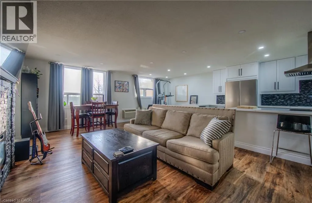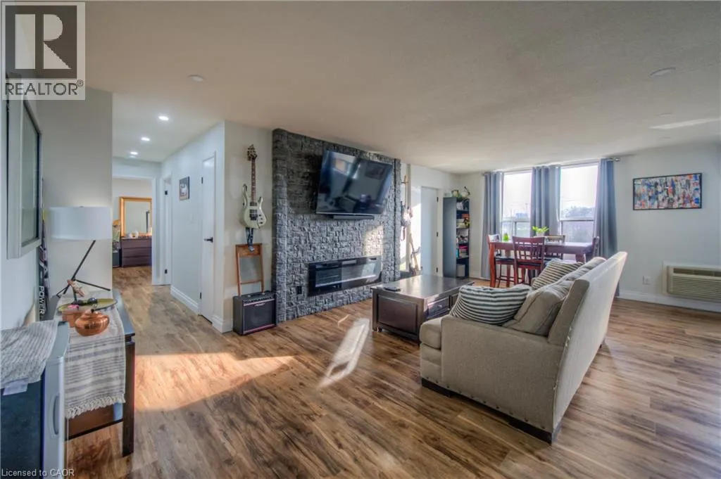 HOMER WATSON TO HOFFMAN TO KEHL Welcome to Unit 410 at 185 Kehl Street - a rare and beautifully renovated gem in Kitchener that's truly move-in ready. Since 2022, this unit has seen over $30,000 in stylish upgrades, making it one of the most updated condos you'll find at this price point. Step inside to find updating flooring, fresh paint throughout and a warm, inviting living space complete with a custom fireplace surround. The completely renovated eat-in kitchen is a true showstopper, featuring quartz countertops, a custom island, beautiful cabinetry, and a newer stainless steel appliances - perfect for morning coffees, causal meals, or entertaining guests. The spacious layout includes a two-piece ensuite, a renovated main bathroom, and even in-suite storage to keep everything organized. Step out onto your private balcony and enjoy the sunset after a long day - it's a perfect spot to unwind. Set in a building with a distinctive exterior and updated windows, this unit stands out not just for its interior updates, but also for its low condo fees, which are a rare find in Kitchener-Waterloo. With quick access to Highway 7/8 and close proximity to everyday amenities, this condo is ideal for first-time buyers, downsizers, or savvy investors. Don't miss your chance to own one of the most beautifully updated units in the building! (id:27476)