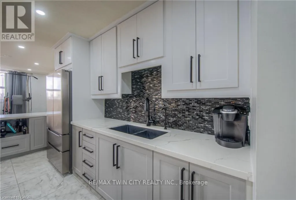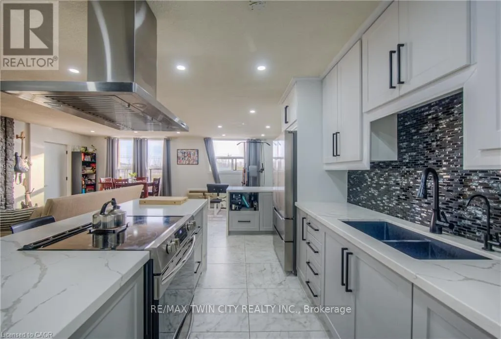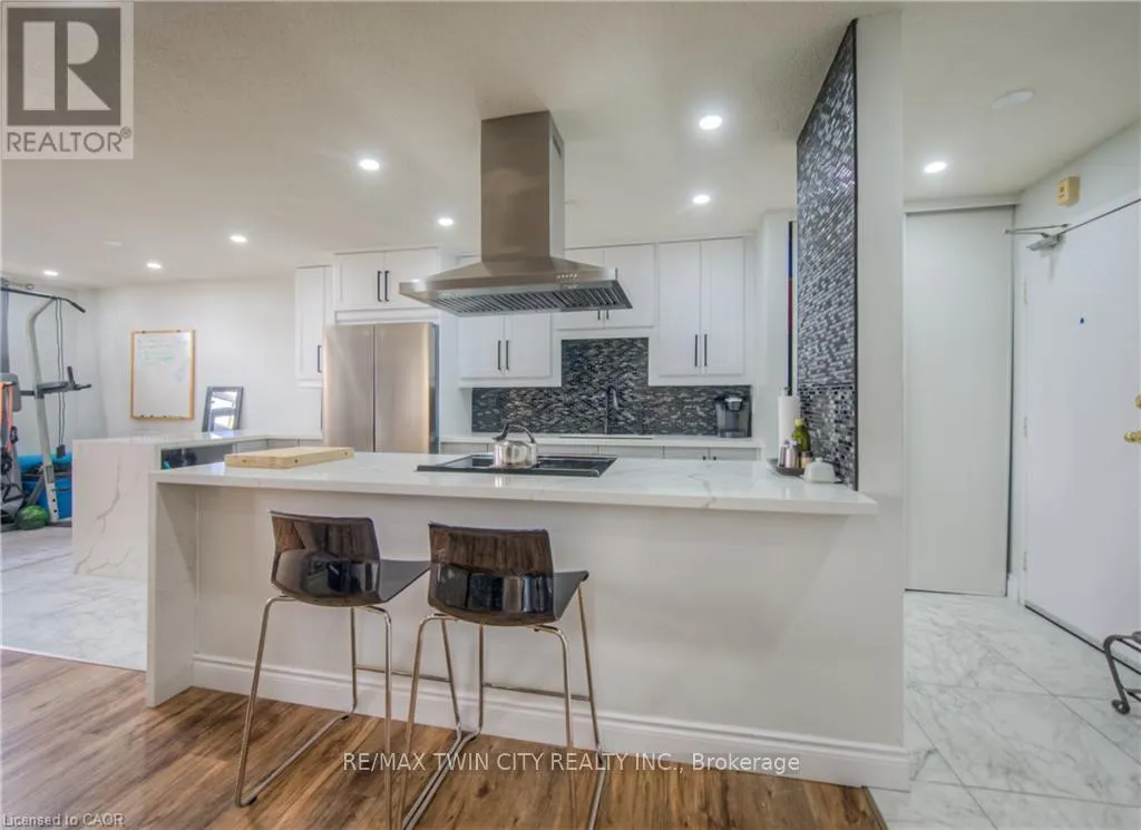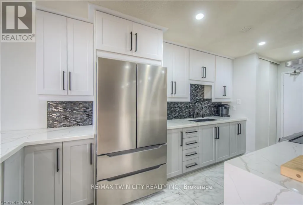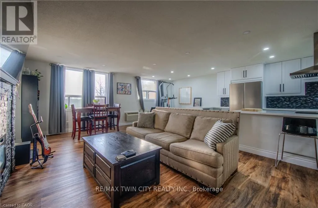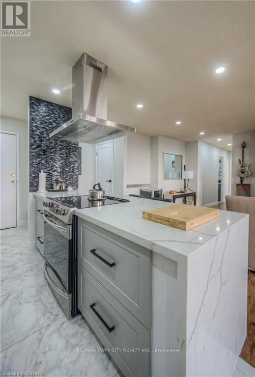 HOMER WATSON TO HOFFMAN TO KEHL Welcome to Unit 410 at 185 Kehl Street - a rare and beautifully renovated gem in Kitchener that's truly move-in ready. Since 2022, this unit has seen over $30,000 in stylish upgrades, making it one of the most updated condos you'll find at this price point. Step inside to find updating flooring, fresh paint throughout and a warm, inviting living space complete with a custom fireplace surround. The completely renovated eat-in kitchen is a true showstopper, featuring quartz countertops, a custom island, beautiful cabinetry, and a newer stainless steel appliances - perfect for morning coffees, causal meals, or entertaining guests. The spacious layout includes a two-piece ensuite, a renovated main bathroom, and even in-suite storage to keep everything organized. Step out onto your private balcony and enjoy the sunset after a long day - it's a perfect spot to unwind. Set in a building with a distinctive exterior and updated windows, this unit stands out not just for its interior updates, but also for its low condo fees, which are a rare find in Kitchener-Waterloo. With quick access to Highway 7/8 and close proximity to everyday amenities, this condo is ideal for first-time buyers, downsizers, or savvy investors. Don't miss your chance to own one of the most beautifully updated units in the building! (id:27476)