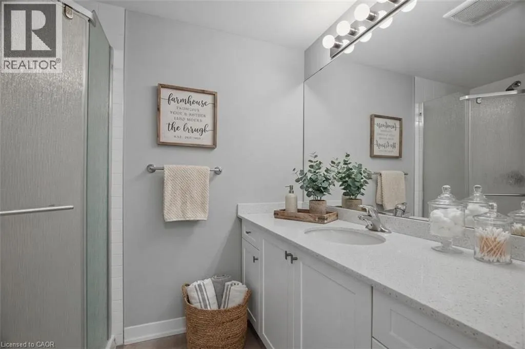 University Ave. to Countrystone Drive. ***Location is unbeatable â directly across from The Boardwalk, one of Waterlooâs most vibrant shopping and lifestyle hubs. Enjoy convenient access to restaurants, entertainment, shopping, MOVATI Athletic, Walmart, and a major transit hub. Just a short distance to both universities, making this an ideal location for professionals, investors, and downsizers alike. The heart of the home is the LARGE MODERN KITCHEN, complete with GRANITE COUNTERTOPS, a SPACIOUS ENTERTAINING ISLAND, and plenty of workspace for cooking and gathering. The kitchen flows seamlessly into a generous DINING AREA and bright living space, enhanced by ELEGANT WAINSCOTING, stylish ACCENT WALLS, and MODERN LIGHT FIXTURES that add warmth and character throughout. PATIO SLIDERS lead to a private porch area, perfect for relaxing or enjoying your morning coffee. This unit features 2 BEDROOMS and 2 FULL BATHROOMS (primary ensuite!), both finished with GRANITE COUNTERTOPS, offering comfort and convenience for owners and guests alike. The bedrooms include LARGE EGRESS WINDOWS allowing for plenty of natural light. Additional highlights include FRESH PAINT THROUGHOUT, MODERN INTERIOR DOORS, IN-SUITE LAUNDRY, and a BONUS STORAGE CLOSET for added functionality. One PARKING SPACE is also included. A truly MOVE-IN READY HOME in a fantastic location close to parks, walking trails, shopping, and all amenities â perfect for professionals, downsizers, or anyone seeking stylish, low-maintenance living. Some photos virtually staged. (id:27476)