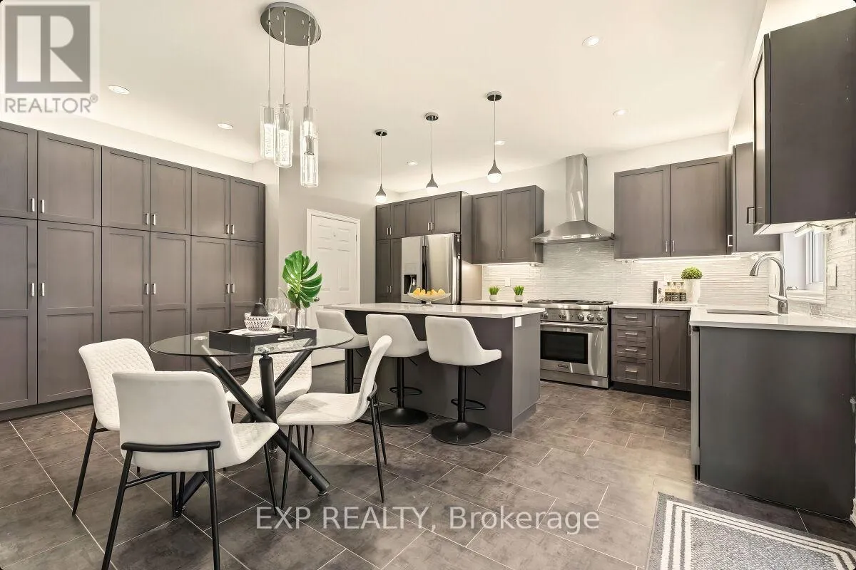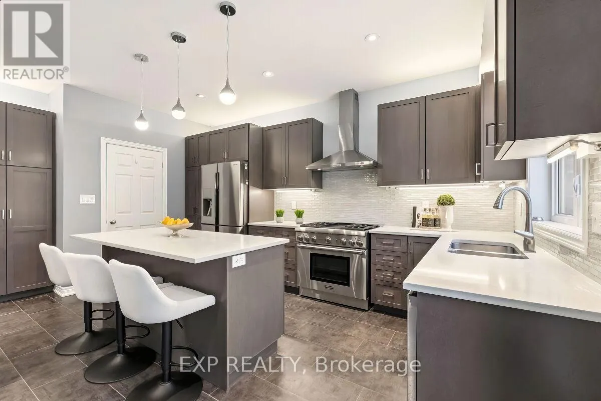 New Dundee / Robert Ferrie 'Unique' 5 Bdrm Home w/ 'Rare' Third Level w/ Loft & Den & Customized Second Flr Layout w/ Custom Home Office w/ Oversized Windows, Located In 'Sough After' Doon Mills - Topper Woods, Approx 3500 Above Ground (As Per Builder Floor Plan), Monarch Built, Dble Garage, Dble Door Entry, Brick & Stone Ext, 9 Ft Clngs, Plank Oak Hardwood Floors Thru Out, Open Concept Design, Waffle Clng & Gas Fireplace In Family Rm, Pot Lights, Family Size Kitchen w/ Valance Lighting, Brkfst Bar/Island & Quartz Stone Counters, Custom Barzotti Maple Cabinetry, High-End Appliances Including Thermador Professional Chef Stove, SS Fan Hood, Upgrd Triple Pantry, Pot Drawers, Glass Bksplsh, Sweep Vac (All 3 Flrs) & Eat-In Breakfast Area, Oak Hdwd Staircase, Upgrd ELFs & Window Coverings, Commercial Privacy Tint On All Windows, Partially Fin Bsmnt w/ Oversized Windows & Upgraded 3 Pce Wshrm R/I (Ready For Your Finishing Touches), Master Bdrm w/ His/Her Closets & Ensuite w/ Double Sinks & Soaker Tub & Shower, Storage Shed, Fully Fenced, Side Entrance Door To Basement, Garage Access Door To Mud Room, Upgraded Electrical 200 Amp (id:27476)