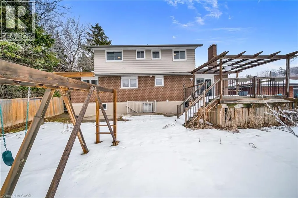 Stunning freehold home offering 4 spacious bedrooms and 3 bathrooms with approximately 2000+ sq. ft. of beautifully finished living space. Just Steps to Chicopee Ski Hill and Tucked Away on a Mature Street Backing on to Walking Trails. Main Floor Family Room with Walkout to a Generous Sized Deck and Fenced Rear Garden. Premium upgrades throughout, including hardwood flooring on the main level and second-floor, elegant quartz countertops in the kitchen and bathrooms. The family room features a cozy gas fireplace, while 9-foot ceilings on the main level enhance the bright and airy feel of the home. A striking oak staircase with upgraded metal pickets adds architectural interest. The sleek quartz countertops are enhanced by a breakfast bar, providing plenty of space for meal prep and casual dining. A servery and a large W/I pantry provide additional storage and organization. A convenient entrance from the garage leads to service stairs down to the basement. Finished Recreation Room, Double Car Garage. Separate entrance for the basement from backyard. New roofs 2020. (id:27476)