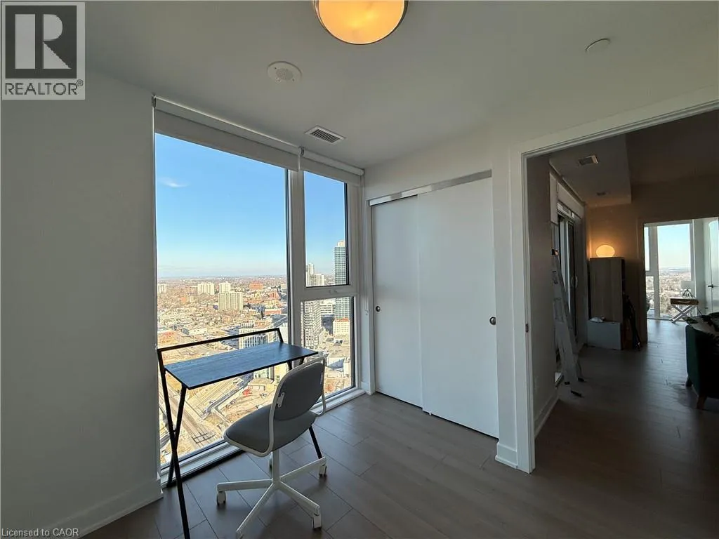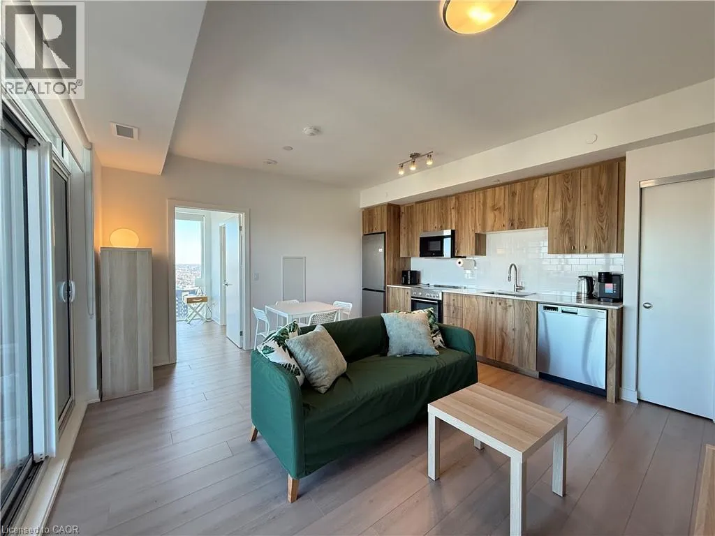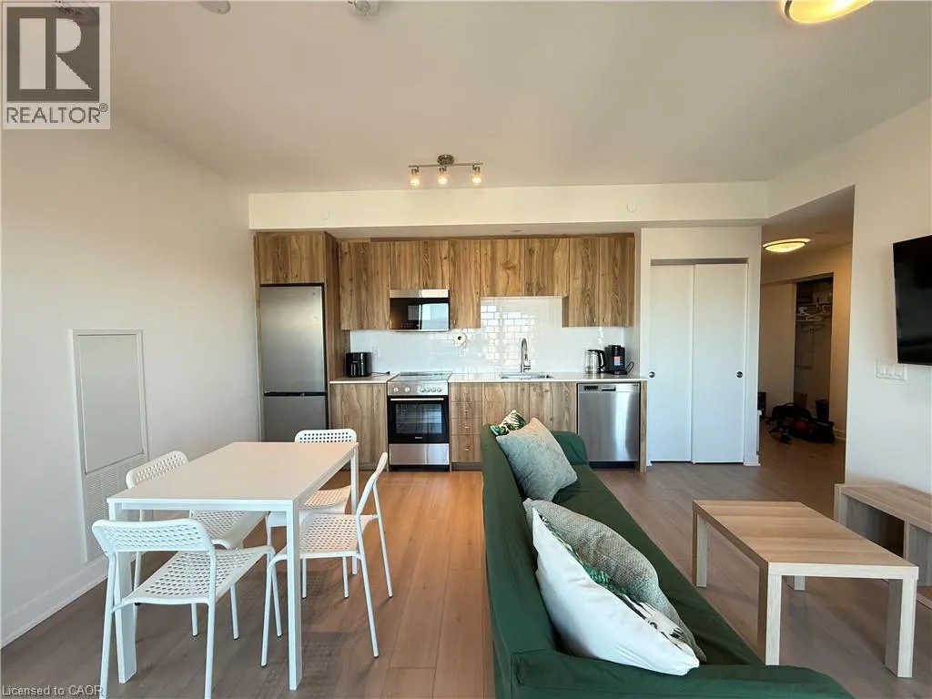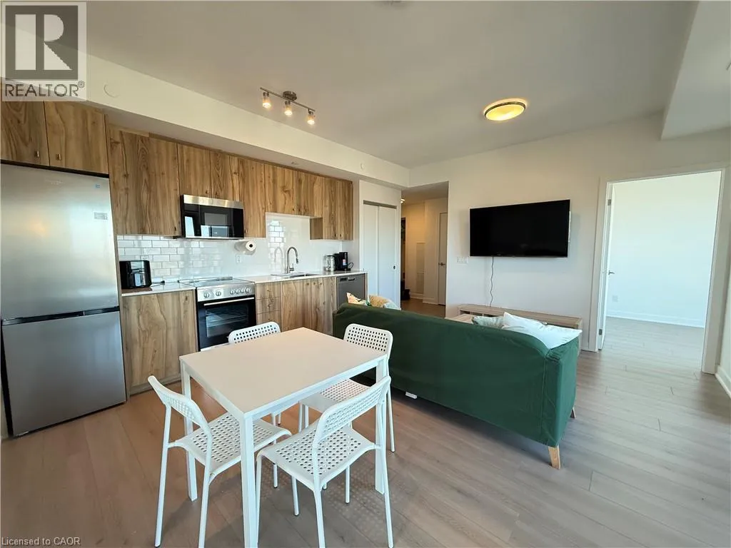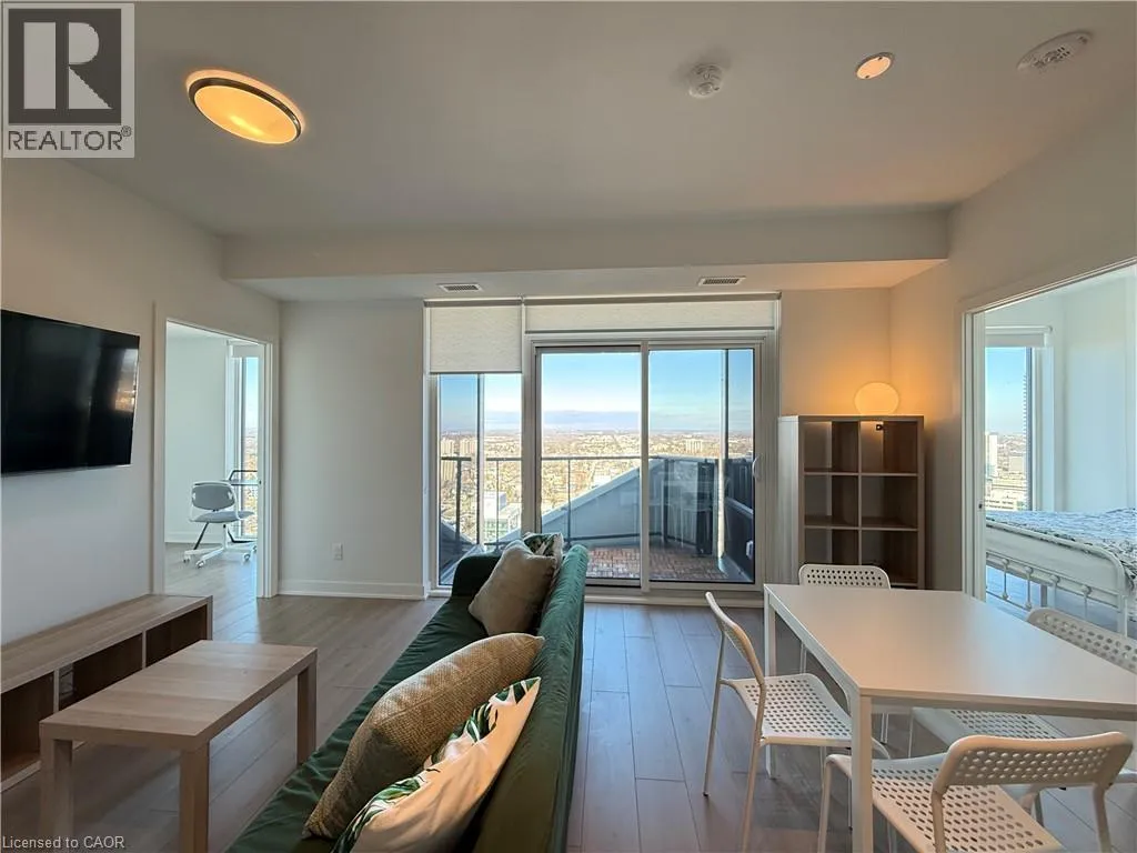 Off King St and Wellington St across from Google Available immediately! Furnished suite. Experience elevated urban living in this stunning 2-bedroom, 2-bathroom corner suite at DUO at Station Park, located on a high floor with breathtaking panoramic views of Kitchener-Waterloo through expansive floor-to-ceiling windows. This bright and modern residence features upgraded flooring, stylish window coverings, and a spacious open-concept layout designed for both comfortable living and entertaining. The fully furnished unit offers a convenient move-in-ready lifestyle, perfect for professionals, relocating tenants, or those seeking flexibility without the hassle of furnishing a home. The suite includes one underground parking space and one storage locker, with additional parking available through the building for $160 + HST per month. Bell Fiber high-speed internet is included in the rent, making it ideal for professionals or remote work. Tenants are responsible for hydro and water and must set up their own utility accounts. Residents enjoy world-class amenities including a two-lane bowling alley with lounge, games room with pool and foosball, Hydropool swim spa and hot tub, fully equipped fitness centre, yoga/Pilates and Peloton studios, and a beautifully landscaped outdoor terrace with cabanas and BBQ areas. The building also features a concierge desk and secure parcel system for added convenience. Future amenities will include an outdoor skating rink and on-site restaurants, further enhancing the vibrant lifestyle at Station Park, one of the most exciting new communities in the Kitchener-Waterloo tech corridor. (id:27476)
