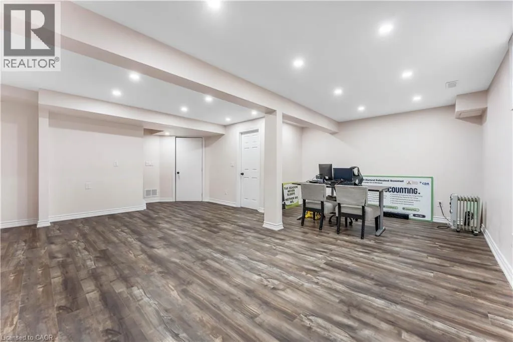 commonwealth Dr To Dubrick cres Welcome to 142 Dubrick Street, Kitchener, a beautifully updated end-unit freehold townhome in one of the cityâs most desirable communities. Situated on a 30 x 114 ft lot, this move-in ready home offers 3 parking spaces: 1-car garage plus 2-car driveway, making it an ideal choice for families, first-time buyers or professionals seeking a well-maintained property in a prime location. Step inside and be greeted by a bright and inviting interior freshly painted in 2025, complemented by brand-new flooring (2025) and stylish pot lights that create a warm and modern atmosphere in the home. The spacious open-concept main floor is designed for both everyday living and entertaining, featuring a well-appointed kitchen with new Quartz countertops, quality appliances and a tasteful backsplash. The adjoining dinette area is perfect to enjoy meals. Upstairs, the home continues to impress with 3 generously sized bedrooms and 2.5 bathrooms. The primary bedroom provides a comfortable retreat, while 2 additional bedrooms offer flexibility for family members or guests. A convenient loft office space adds extra functionality, ideal for remote work or study. The bathrooms have been tastefully refreshed with modern vanities installed in 2024. The fully finished basement expands the living space significantly, featuring a huge recreation room perfect for a home theatre, games area or family lounge along with a full bathroom. Outside The fully fenced and beautifully landscaped backyard offers privacy and space to unwind, making it a perfect setting for children, pets and outdoor gatherings. Additional upgrades include New roof with shingles (2025). Located in the highly sought-after Laurentian West community, this home is just few steps from Williamsburg Town Centre, close proximity to excellent schools, parks and walking trails and easy access to Highway 8 and Highway 401. This fully upgraded, move-in ready home has it all. Schedule your showing today and make it yours! (id:27476)