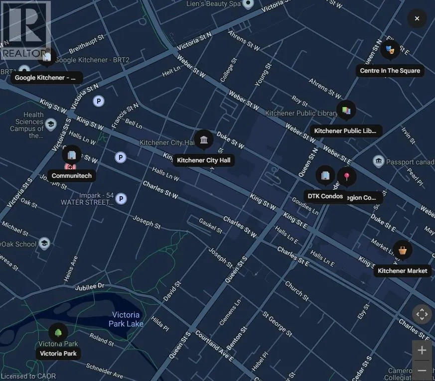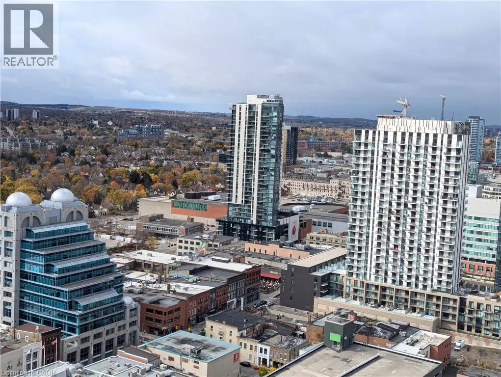 Queen St. to Duke St E to Frederick St. Experience the PERFECT FLOW of this HOME before you even step inside by watching our full VIDEO tour. Elevated Urban Luxury with Spectacular South-Facing Views...Welcome to DTK Condos at 60 Frederick Streetâthe second tallest building in KW and the pinnacle of Downtown Kitchener living. Perched on the 27th floor, this sun-drenched, south-facing 1-bedroom plus den, 2-bathroom suite delivers breathtaking, panoramic views of the city skyline right from your private balcony. Offering a beautifully optimized, open-concept design, this suite is a turnkey dream for professionals or savvy investors with low condo fees, or 1st time home buyers or downsizers, looking for a luxurious and care free lifestyle. Floor-to-ceiling windows flood the space with natural light, highlighting a sleek, modern kitchen outfitted with quartz countertops, stainless steel appliances, and ample cabinetry. The primary suite features a private 3-piece ensuite, while the versatile den serves as the ultimate dedicated home office or guest space. Building Features, smart & Secure Living - Fully integrated smart home technology (including intelligent lighting and a smart lock system), plus 24-hour concierge service and secure entry for total peace of mind. Premium Amenities: State-of-the-art fitness center, yoga studio, and a massive rooftop terrace complete with BBQs and extensive seating for entertaining. Unmatched Convenience: In-suite laundry, with flexible monthly parking options available nearby. The Ultimate Urban Lifestyle: The ION LRT is right at your doorstep for effortless regional commuting. You are steps away from Kitchener's vibrant tech hub, trendy restaurants, boutique shopping, parks, Google Office, and the library. This 2022 modern build perfectly blends comfort with vibrant downtown energy. Book your private showing today and experience the view for yourself! (id:27476)