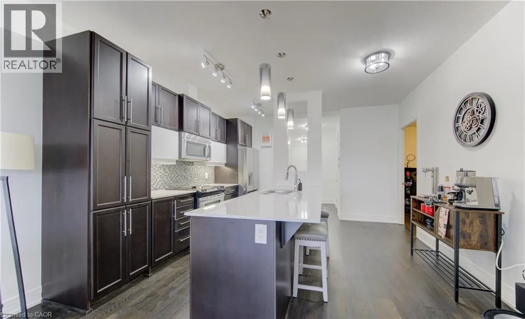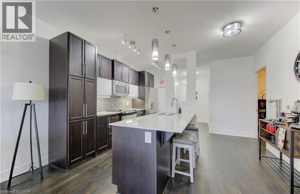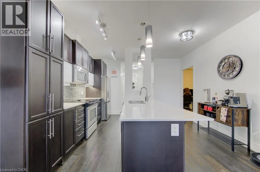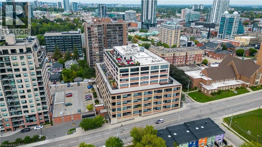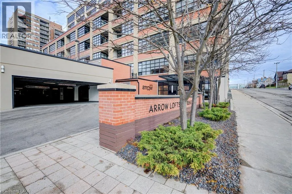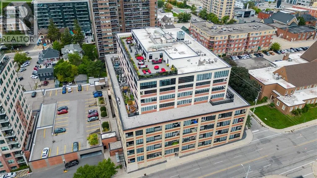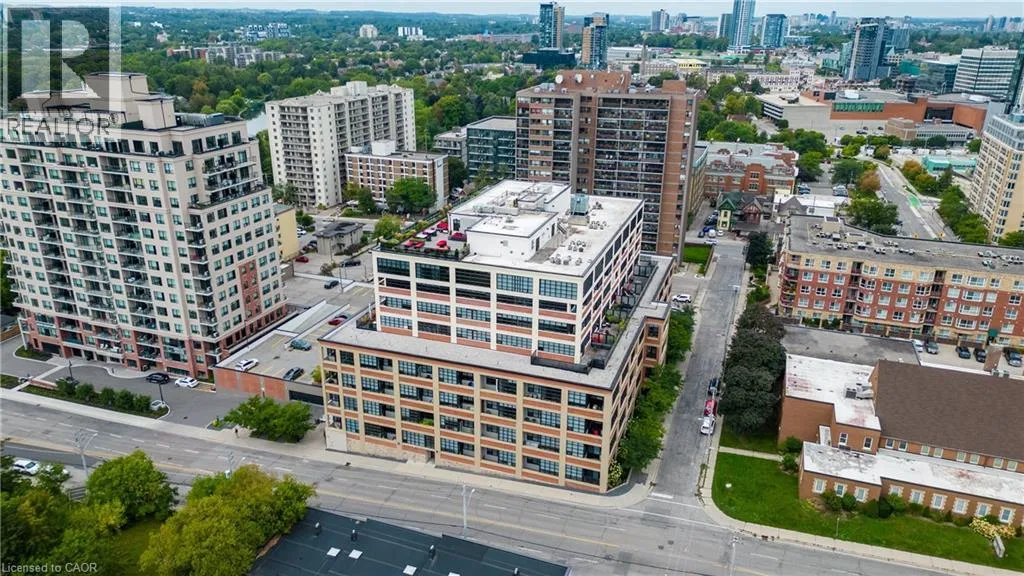 Benton St & Courtland Welcome to Arrow Lofts, Downtown Kitchener's Most Coveted Address. Opportunities like this rarely come up. Units at the iconic Arrow Lofts don't hit the market often, and when they do, they don't last and it's easy to see why. Suite 601 at 112 Benton Street is a stunning 1 bedroom + den, 1.5 bath loft spanning 1,061 square feet of thoughtfully designed space. Freshly painted and move-in ready, this sixth-floor suite radiates that rare blend of industrial character and modern polish that Arrow Lofts is celebrated for. Soaring 9 foot ceilings, oversized factory-style windows, exposed mechanicals, and original architectural details pay homage to the building's storied past as the Arrow Shirt Factory, one of Kitchener's most beloved industrial landmarks, beautifully transformed into one of only six true hard loft buildings in the entire Waterloo Region. The den offers the flexibility you've been looking for; a home office, a guest space, a creative studio â the choice is yours. A brand new fridge (2025) anchors the kitchen along with a stunning island, quartz countertops and European-style cabinetry. The full bath ensuite and convenient powder room round out a layout built for both everyday living and effortless entertaining. Step outside your suite and into a building that truly delivers. Arrow Lofts boasts world-class amenities including a fully equipped fitness centre, sauna, rooftop lounge with a stunning fireplace and bar, rooftop patio with gas BBQ and city views, a theatre/screening room, library, and boardrooms all finished with an art deco flair and rich walnut millwork throughout the common areas. Then there's the location. You're steps from the energy of Downtown Kitchener, the beauty of Victoria Park, the LRT, trendy restaurants, local shops, and the Market. This is the DTK lifestyle at its very best. If you've been waiting for your chance to own at Arrow Lofts this is truly it, reach out to book your showing today. (id:27476)
