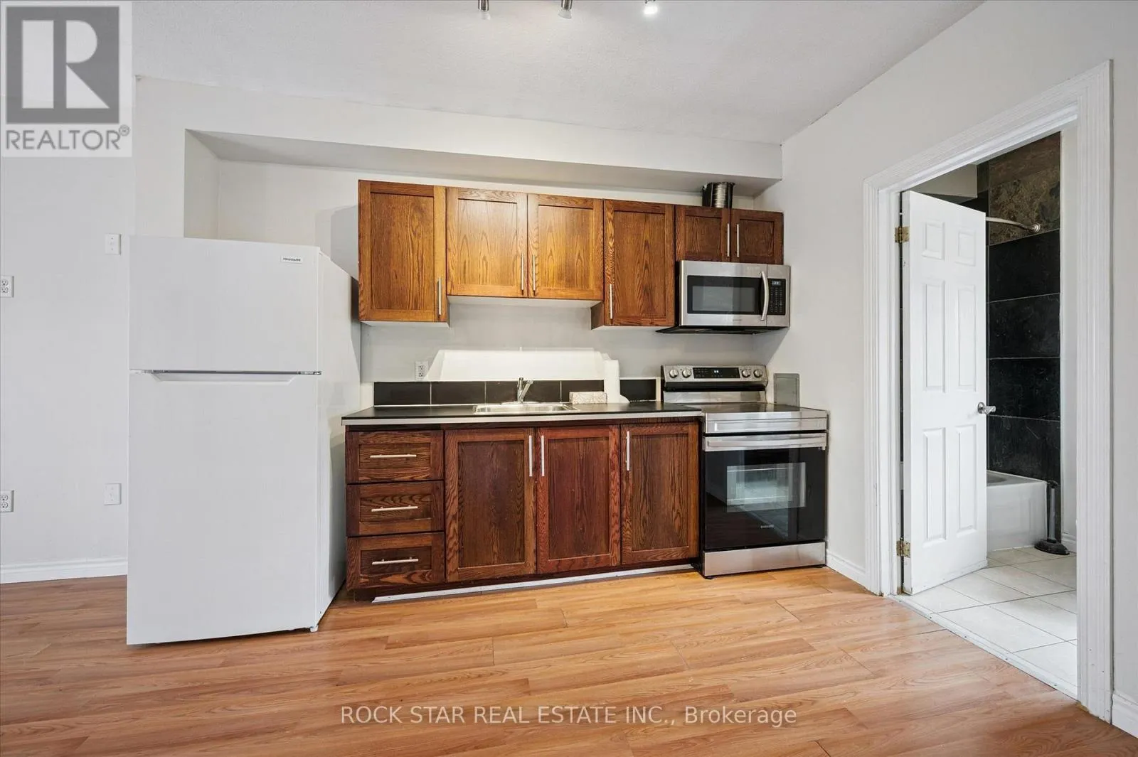 Corner of Madison & Church Newly renovated 2 bedroom, 1 bathroom apartment ideally located close to downtown Kitchener and the vibrant Kitchener Market. This bright corner unit features large windows allowing for plenty of natural light, modern laminate flooring throughout, and a cozy fireplace. The updated kitchen offers espresso hardwood cabinetry and stainless steel appliances including stove and microwave, along with a nearly new refrigerator. One parking space is included. Coin-operated laundry is available in the building. Enjoy convenient access to downtown amenities and major employers including Google, Communitech, the University of Waterloo School of Pharmacy, and the McMaster University Kitchener campus. Walking distance to public transit and a short drive to major highways. Tenant responsible for gas, water, and hydro. Non-smoking property. Tenant insurance required prior to occupancy. Available immediately. (id:27476)