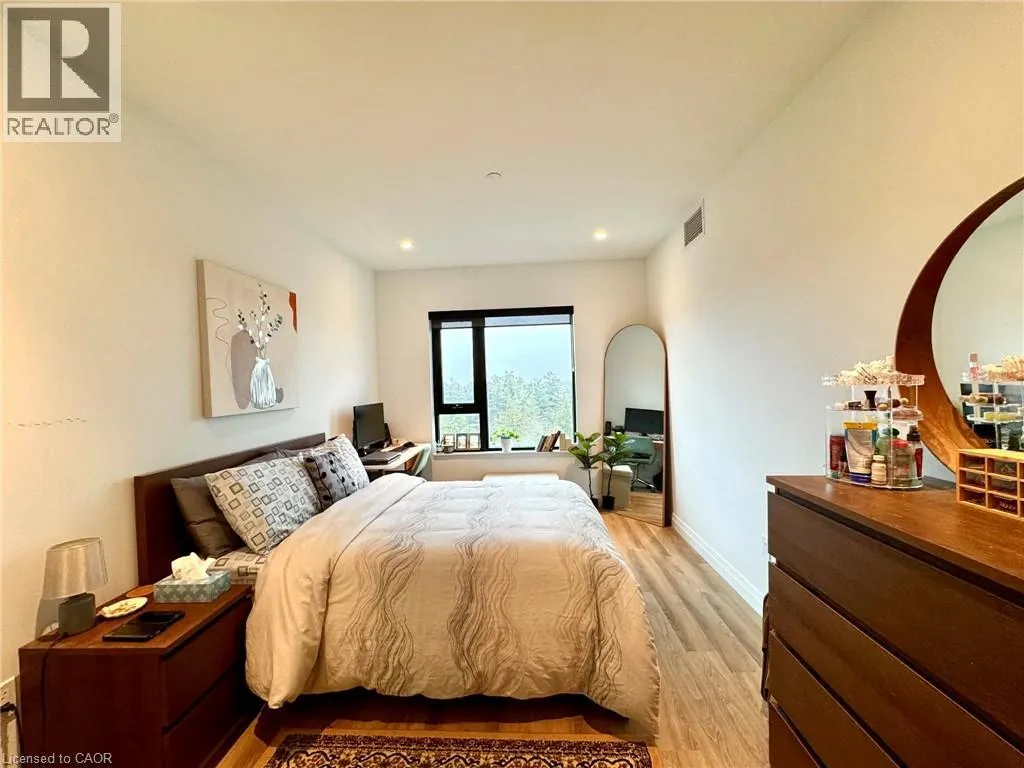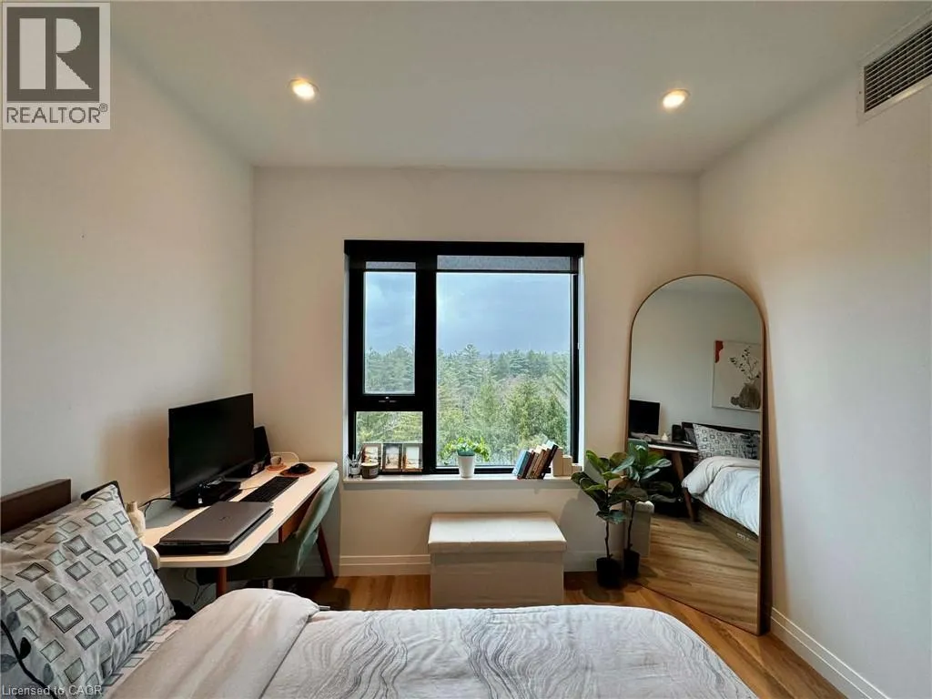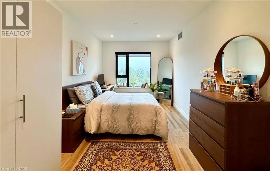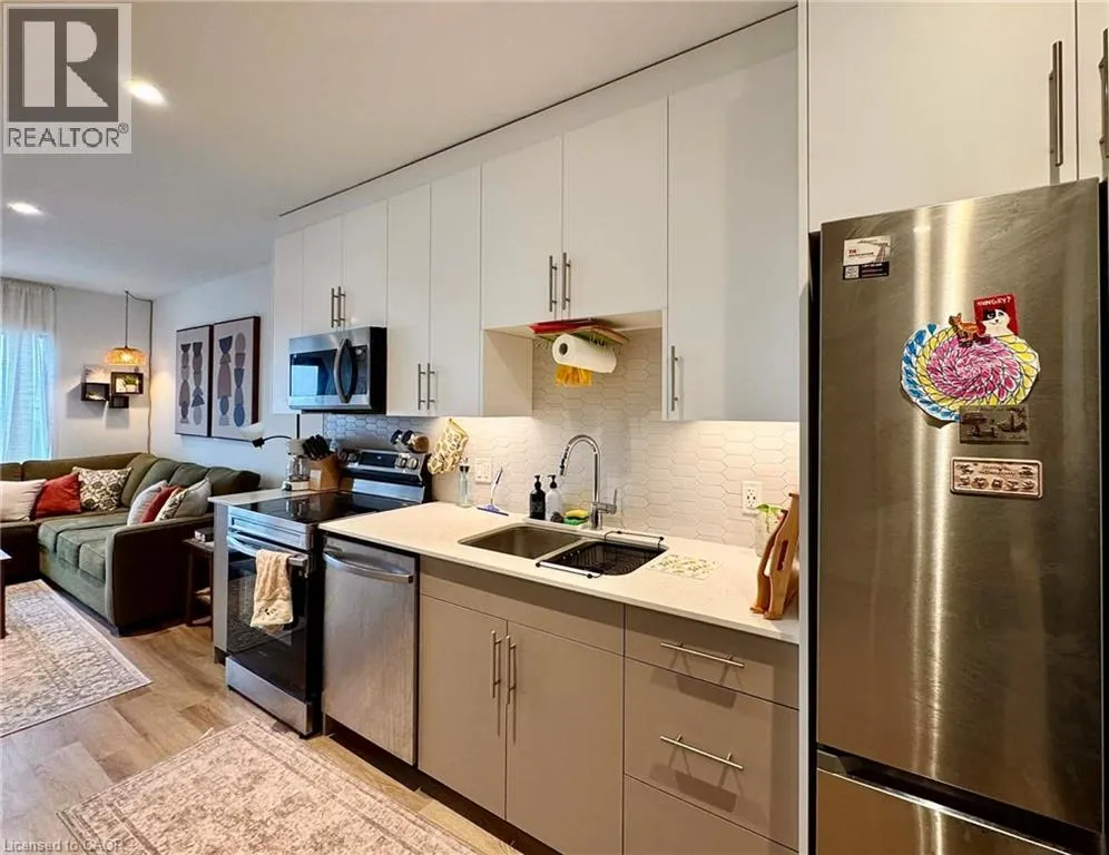 Homer Watson Blvd. to New Dundee Rd. Welcome to 821â525 New Dundee Road, a bright and welcoming one bedroom condo in the sought after Rainbow Lake community. Offering 723 square feet of well designed living space, this unit features a layout that feels both comfortable and functional from the moment you step inside. Light floors and large windows create an airy feel throughout the home, filling the space with natural light. The open concept living, dining, and kitchen area flows nicely together, making it easy to relax at home or host friends and family. The kitchen is well equipped with stainless steel appliances, plenty of cabinet space, and a large island that provides additional prep space along with a great spot for casual meals or morning coffee. From the living area, step out onto the spacious balcony and take in the peaceful forest and pond views, a lovely place to unwind at the end of the day. The bedroom is bright and comfortable with good closet space, and the unit also includes a well appointed bathroom and convenient in-suite laundry. Residents at Rainbow Lake enjoy a wide range of amenities including a fitness centre, yoga studio with sauna, library, social lounge, party room, and pet wash station. The building also offers access to the Rainbow Lake conservation area, where you can enjoy kayaking, canoeing, swimming, fishing, and scenic walking trails. Surrounded by nature while still being close to city amenities, this condo offers a wonderful balance of peaceful living and everyday convenience. (id:27476)