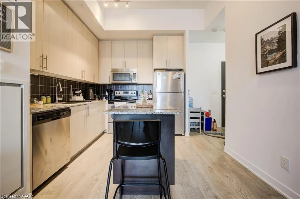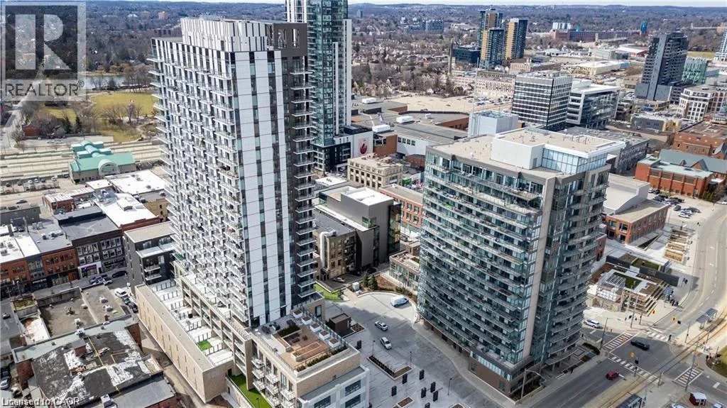 Young and Duke This very conveniently located home downtown Kitchener is priced to sell! WALKOUT FROM HALL. This cute and perfectly situated unit doesn't feel like a highrise. Large balcony offers view of piazza behind city hall with park like setting. Spacious unit offers easy access from the street with no stairs to walk! Extra large balcony feels like you're truly part of the neighborhood! This newer building includes party room, shared rooftop patio with one parking spot underground. Large locker just down the hall from your door:) Full time concierge onsite ensures security and convenience while public transit like ION are steps from your front door. This one might not last long folks so book your private viewing today for a full tour of this beautiful building! Access to gym, personal workspaces in sister building included. (id:27476)