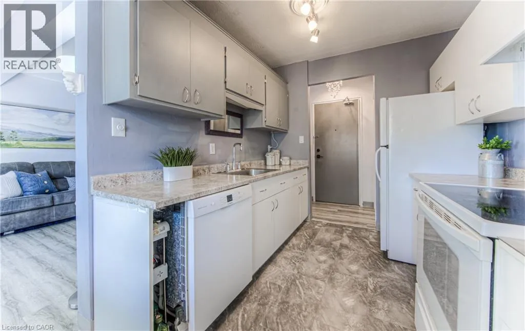 Corner of Fairway Rd. N and River Road E Welcome to easy, affordable living in the heart of Kitchener. Ideal for first-time buyers, downsizers, or investors, this charming condo offers great value with utilities included in the condo fees for worry-free living. The functional layout features a galley-style kitchen with adjoining dining area, a bright living room with a Juliet balcony, and two spacious carpet-free bedrooms with ample closet space. Enjoy secure entry, elevator access, a designated parking spot, and a shared outdoor gazebo for relaxing or connecting with neighbors. Located just minutes from Chicopee Hill with skiing, trails, shopping, restaurants, and everyday amenities nearby, this home offers the perfect balance of comfort, convenience, and affordability. Donât miss this opportunity! (id:27476)