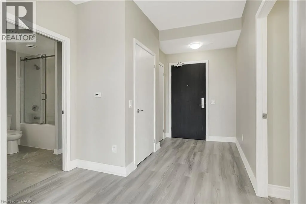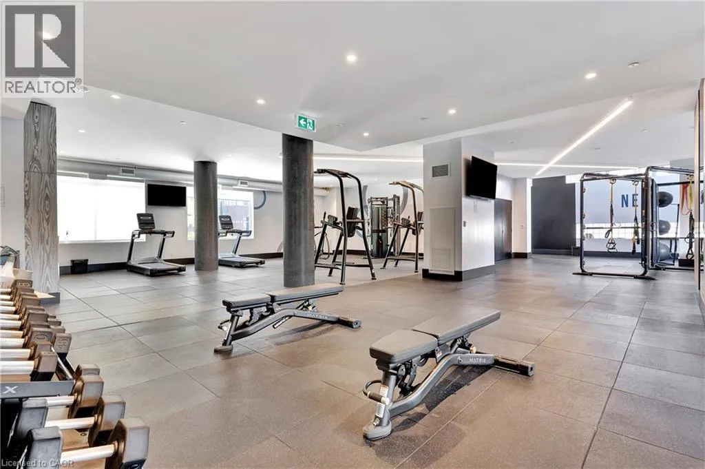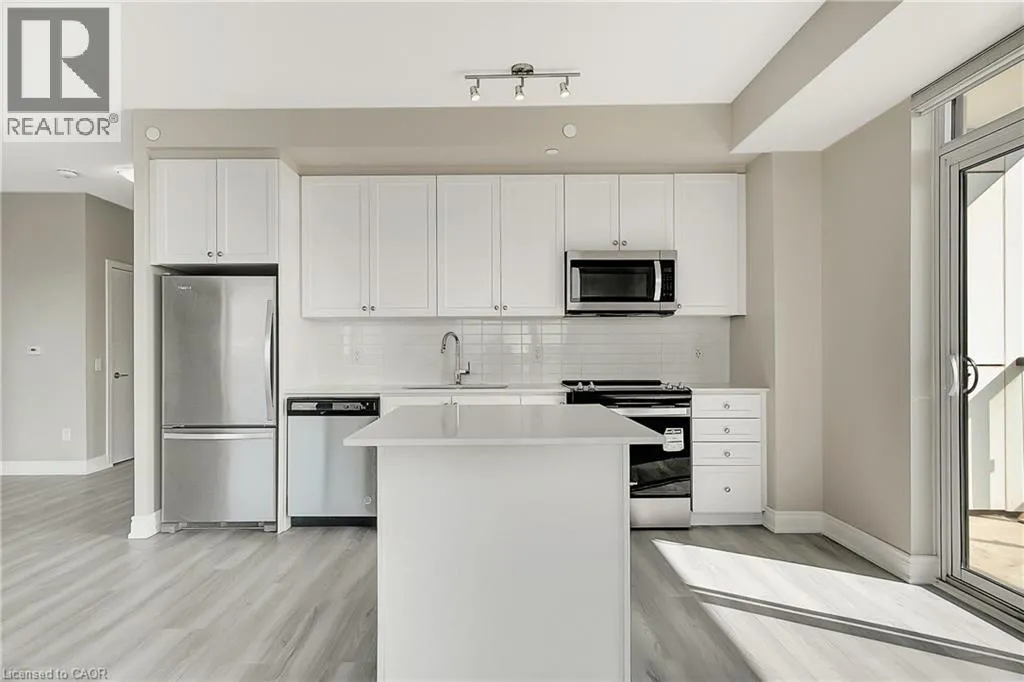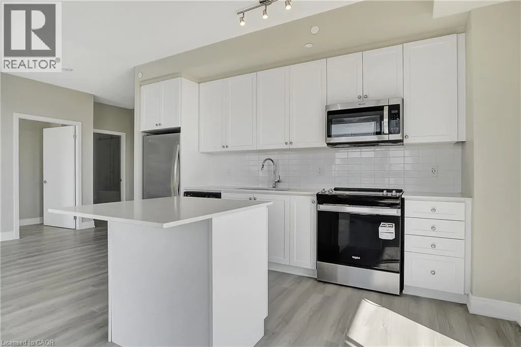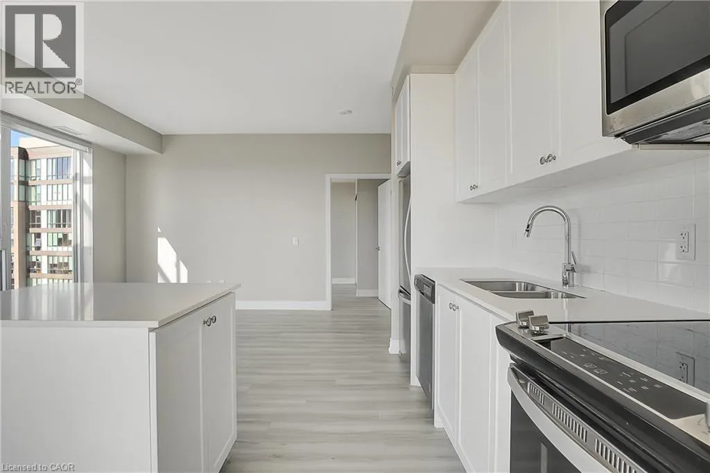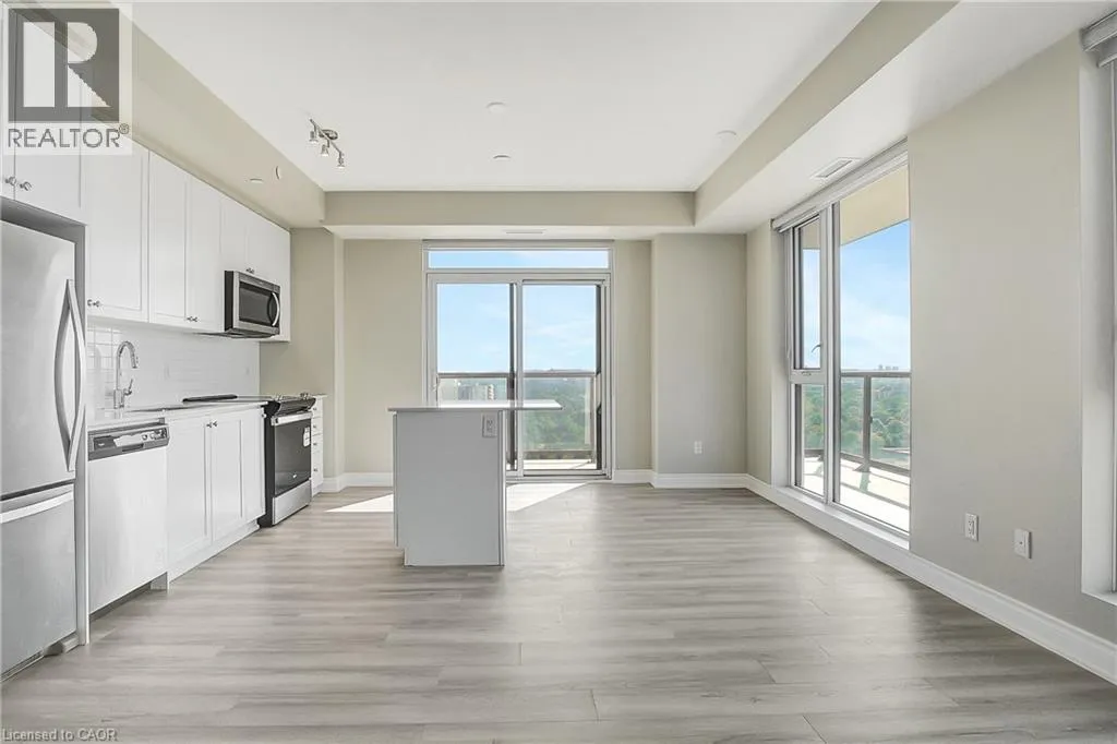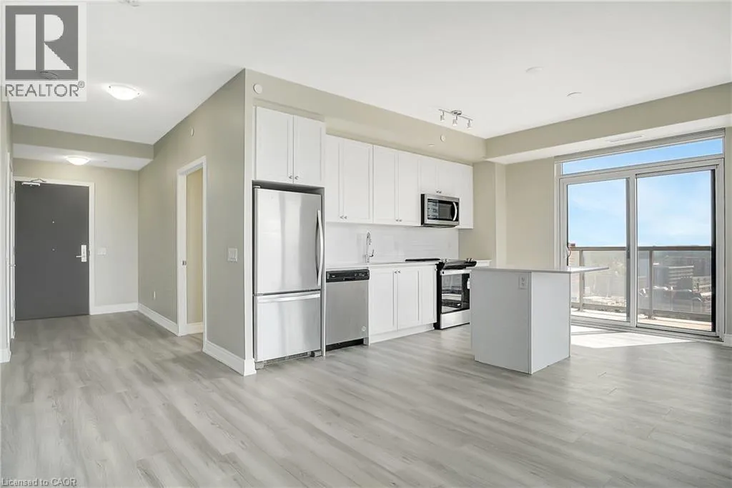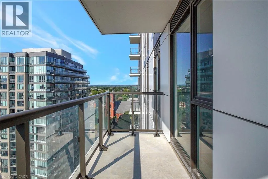 King St. W. to Young St. Experience elevated downtown living in this beautifully designed 2-bedroom, 2-bathroom condo in the heart of Kitchener. Offering 1,163 sq. ft. of bright, thoughtfully planned living space, this spacious unit features large windows that fill the home with natural light and showcase sweeping city views. The modern kitchen is both stylish and functional with quartz countertops, ample cabinetry, and a layout that flows seamlessly into the open living and dining areas, creating a comfortable space for everyday living or entertaining. Step outside to the impressive wrap-around balcony, providing plenty of room to relax and enjoy the skyline from multiple vantage points. Inside, upgraded flooring adds a polished feel throughout the unit, while the primary bedroom offers a well-appointed ensuite with a spacious walk-in shower. Ensuite laundry and a dedicated parking space add to the convenience. Located in one of Kitchenerâs most connected neighbourhoods, this home places you just steps from the LRT, City Hall, Google, and the regionâs thriving tech hub, along with an incredible selection of restaurants, cafés, and shops. Victoria Park is also nearby, offering beautiful green space and year-round events. Residents enjoy a wide range of amenities including a rooftop jogging track, fully equipped exercise room with spin bikes, outdoor yoga space, dog wash station, third-floor sun terrace, and a shared BBQ area. A fantastic opportunity to enjoy modern condo living in the centre of it all. (id:27476)