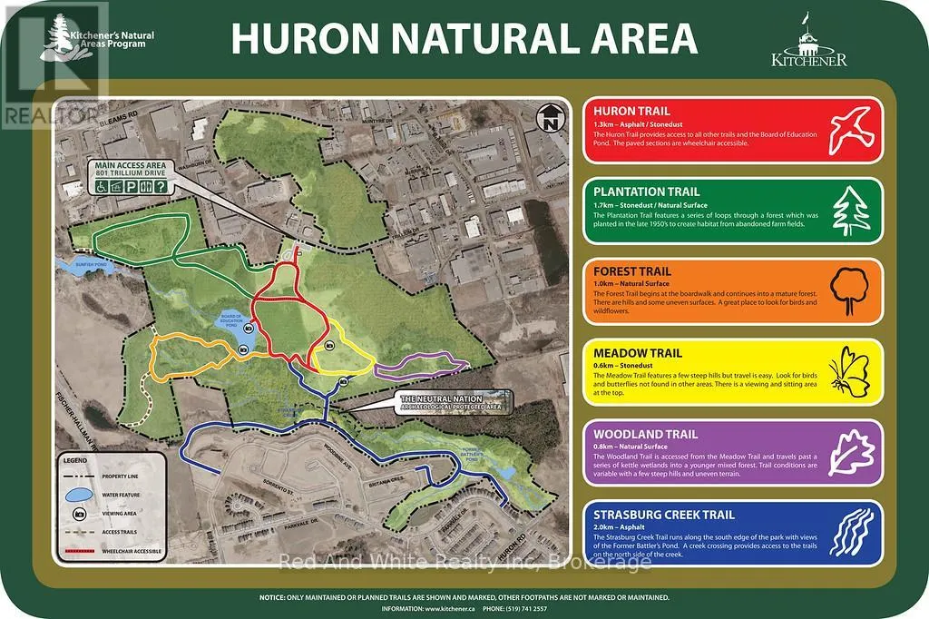 Parkvale Dr This stunning, meticulously maintained family home offers breathtaking backyard views overlooking the serene **Huron Natural Area** in Kitchener's desirable Huron South community. Enjoy seamless indoor-outdoor living with a walkout basement that provides direct access to more than **7 km** of scenic, family-friendly trails winding through lush forests, wetlands, meadows, and natural beauty-perfect for daily walks, hiking, or simply immersing yourself in nature right from your backyard. Huron South is a welcoming, family-focused neighbourhood with excellent walkability to newly built public and Catholic schools, convenient shopping options, and the impressive **RBJ Schlegel Park** (home to the upcoming state-of-the-art Cowan Recreation Centre, a $144 million+ facility featuring sports fields, pools, gyms, and community amenities set to enhance active living even further). Ideal for families seeking both tranquility and modern conveniences in one exceptional location. ++ Main features are: + Large second level primary bedroom with 4 pc ensuite bathroom and walk in closet + Generously sized two additional bedrooms + Flexible open play/work space on upper floor - easily converted to the 4th bedroom + Additional 4 piece bathroom with tub ideal for families with children + Modern kitchen with granite countertops and stainless steel appliances + Oversized deck off dining area, enjoy views of Huron Natural Area while hosting in/outdoors + Almost 1900 sq ft of living space + Around 800 sq ft of open layout, unfinished basement with rough-in for 4 pc bathroom + Double garage with electric car charger rough-in + Wide 40 ft lot + Walking distance to elementary and secondary schools, both public and catholic + Walkable to RBJ Schlegel Park, new $144 million recreation centre (pool, pickleball, splash pad) and shopping/restaurant plaza Freshly painted and ready to move in! (id:27476)