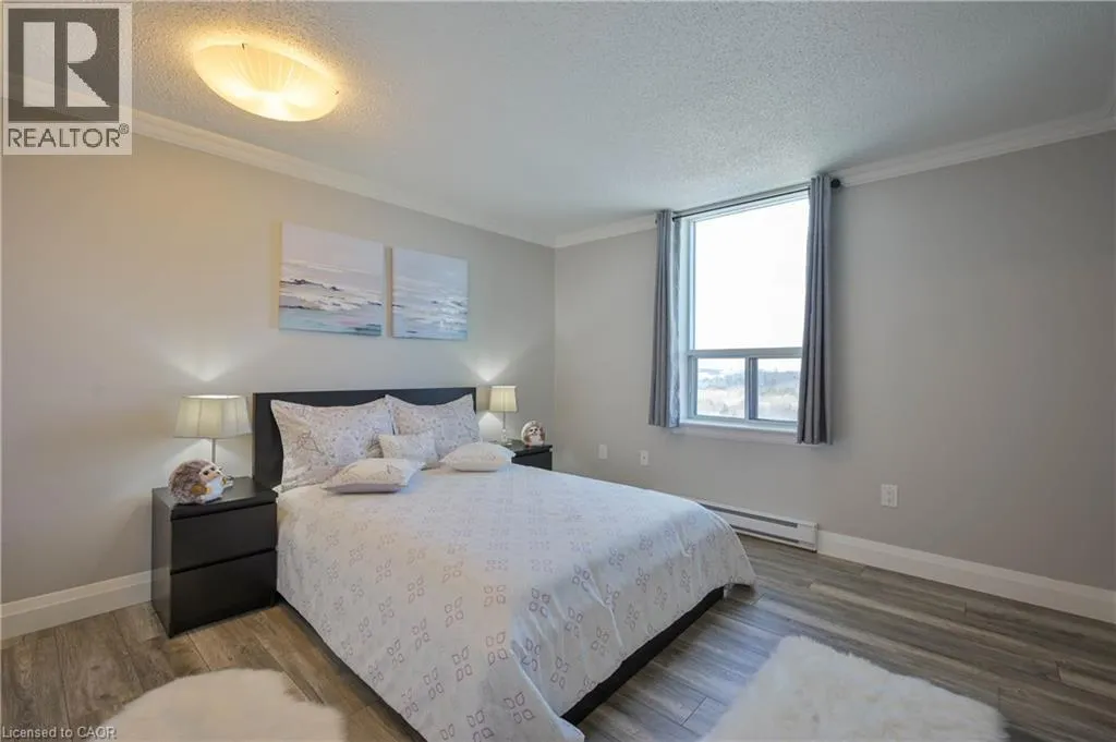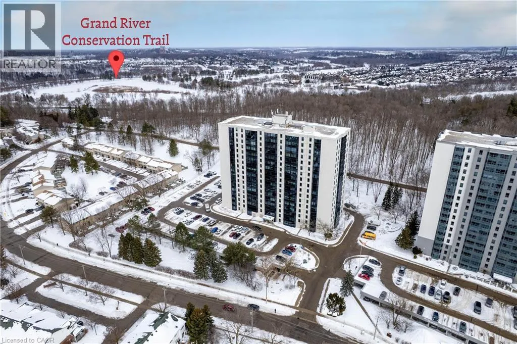 Welcome to GREEN VALLEY PLACE! This bright, cozy and Spacious 2 Bedroom & 2 Bathroom unit boasting over 1,000 Sq Ft and a very practical layout has had many upgrades done within the last few years(Windows 2025, Siding 2025, Floor 2019, Hot water heater 2024, Appliances 2019). It is in move-in ready condition, allowing you to settle in immediately and enjoy the panoramic views of the beautiful greenbelt behind the building. This unit has been very well maintained giving you peace of mind for years to come. The kitchen/dining area boasts plenty of kitchen cabinets with granite countertops, newer appliances, while in the dinette area you can easily fit a large dinner table for family dinners. The bedrooms are generously sized while the master bedroom is equipped with an ensuite for your convenience. The main 4-piece washroom has been updated as well as the laundry area. The in-unit laundry is super convenient and equipped with a newer Washer & Dryer. A modern Wall-Air Conditioning unit is also included. Extra building amenities include: Exercise room, party/games room and sauna. Excellent location close to all amenities, schools, parks, walking trails, transit, banks, grocery stores, Conestoga College and fast access to Highway 401. Perfect for a first time home buyer, someone downsizing or an investor. Book your private showing today! (id:27476)