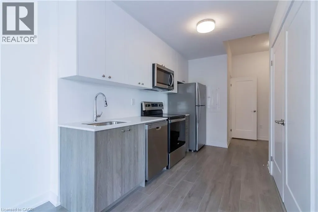 Welcome to this brand new 2-Bed, 2.5 Bath condominium townhome in Kitchener's beautiful Parkside community, where convenience and community intertwine to create a haven for everyday living. Nestled next to this family-centric neighbourhood are the expanses of McLennan Park and Elmsdale Park, offering a tranquil escape or variety of outdoor activities. Within this upper unit, discover a meticulously crafted two-storey space spanning over 1000 square feet. Enjoy the expanse of two generously proportioned bedrooms with two full bathrooms, a powder room on the main level, as well as an ample living room, dining room, kitchen with bathroom on the main level. Decor package upgrades such as quartz countertops and Whirlpool/Bloomberg appliance package, soft close cabinets, deep fridge upper cabinet with gable, and laminate flooring throughout. Venturing beyond the neighbourhood is effortless, with a two minute drive to HWY 7/8, granting seamless access for commuters. Should you prefer the convenience of public transit, an onsite stop is just outside your doorstep, ensuring smooth journeys to any destination. Just a 5 minute walk away sits Laurentian Power Centre, boasting an array of amenities to cater to your every need. From a large Zehrs grocery store to home improvement essentials at Lowes, and healthcare services at the walk-in clinic, every convenience is within easy reach. (id:27476)