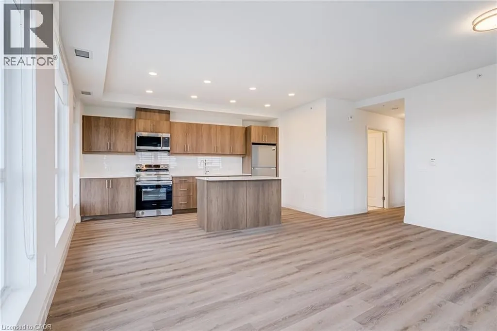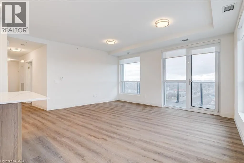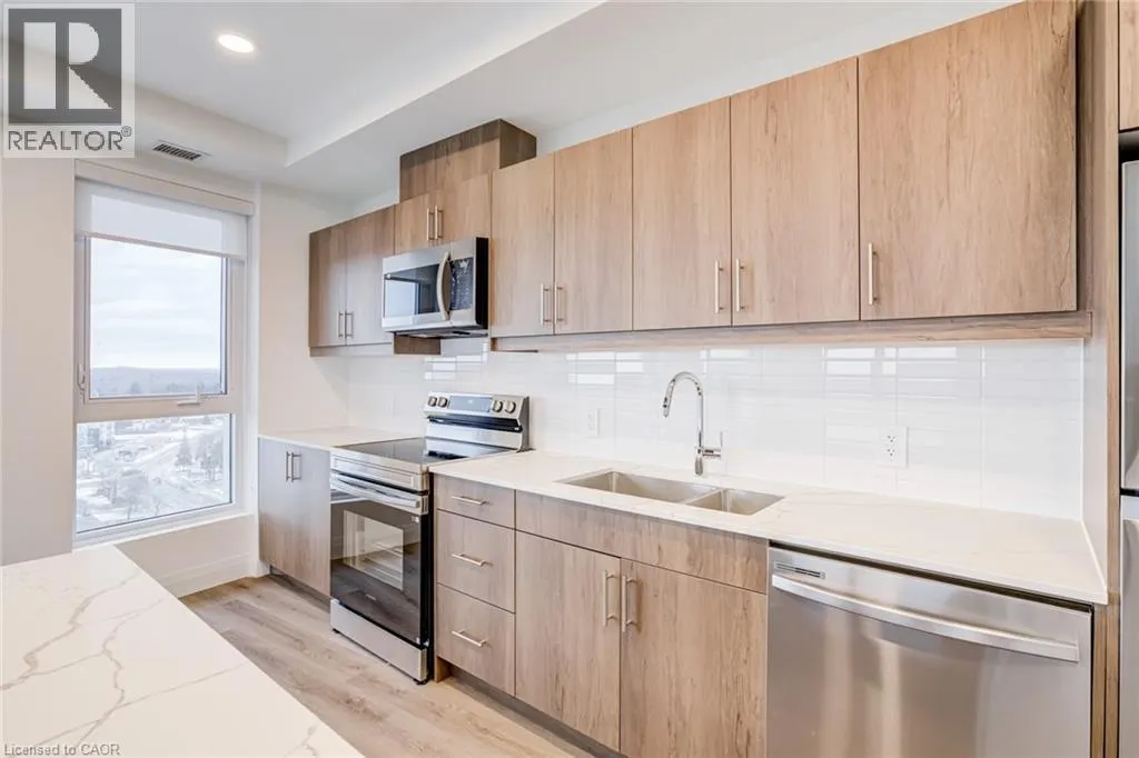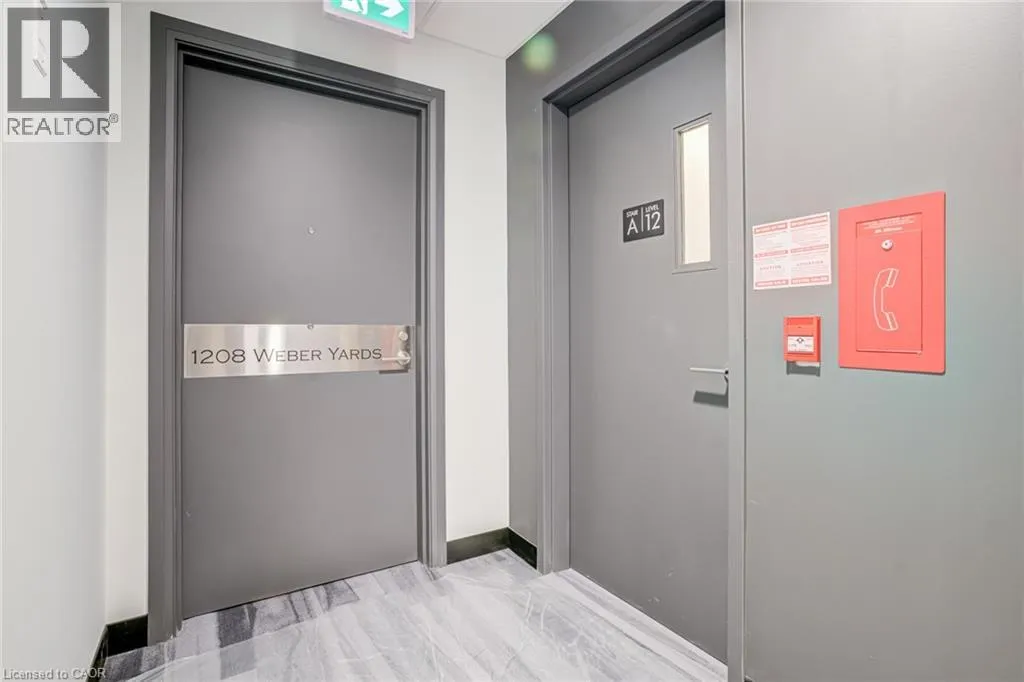 DISCOVER WEBER YARDS â Kitchenerâs newest 15-storey condominium, centrally located in Waterloo Region with quick access to Highways 7/8 and 401. Underground parking and storage locker included. Brand-new 1- and 2-bedroom suites available with flexible spring move-in. Minutes to Fairview Park Mall, public transit, and everyday essentials including Zehrs, Dollarama, Shoppers Drug Mart, Tim Hortons, Bulk Barn, FreshCo, and more. Amenities include 24/7 concierge, lobby lounge, fitness studio, co-working space, dog wash station, party room with kitchen, dining area, and lounge, plus underground parking, storage lockers, and bike storage. Suite 1208: Corner 1-bedroom + den with 931 sq. ft. Bright suite with large windows and plenty of natural light. Modern kitchen with warm-tone cabinetry, quartz countertops, ceramic tile backsplash, island with breakfast bar, and new full-size stainless steel appliances. Spacious private balcony. Den works well as an office or small bedroom. Complete with in-suite laundry and custom window coverings/roller shades. Excellent credit and full application required. Tenant responsible for utilities. Book your showing today to explore all available options. (id:27476)